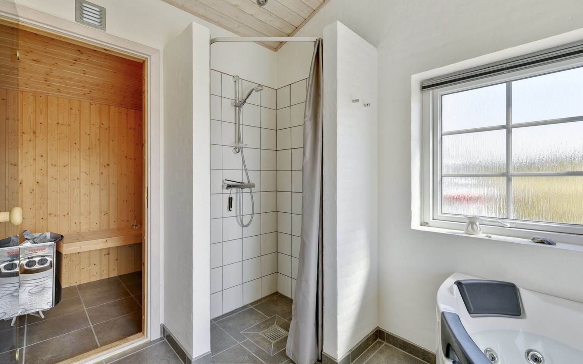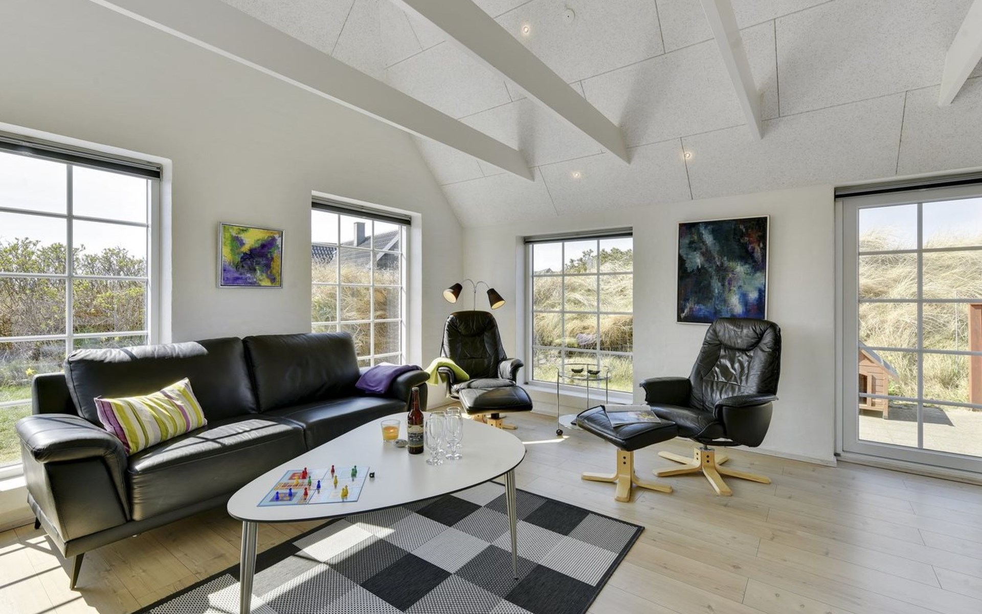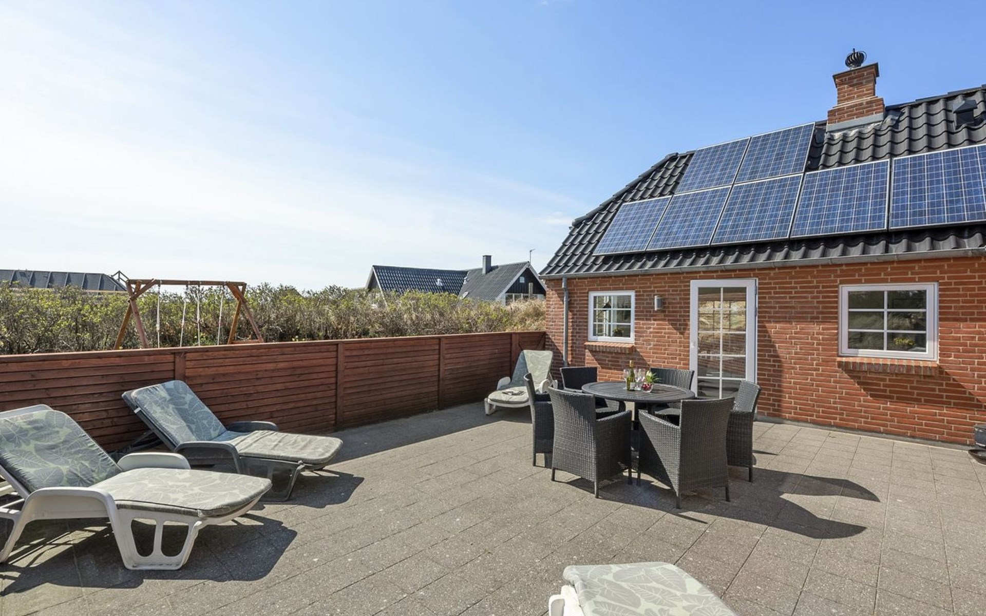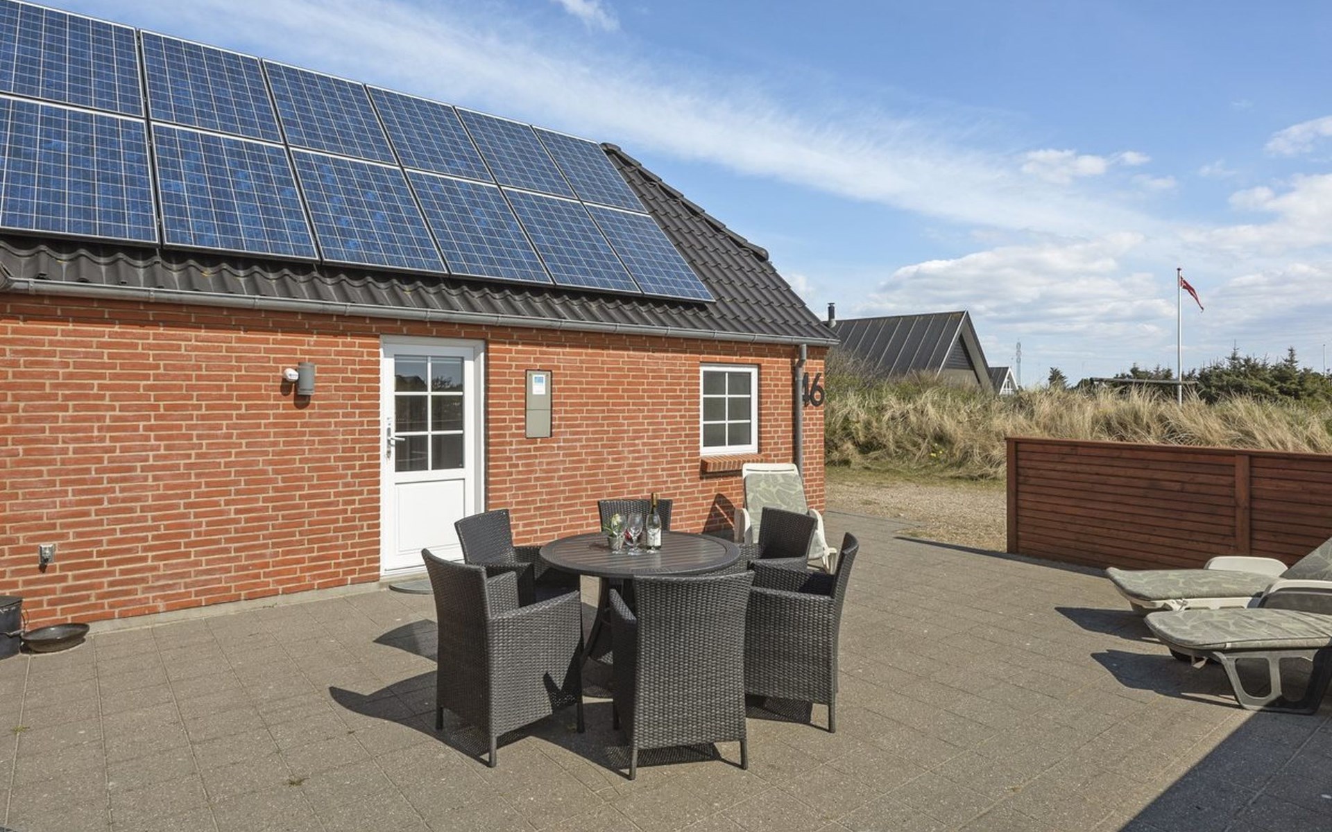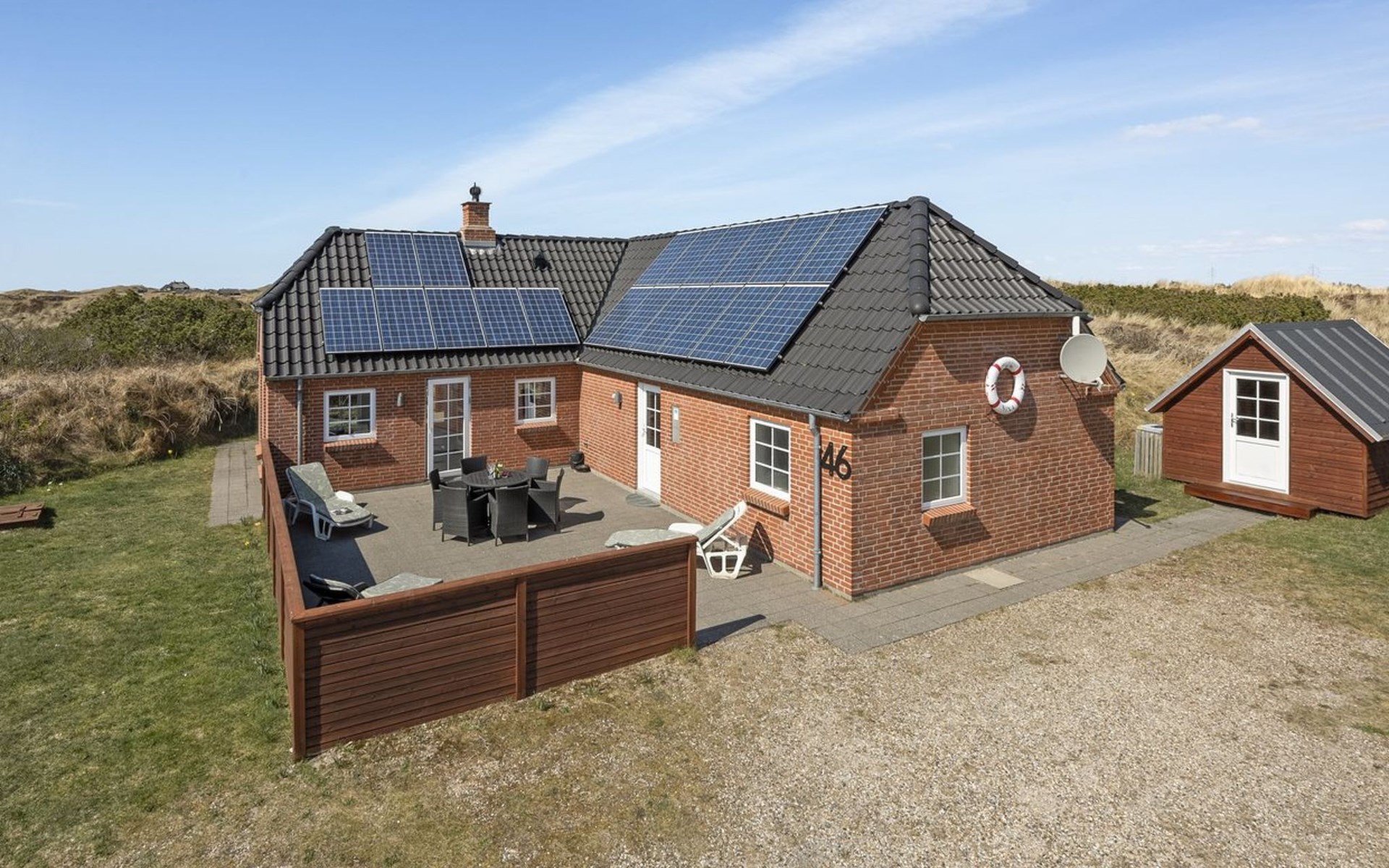 Eengezinswoning, bouwjaar 2012. 800 m van zee. Voor medegebruik: tuin. Voor alleengebruik: wild terrein 1.991 m2, tuin (omheind). Terras (40 m2), kinderspeelplaats (schommel). In het huis: sauna, wasmachine, droger. Parkeerplaats bij het huis. Oplaadstation. Levensmiddelenwinkel 6 km. Golfterrein 7 km. De eigenaar accepteert geen jeugdgroepen.