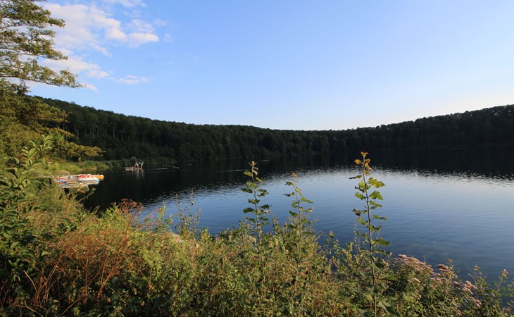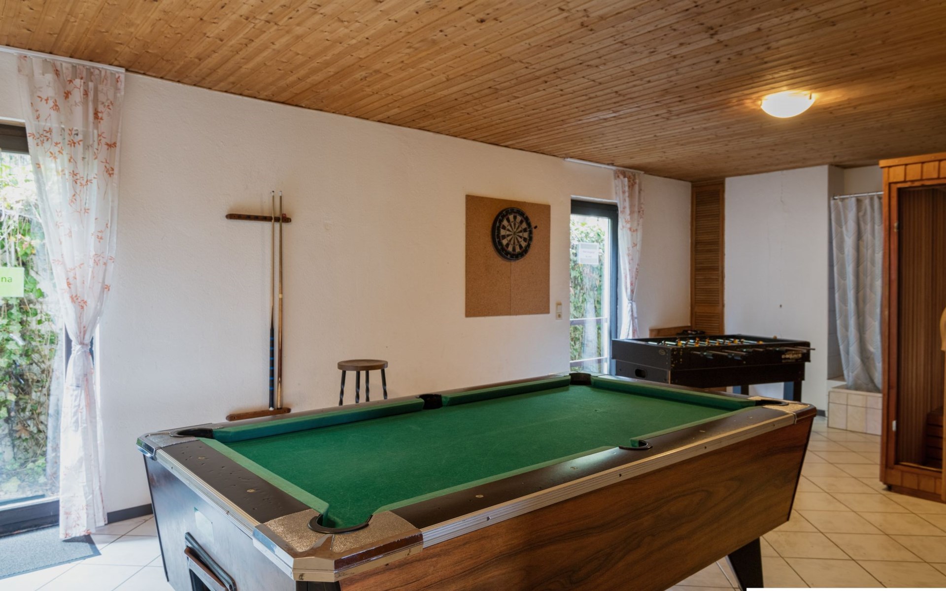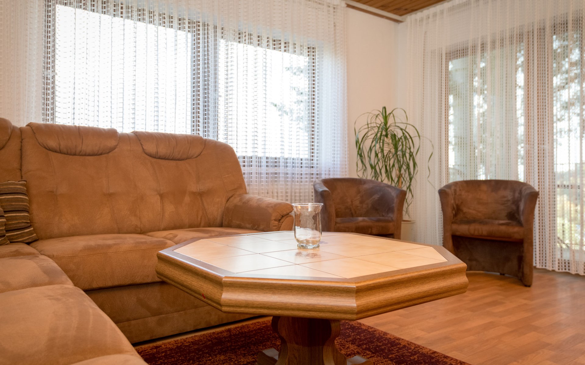 Huis met 3 woningen "Eifelnatur (Haus 1)", omgeven door bomen en velden. Aan de rand van de plaats, 300 m van het centrum, rustige, verhoogde ligging tegen een helling, 10 m van de bosrand, 8 km van het meer, aan een doodlopende weg, te midden van groen. Voor medegebruik: terrein 1.000 m2, verzorgde tuin 450 m2 met gazon 300 m2, bloemen, vijver. Tafeltennis, kinderspeelplaats (glijbaan, schommel, zandbak). In het huis: sauna (extra). Biljart, tafelvoetbal, bergruimte voor fietsen, centrale verwarming, wasmachine (voor medegebruik, extra). Wissel van linnengoed 1 maal per week. Wissel van handdoeken 1 maal per week. Broodjesservice en drankjesservice op verzoek op aanvraag (extra). Trappenweg (25 treden) naar het huis. Levensmiddelenwinkel 5.3 km, supermarkt 5.3 km, winkelcentrum 5 km, restaurant 150 m, bar 3.3 km, bakkerij 5.3 km, café 3.3 km, fietsverhuur 10 km, bushalte "Daun" 10 km, station "Gerolstein" 23 km, openluchtzwembad 7.6 km, overdekt zwembad 10 km, meer (zwemmen) 7.6 km. Golfterrein (18 holes) 15 km, tennis 3.5 km, midgetgolf 7.8 km, manege 10 km, wandelroutes 50 m vanaf het huis. Attracties in de buurt: Vulkanmaare, Vulkanmuseum, Kreuzweg, Strohner Märchen, Wildpark Daun, Adler- und Wolfspark Kasselburg. Bekende meren kunnen gemakkelijk worden bereikt: Pulvermaar 1.5 km. Auto noodzakelijk. De eigenaar accepteert geen jeugdgroepen. Laden en lossen van de baggage is mogelijk bij het huis. De omgeving is gevoelig voor geluidsoverlast. Gelieve geen lawaai te maken en de rust te bewaren.