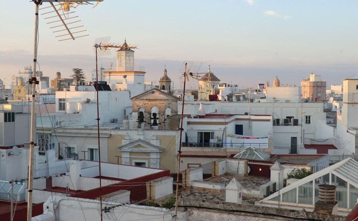 This holiday flat, renovated in 2016, is located at the heart of Cadiz, in a great location, in between the central market and the elegant Calle Ancha. It is located on the fourth floor of an 18th century merchant's house.The bedroom has a small balcony. The large, communally used roof terrace offers panoramic views over the city. Parking is available at a nearby public parking area. During longer stays, park and ride is recommended.The 55 m² apartment accommodates two people. The access is via a central courtyard. The apartment was beautifully renovated and furnished with a combination of modern furniture, while retaining original elements, such as the floor tile and the wooden ceiling beams. It is a comfortable property, where you can spend a relaxing holiday. This apartment offers a living/dining room, a large bedroom with a balcony, a kitchen and a bathroom. The living room is furnished with a sofa, armchairs and a television and is adjacent to the dining area. Behind the dining area is the kitchen, furnished with a stove, a refrigerator, a dishwasher, a kettle and a coffee maker. The bedroom is furnished with a 160 x 200 cm double bed and built in closets. The modern bathroom boasts a shower and a toilet, a sink, a mirror and a hairdryer. Heating and Wi-Fi are also available.This flat is in an ideal location to explore restaurants, museums, beached and cities. It is a ten minute walk to Caleta beach and a five minute drive to Playa Victoria. The library and a theatre are located on the same road as the apartment. It is just a one minute walk to the indoor fruit, fish and meat market. In town, everything is accessible on foot. It is about a ten minute walk to the main station and the bus station.As many buildings in the town centre, this listed house does not have an elevator. ESFCTU0000110170000247030000000000000000VUT/CA/00