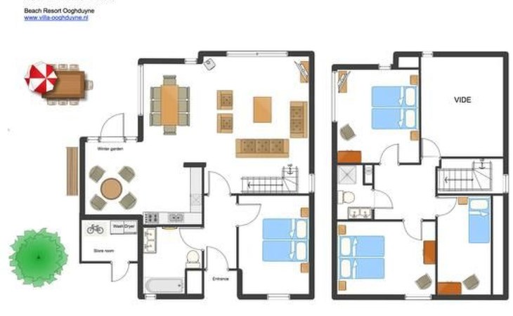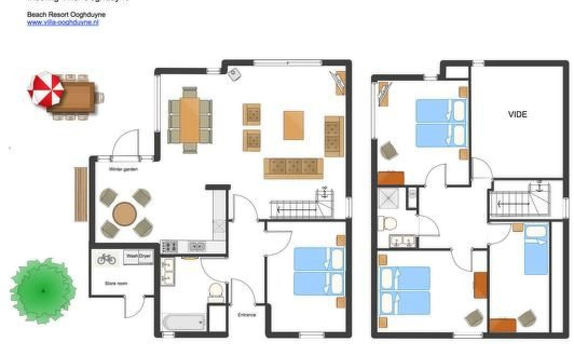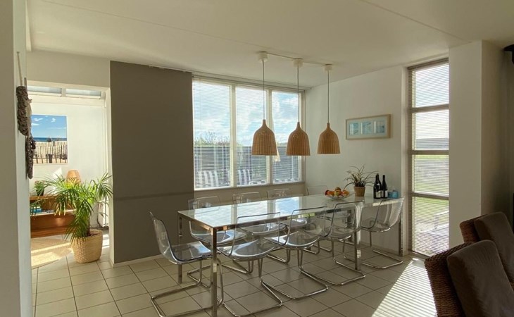 Kenmerken villa:> 4 slaapkamers en 2 badkamers, voor 7-9 personen> Smaakvol ingerichte woonkamer met open haard en weids uitzicht op de duinen> Grote, zonnige tuin (z/w, 700m2) en terras met buitenwhirlpool, tuinmeubelen en veranda> 3 parkeerplaatsen direct bij het huis> Goed uitgeruste luxe keuken met vaatwasser, magnetron, oven, inductiekookplaat, grote koelkast en koffiezetapparaat> Grote HD TV met Duitse TV zenders, CD/DVD speler en Apple TV> Gratis draadloos internet> Kwaliteitsbedden (Auping) met donzen dekbedden, voor een goede nachtrust> Berging voor 2 fietsen en strandspullen> Rookvrij huisIndeling:> Entree, hal, een grote 2 persoons slaapkamer, badkamer met wastafel, toilet en ligbad met douche. wasmachine en droger> Grote woonkamer met vide, bank, eettafel, cd/dvd/tv, open haard en schuifpui naar terras met tuinmeubelen> Gemeubileerde open keuken met serre en openslaande deuren naar het terras> Eerste verdieping: 3 slaapkamers; 1 met tweepersoonsbed, 1 met tweepersoonsbed en stapelbed, 1 kleine slaapkamer met eenpersoonsbed. Badkamer met wastafel en grote douche