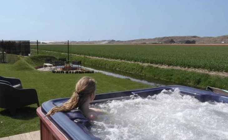 Slechts 10 minuten lopen van het zandstrand. Villa Duinpanorama heeft de meest gunstige ligging in het park, aan een doodlopende weg, zeer privé, met vrij uitzicht op de duinen en dichtbij het park en het strand. Privé whirlpool in de tuin Omheinde tuin met open haard en gemeubileerd terras.Jacuzzi voor 4-5 personenVanuit de tuin heeft hij vrij uitzicht op de duinen!