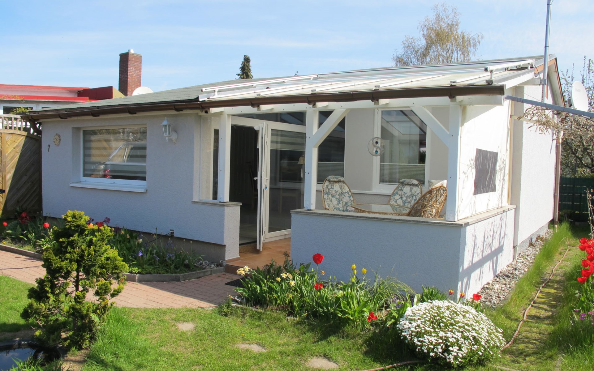 Mooi bungalow "Philipp", gerenoveerd in 2022. In de wijk Loissin-Bungalowsiedlung, 2.5 km van het centrum van Loissin, 6 km van het centrum van Lubmin, rustige ligging, 200 m van zee, aan een doodlopende weg. Voor alleengebruik: terrein 350 m2 (omheind), kleine tuin met gazon en planten, vijver, parkeerplaats (voor 2 auto's). Supermarkt 2.5 km, bushalte "Loissin" 2 km, zandstrand 200 m.