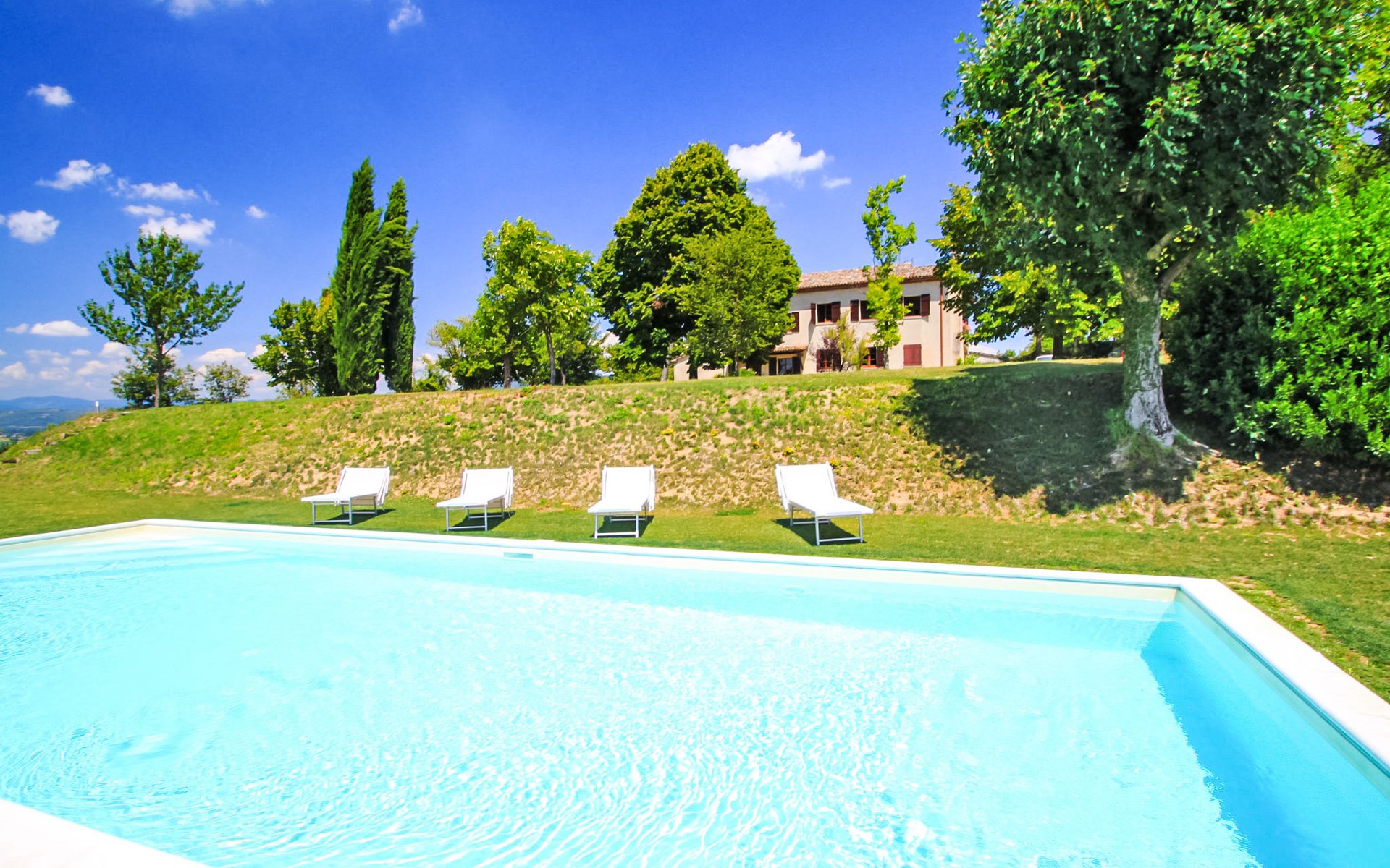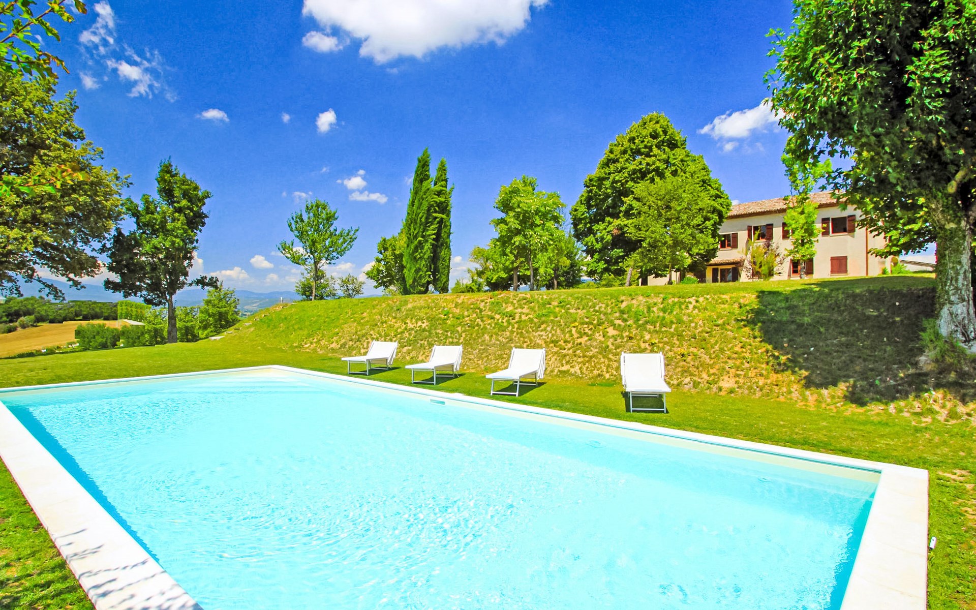 Montebello 14 km van Città di Castello: Gelegen in de glooiende Umbrische heuvels, een ideale plek voor een ontspannen verblijf maar tevens een uitstekende uitvalsbasis voor uitstapjes in de beide regio's (Umbrië en Toscane). Gezellige, comfortabele eengezinswoning "Montebello", omgeven door bomen, velden en wijngaarden. In het gehucht Citerna, 10 km van het centrum van Anghiari, 25 km van het centrum van Arezzo, 40 km van het centrum van Cortona, rustige, zonnige ligging, 60 km van het meer, te midden van groen. Voor alleengebruik: verzorgde tuin met gazon, ligweide, binnenplaats, openluchtzwembad (12 x 6 m, 130 cm diepte, seizoensgebonden beschikbaarheid: 15.Mei. - 25.Sep.). Patio. In het huis: internetaansluiting, wasmachine. Parkeerplaats op het terrein. Winkel 1 km, supermarkt 4 km, restaurant 1 km, café 1 km, bushalte 210 m, treinstation "San Giustino" 12 km. De eigenaar accepteert geen jeugdgroepen.