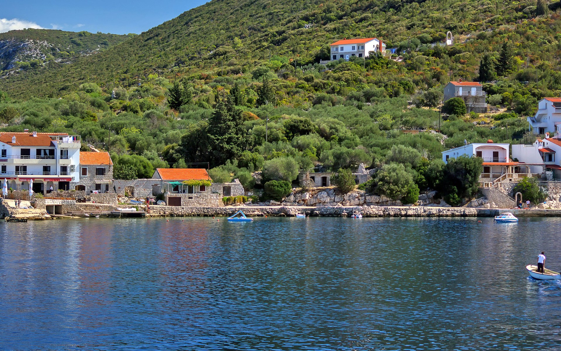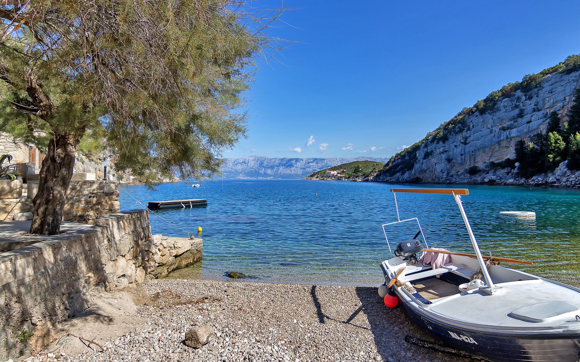 Appartementencomplex "Cico". 6 km van het centrum van Gdinj, rustige, zonnige ligging, 10 m van zee, 10 m van het strand. Voor medegebruik: terrein 200 m2 (omheind). Terras (20 m2), tuinmeubelen, barbecue. In het huis: internetaansluiting, fietsverhuur. Parkeerplaats bij het huis op het terrein. Winkel 6 km, restaurant 40 m, bushalte 50.7 km, rotsstrand, betonnen strand 10 m. Privé aanlegsteiger voor een boot, op aanvraag. Motorbootverhuur mogelijk (op aanvraag, extra).
