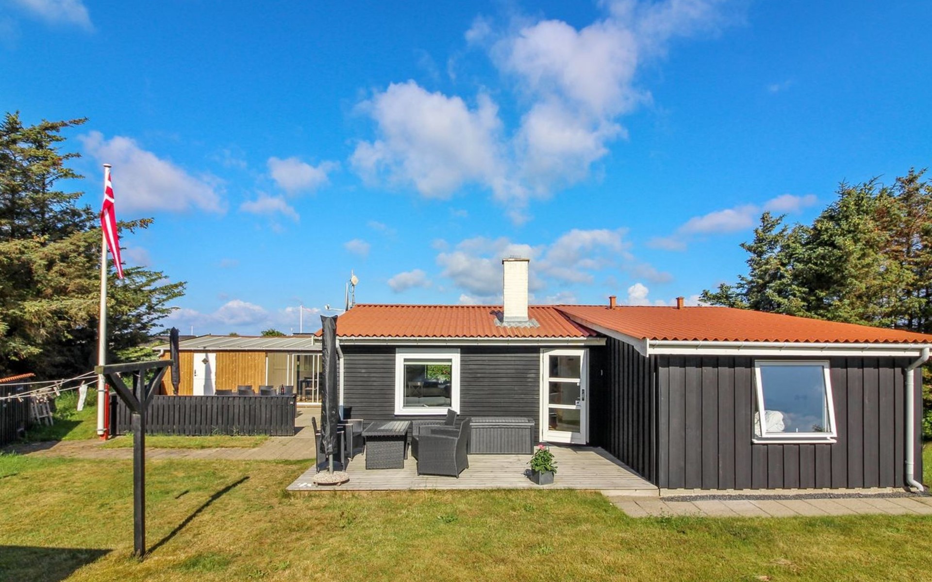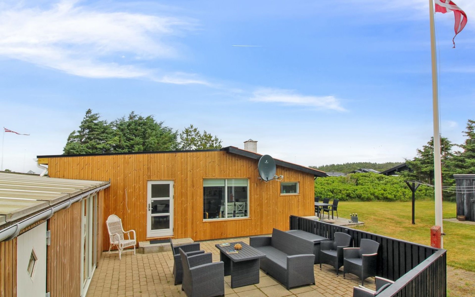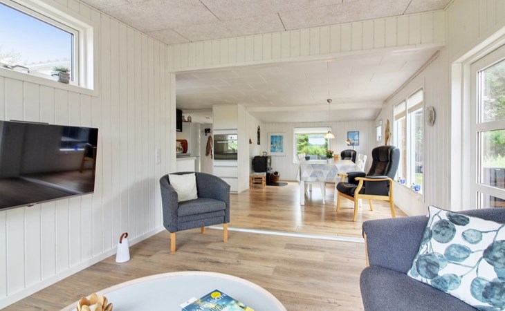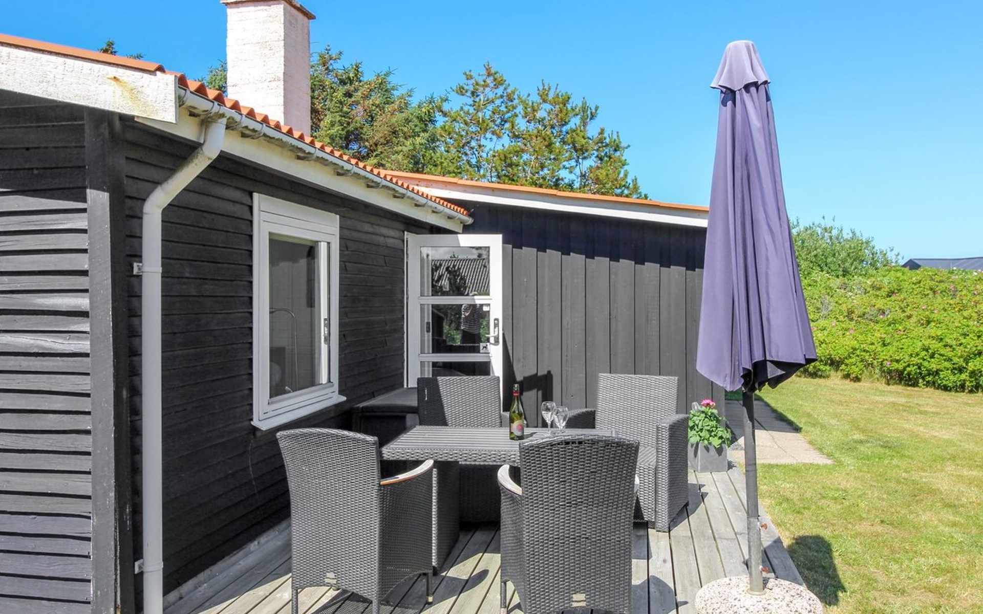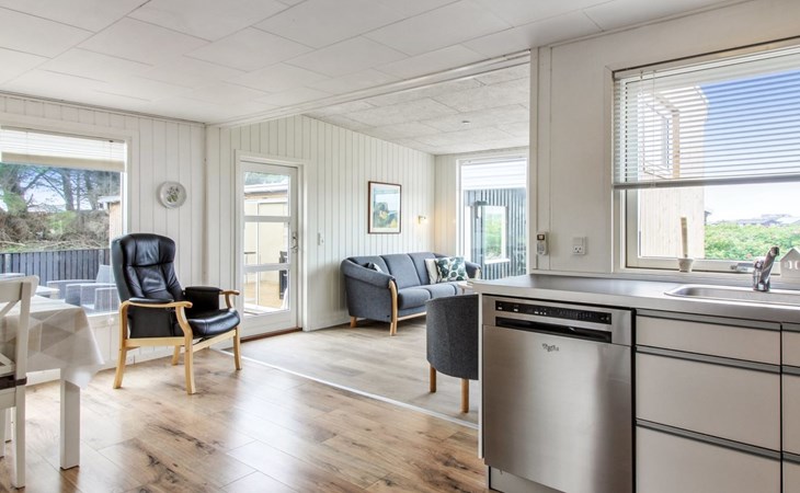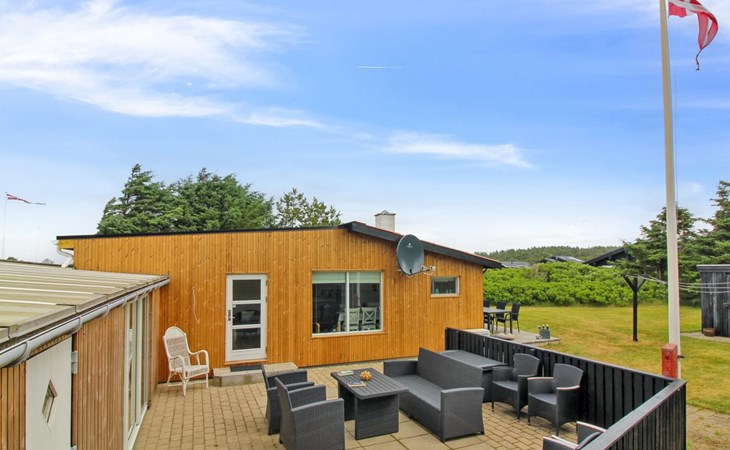 Eengezinswoning, bouwjaar 1970. 600 m van zee. Voor alleengebruik: wild terrein 1.475 m2. Terras (15 m2), kinderspeelplaats (glijbaan, schommel). In het huis: wasmachine. Parkeerplaats bij het huis. Oplaadstation. Levensmiddelenwinkel 1.3 km. De eigenaar accepteert geen jeugdgroepen.