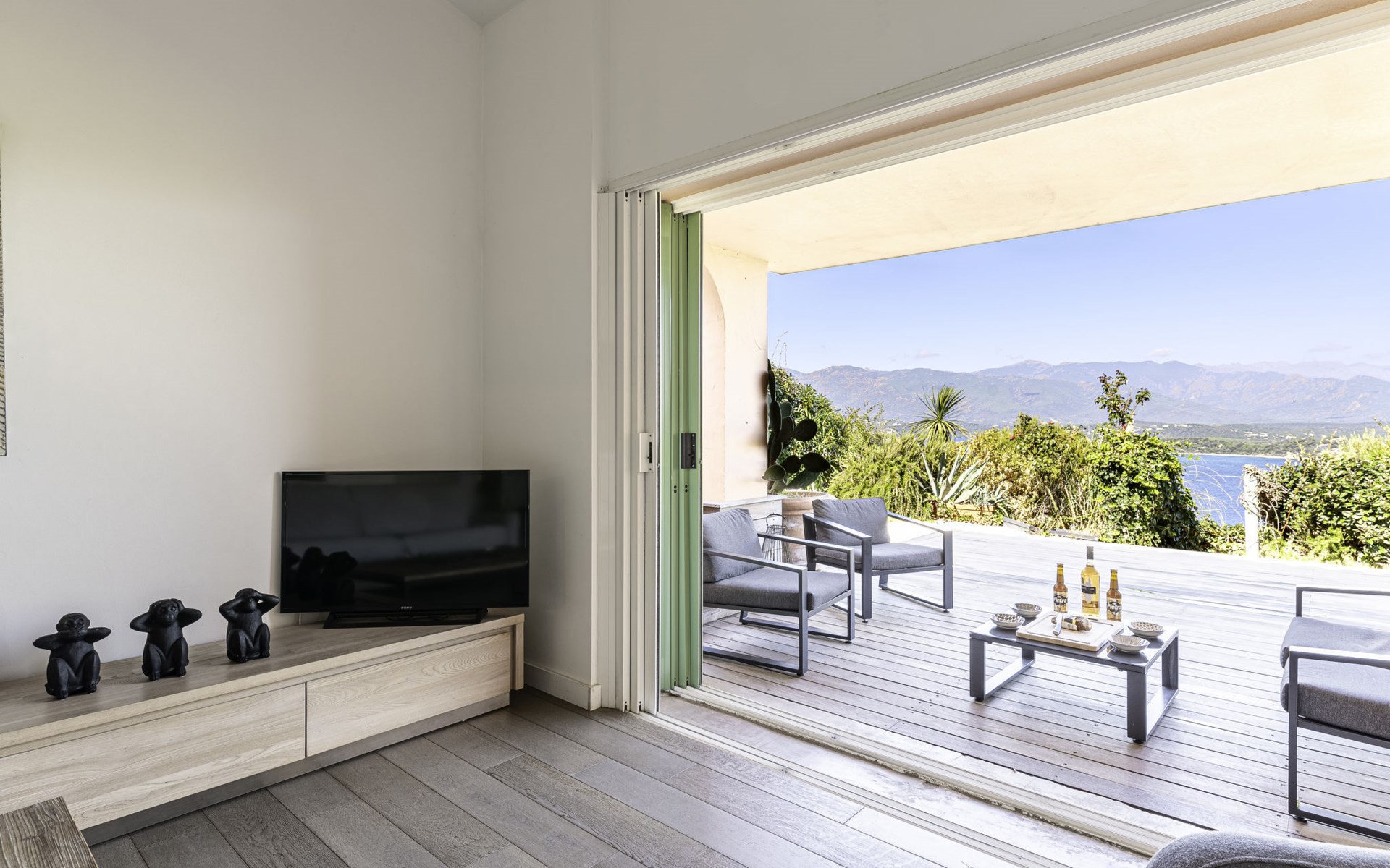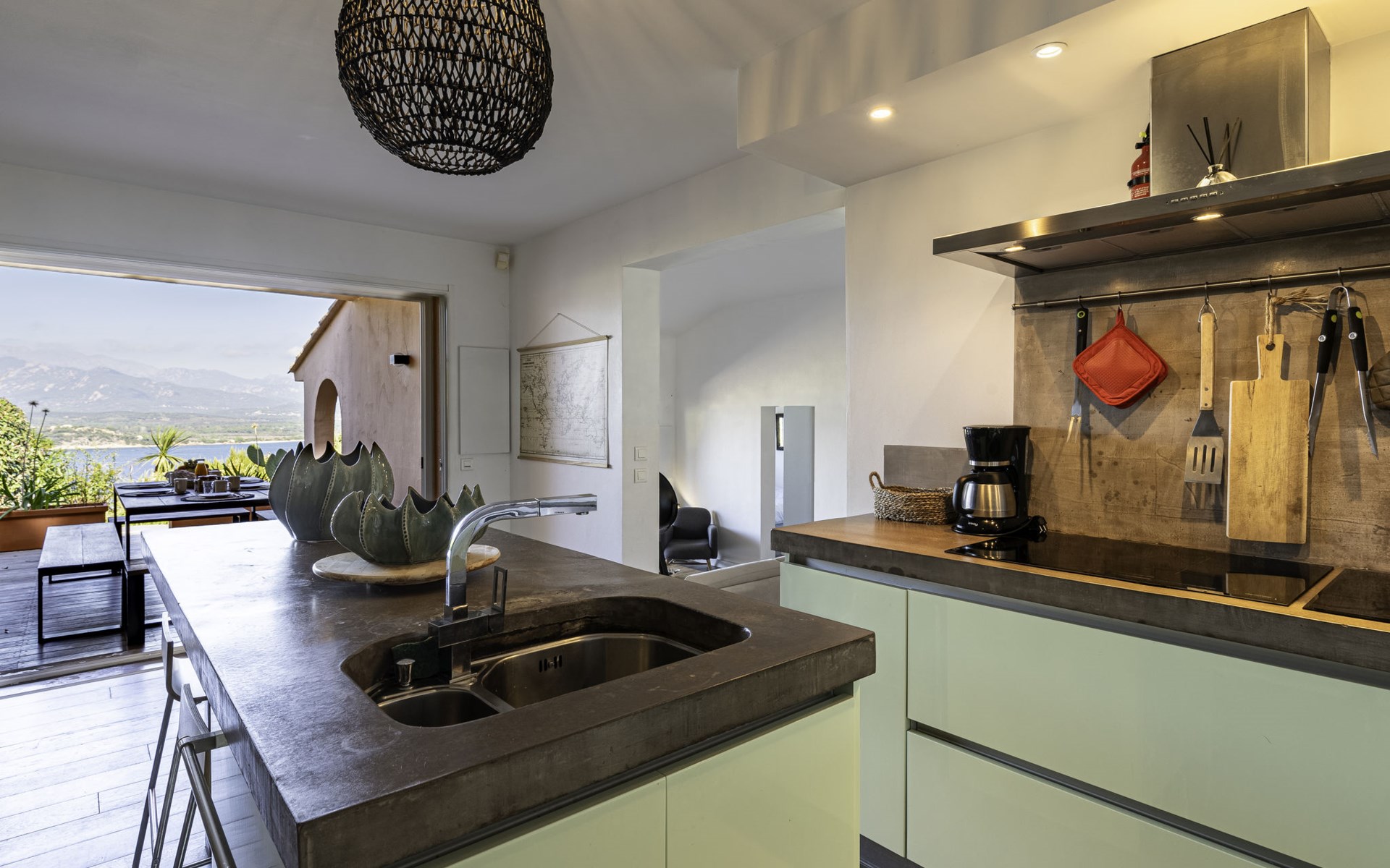 Residentie "les hauts de Pavellone". Buiten de plaats, 8 km van het centrum van Porto-Vecchio, op een heuvel, gebied met weinig verkeer, 200 m van zee, 750 m van het strand. Voor medegebruik: openluchtzwembad omheind (12 x 6 m, seizoensgebonden beschikbaarheid: 15.Mei. - 15.Sep.). Onderhoud zwembad door de eigenaar/tuinman. Steile toegangsweg tot 100 m voor aan het huis. Parkeerplaats (voor 2 auto's). Winkelcentrum 12 km, restaurant 500 m, bushalte 8 km, zandstrand "plage de Pavellone" 750 m. Jachthaven 9 km. Attracties in de buurt: Centre ville de Porto-Vecchio 10 km, Plage de Palombaggia 8 km, Plage de Santa Giulia 11 km, Bonifacio 30 km. Bekende meren kunnen gemakkelijk worden bereikt: Lac de l'Ospédale 30 km. Wandelgebied Aiguilles de Bavella 55 km. Auto noodzakelijk.