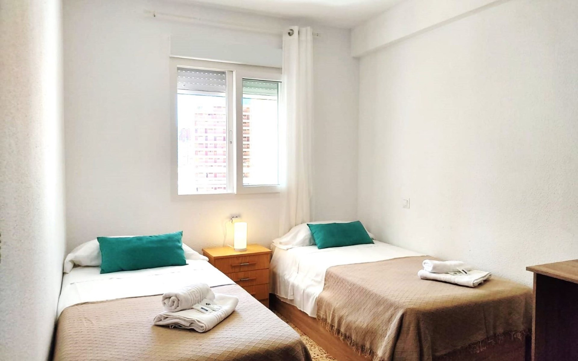 Playa Levante: Flatgebouw "Amsterdam", van 14 verdiepingen. In het district Rincon de loix, drukke, zonnige ligging tegen een helling, 800 m van zee, van het strand. Voor medegebruik: terrein (omheind), openluchtzwembad (12 x 6 m, 120 - 180 cm diepte, seizoensgebonden beschikbaarheid: 15.Jun. - 30.Sep. openingstijden zwembad: 10:00-21:00). In het complex: lift. Openbare parkeerplaatsen. Supermarkt 50 m, restaurant 100 m, bushalte "Benidorm" 200 m, station "Benidorm" 4 km. Golfterrein (18 holes) 6 km. Attracties in de buurt: Aqualandia 2 km, Mundomar 2 km, Benidorm Palace 2 km, Terra Mitica 6 km, Terra Natura 6 km, Alicante 40 km. Baby uitrusting op aanvraag. De eigenaar accepteert geen jeugdgroepen. De omgeving is gevoelig voor geluidsoverlast. Gelieve geen lawaai te maken en de rust te bewaren.