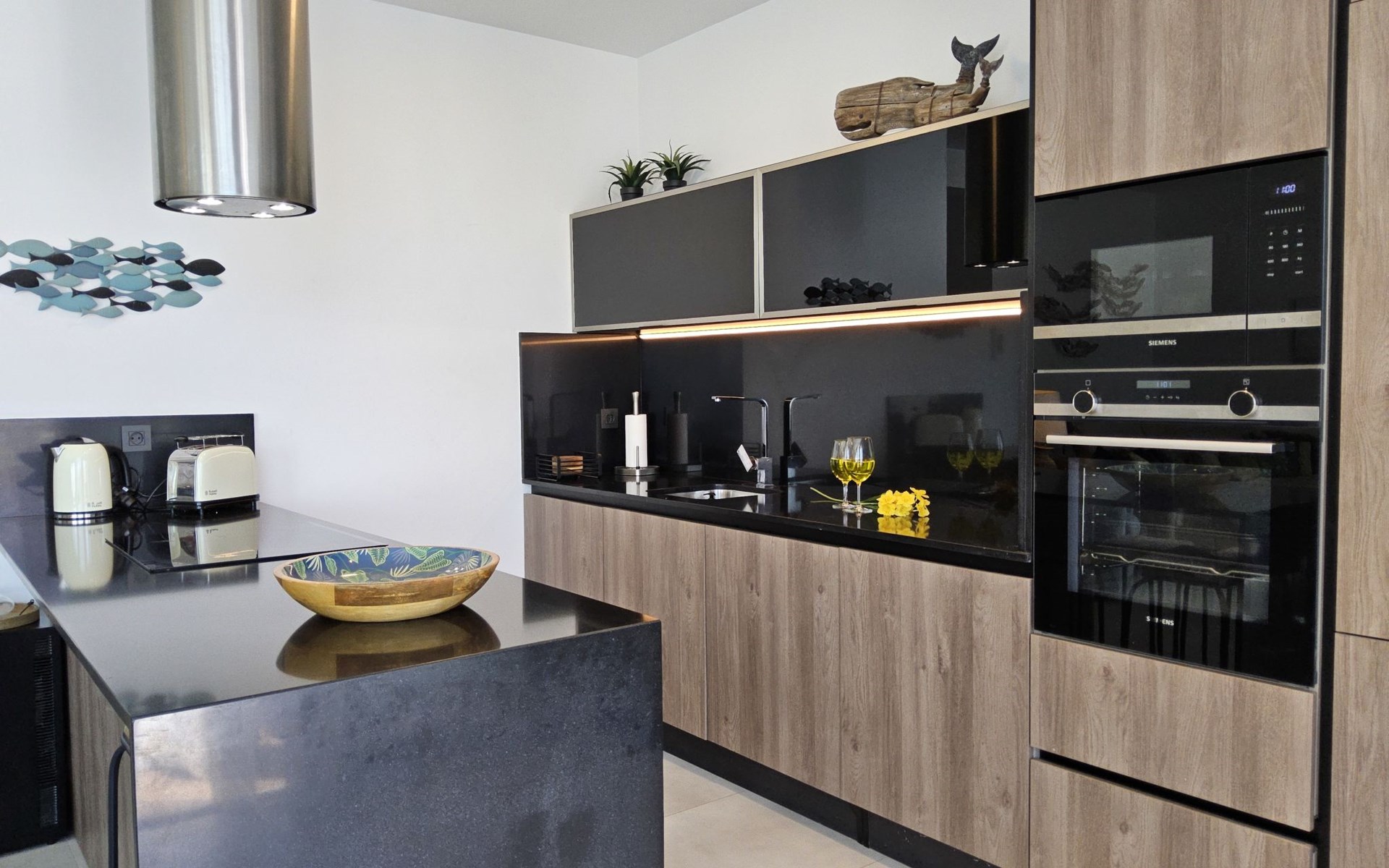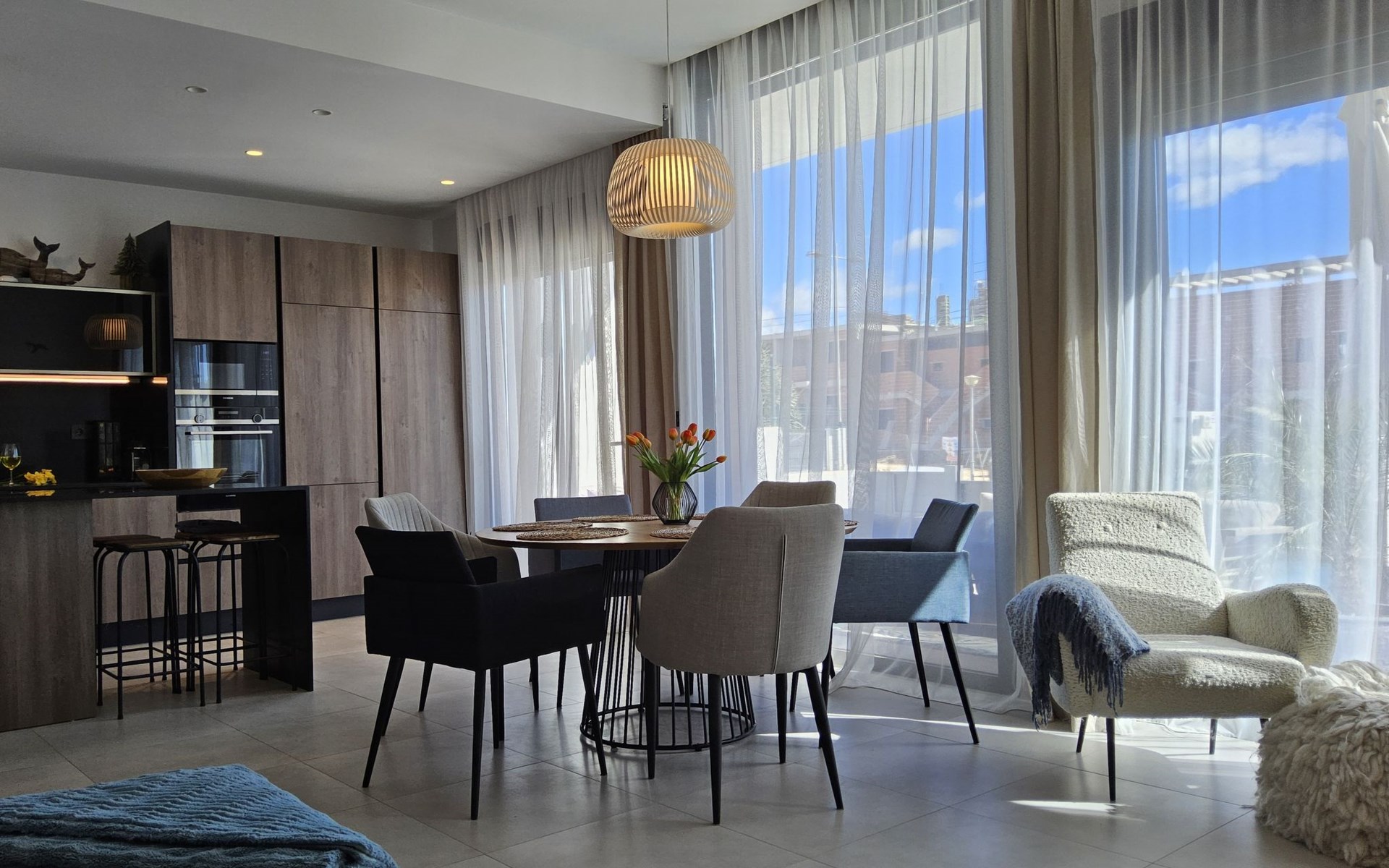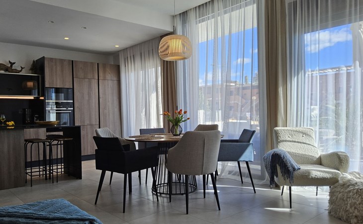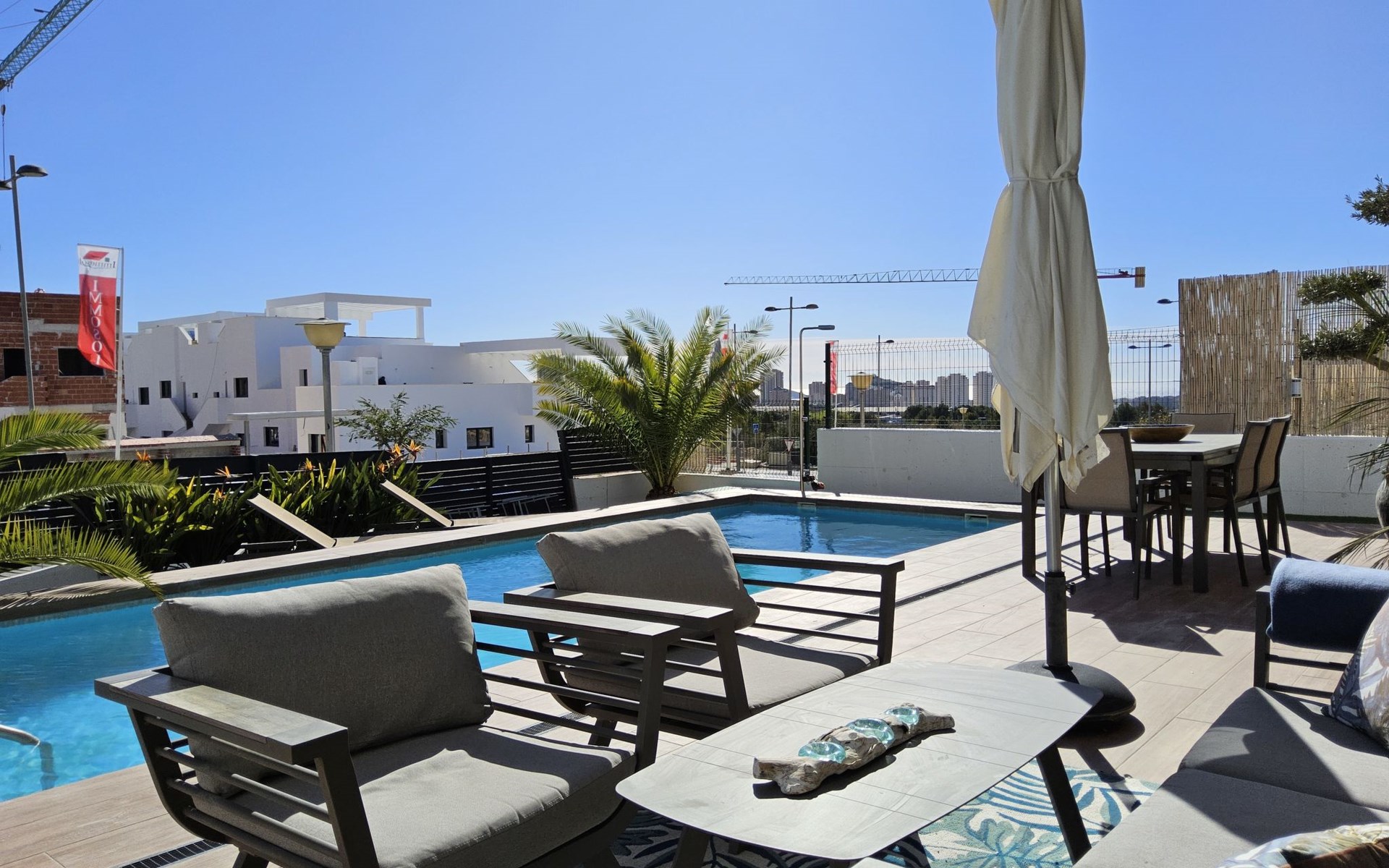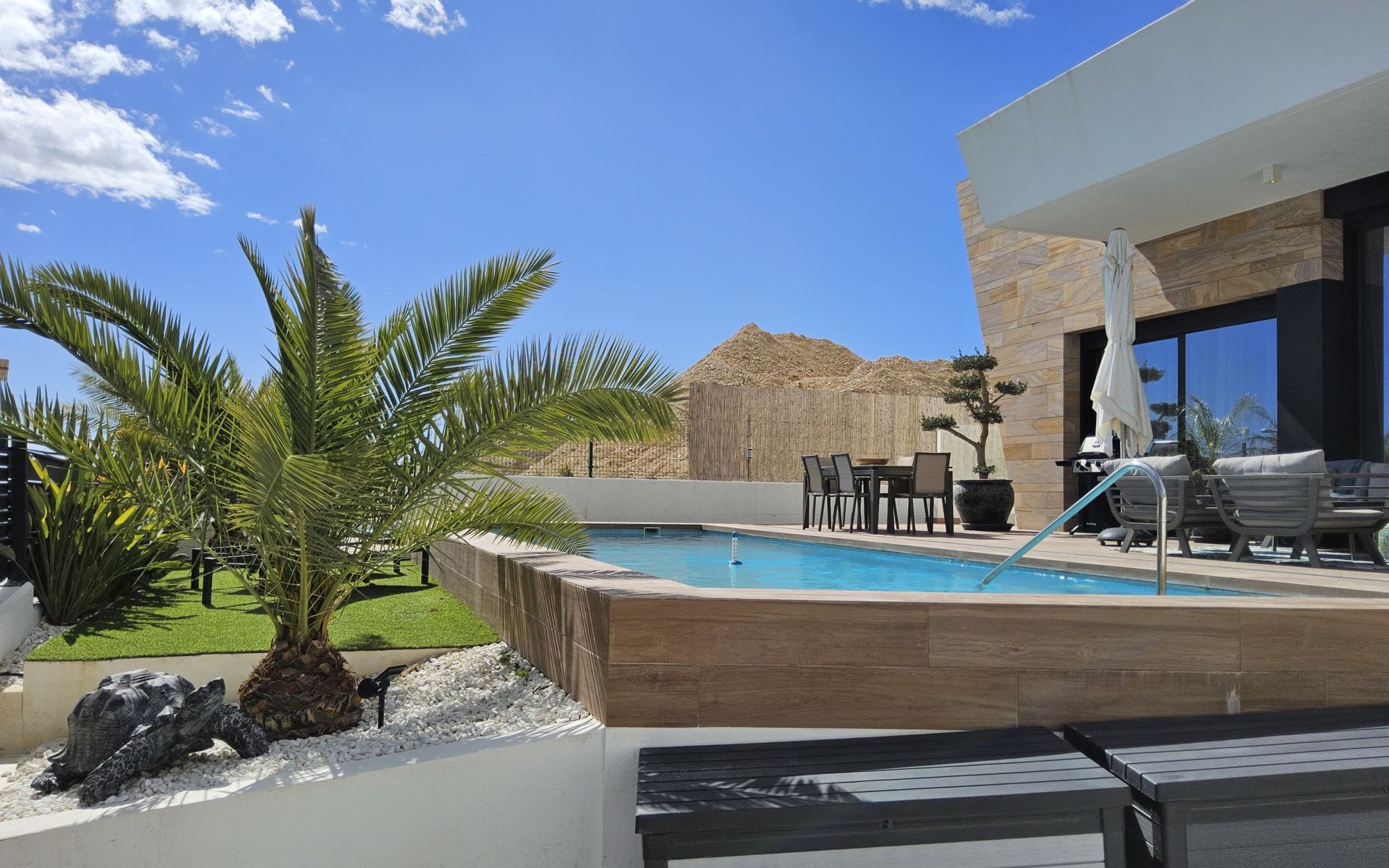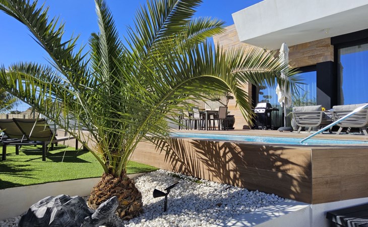 Groot, zeer moderne, comfortabele villa "Benidorm Eudaimonia", van 2 verdiepingen, bouwjaar 2023. Aan de rand van de plaats, 5 km van het centrum van Finestrat, buiten de plaats, 8 km van het centrum van Benidorm, zonnige ligging villa wijk, 3 km van zee, 3 km van het strand. Voor alleengebruik: terrein (omheind) met gazon, openluchtzwembad hoekig (9 x 4 m, 36 m2, seizoensgebonden beschikbaarheid: 01.Jan. - 31.Dec.). Buitendouche, patio (18 m2), tuinmeubelen, barbecue, parkeerplaats op het terrein. Supermarkt 2 km, restaurant 2 km, bar 2 km, bushalte "Benidorm" 2 km, station "Benidorm" 2 km. Golfterrein (18 holes) 4 km, wandelroutes 300 m vanaf het huis. Attracties in de buurt: Terra Mitica 4 km, Terra Natura 5 km, Aqualandia 14 km, Mundomar 14 km, Alicante 44 km, Aeropuerto Alicante 56 km. Auto noodzakelijk. Baby uitrusting op aanvraag. De eigenaar accepteert geen jeugdgroepen. Een deel van het huis is afgesloten en niet bezet. De omgeving is gevoelig voor geluidsoverlast. Gelieve geen lawaai te maken en de rust te bewaren.
