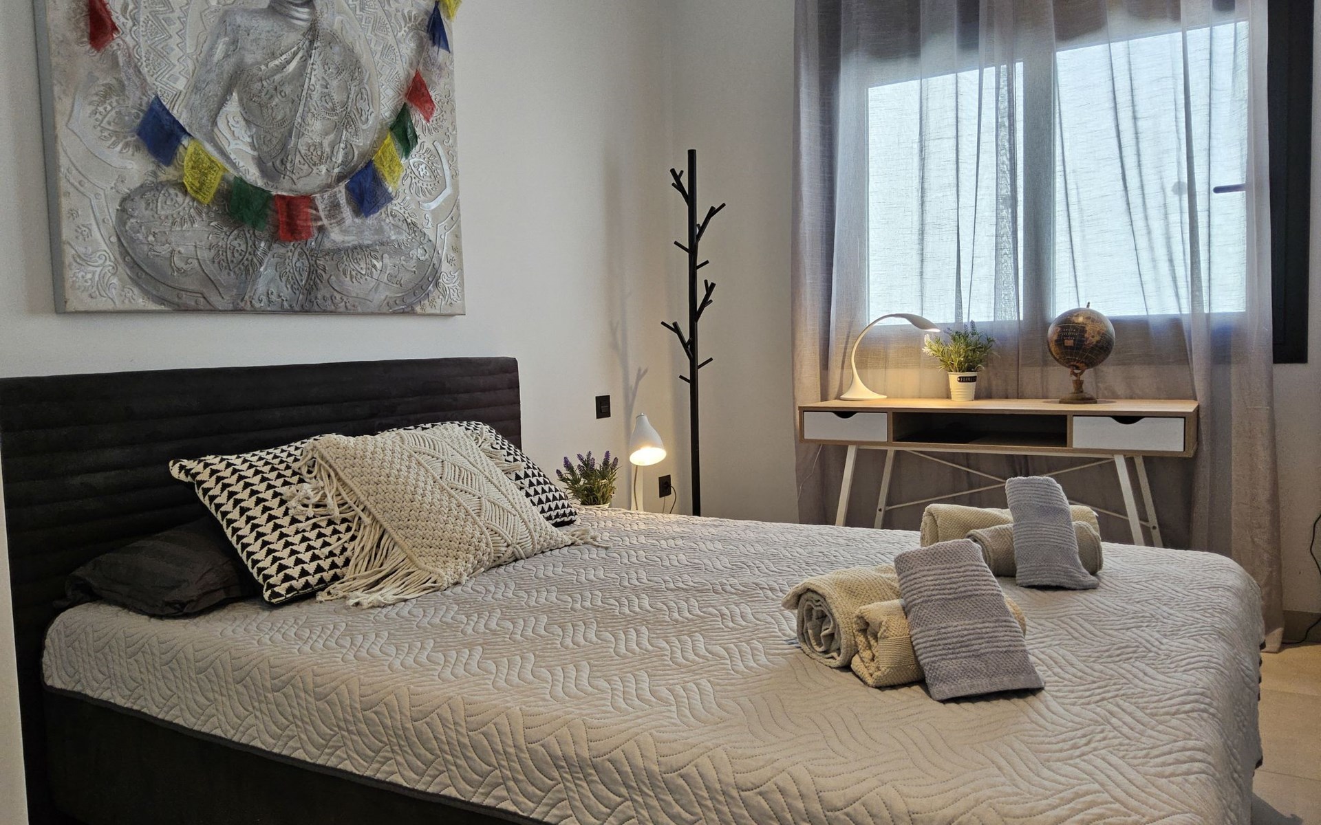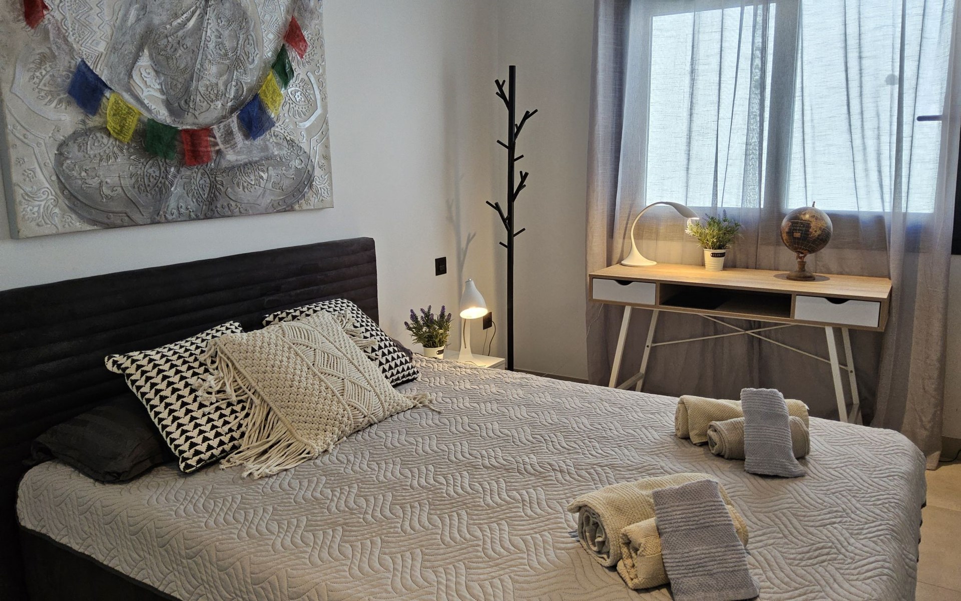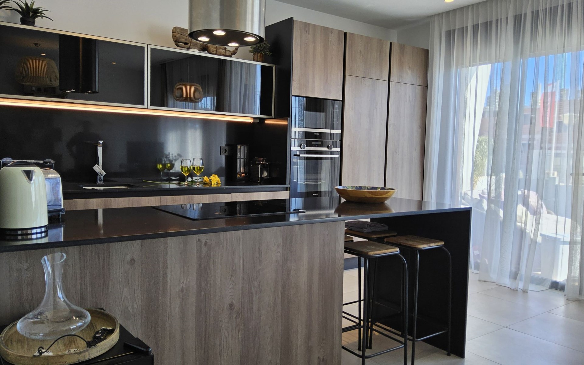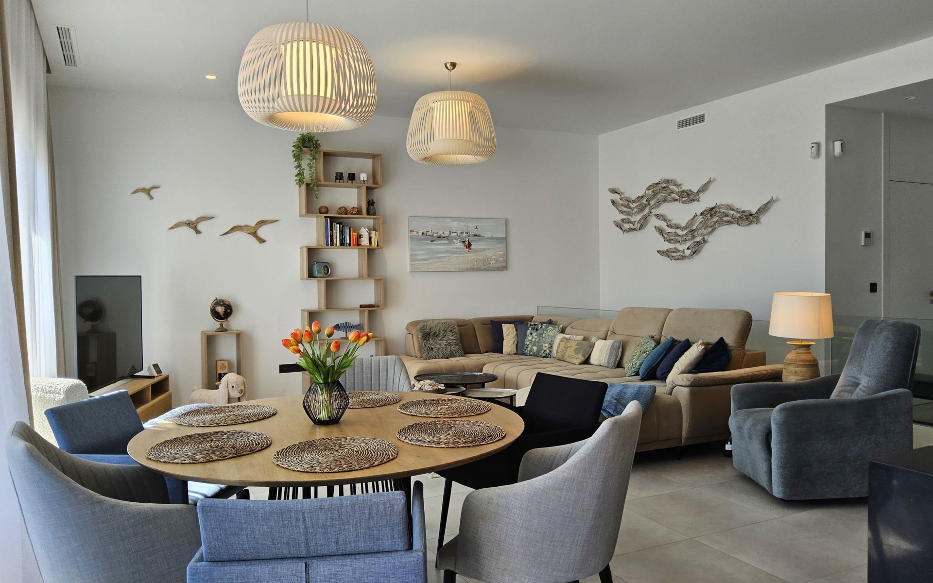 Groot, zeer moderne, comfortabele villa "Benidorm Eudaimonia", van 2 verdiepingen, bouwjaar 2023. Aan de rand van de plaats, 5 km van het centrum van Finestrat, buiten de plaats, 8 km van het centrum van Benidorm, zonnige ligging villa wijk, 3 km van zee, 3 km van het strand. Voor alleengebruik: terrein (omheind) met gazon, openluchtzwembad hoekig (9 x 4 m, 36 m2, seizoensgebonden beschikbaarheid: 01.Jan. - 31.Dec.). Buitendouche, patio (18 m2), tuinmeubelen, barbecue, parkeerplaats op het terrein. Supermarkt 2 km, restaurant 2 km, bar 2 km, bushalte "Benidorm" 2 km, station "Benidorm" 2 km. Golfterrein (18 holes) 4 km, wandelroutes 300 m vanaf het huis. Attracties in de buurt: Terra Mitica 4 km, Terra Natura 5 km, Aqualandia 14 km, Mundomar 14 km, Alicante 44 km, Aeropuerto Alicante 56 km. Auto noodzakelijk. Baby uitrusting op aanvraag. De eigenaar accepteert geen jeugdgroepen. Een deel van het huis is afgesloten en niet bezet. De omgeving is gevoelig voor geluidsoverlast. Gelieve geen lawaai te maken en de rust te bewaren.