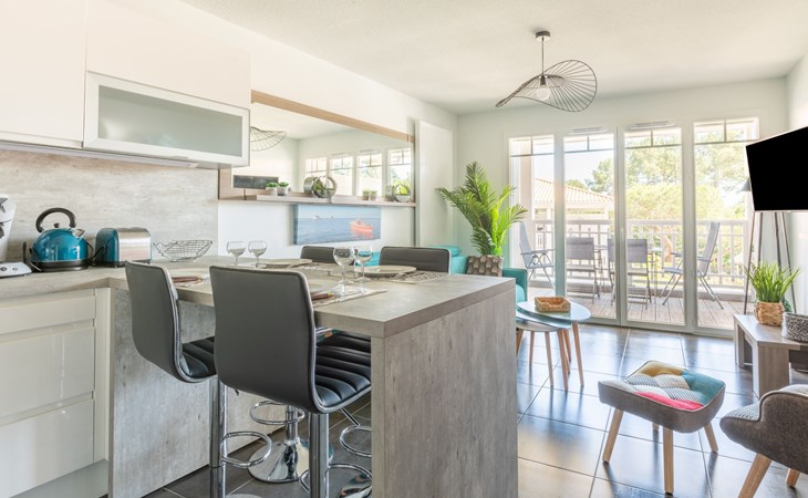 La Teste de Buch 4 km van Arcachon: Mooi residentie "Les Portes de Pyla". 4 km van zee, 4 km van het strand, te midden van groen. Voor medegebruik: openluchtzwembad (28 x 8 m, 2 - 50 cm diepte, seizoensgebonden beschikbaarheid: 01.Jun. - 30.Sep. openingstijden zwembad: 10:00-19:00). Jeu de boules, beachvolleybal, kinderspeelplaats. In het complex: lift, bergruimte voor fietsen. Winkel 1.9 km, levensmiddelenwinkel 200 m, supermarkt 2.4 km, winkelcentrum 1.9 km, restaurant 300 m, bar 4.1 km, bakkerij 1.9 km, bushalte "Boulevard du Pyla" 600 m, station "La Teste de Buch" 2.9 km, zandstrand "Plage du Moulleau" 4 km, park "Mauresque" 3.9 km, thermaalbad "Thalazur" 4.2 km. Jachthaven 4.8 km, golfterrein (18 holes) 1.4 km, surfschool 4.5 km, fietspad 800 m. Attracties in de buurt: Dune du Pyla 7.1 km, Eratopia 6.8 km, Marché Municipal 2 km, Casino 4.6 km, Navette Maritime pour le Cap Ferret 4.2 km, Réserve Ornithologique du Teich 13.3 km. Bekende meren kunnen gemakkelijk worden bereikt: Lac de la Magdeleine 7.5 km, Lac de Cazaux 14 km. De sleuteloverdracht vindt plaats bij het agentschap Interhome in Arcachon, 4 km. De omgeving is gevoelig voor geluidsoverlast. Gelieve geen lawaai te maken en de rust te bewaren.