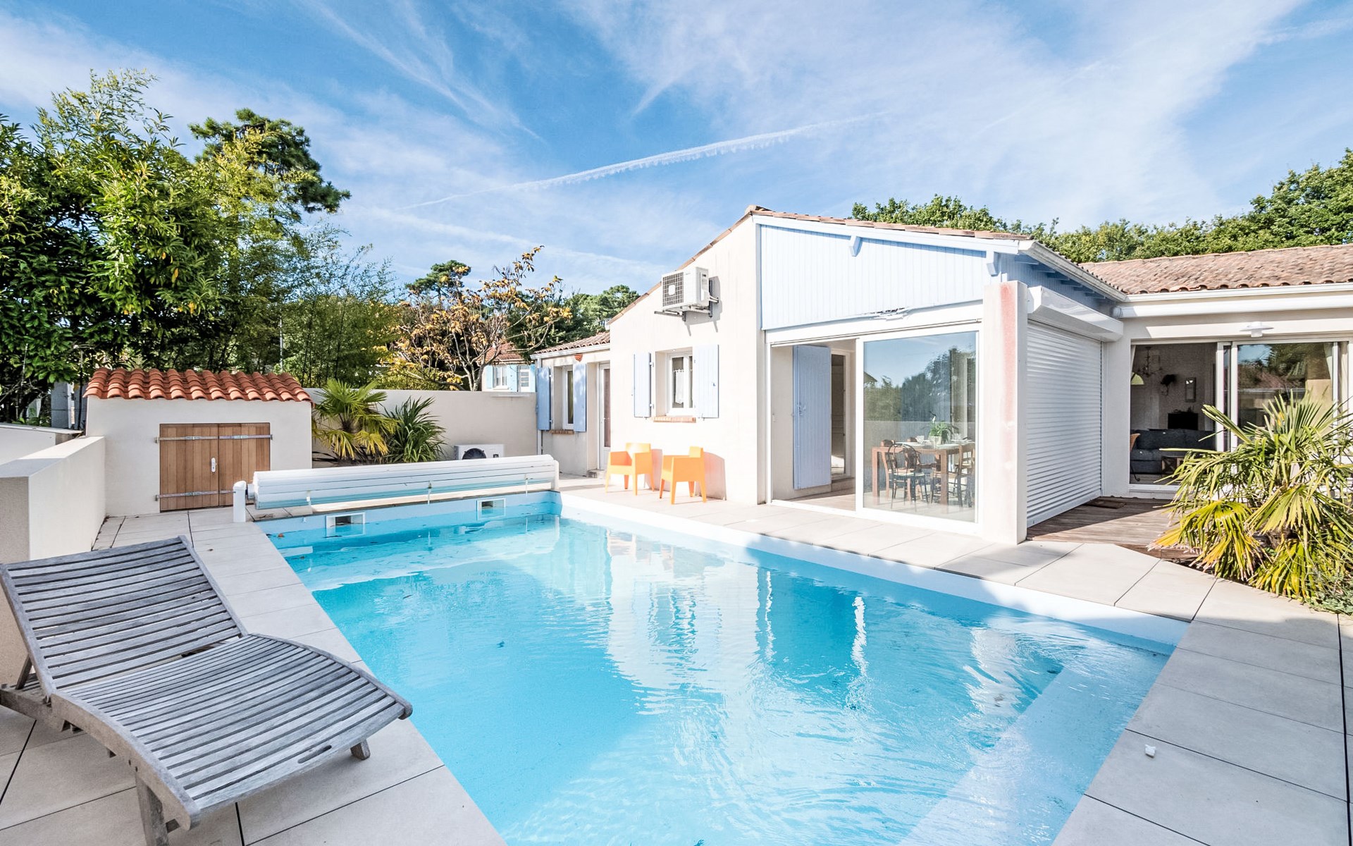 Saint Palais sur Mer 6 km van Royan: Villa "Villa Perdrix". Aan de rand van de plaats, 1.5 km van het centrum van Saint Palais sur Mer, 1 km van zee, 1 km van het strand. Voor alleengebruik: verzorgde tuin 592 m2 (omheind) met bomen, openluchtzwembad verwarmd (4 x 8 m, seizoensgebonden beschikbaarheid: 01.Mei. - 15.Sep.) met oprolbaar afdekscherm. Tafeltennis, terras, tuinmeubelen, barbecue. In het huis: wasmachine, droger. Openbare parkeerplaatsen in de straat. Winkel 1.5 km, supermarkt 1.3 km, restaurant 400 m, bakkerij 1.5 km, café 1.5 km, bushalte "Palud" 400 m, station "Royan" 9 km, zandstrand "Platin" 1 km, overdekt zwembad 9 km, thermaalbad "Thalassothérapie Thalazur Royan" 7 km, meer Saint Palais sur Mer 700 m. Golfterrein (18 holes) 400 m, surfschool 1.7 km, zeilschool 3 km, tennis 1 km, tennishal 1 km, manege 900 m. Attracties in de buurt: Embarcadère Royan - Le Verdon 7 km, Zoo de La Palmyre 7 km, Hippodrome - La Palmyre 8 km, Parc attractions Luna Park Juillet-Août) 11 km, Centre aquatique Iléo - Ile d'Oléron 40 km, Fort Boyard - Fouras 50 km. De eigenaar accepteert geen jeugdgroepen. De sleuteloverdracht vindt plaats bij het agentschap Interhome in Vaux sur Mer, 5 km. De omgeving is gevoelig voor geluidsoverlast. Gelieve geen lawaai te maken en de rust te bewaren.