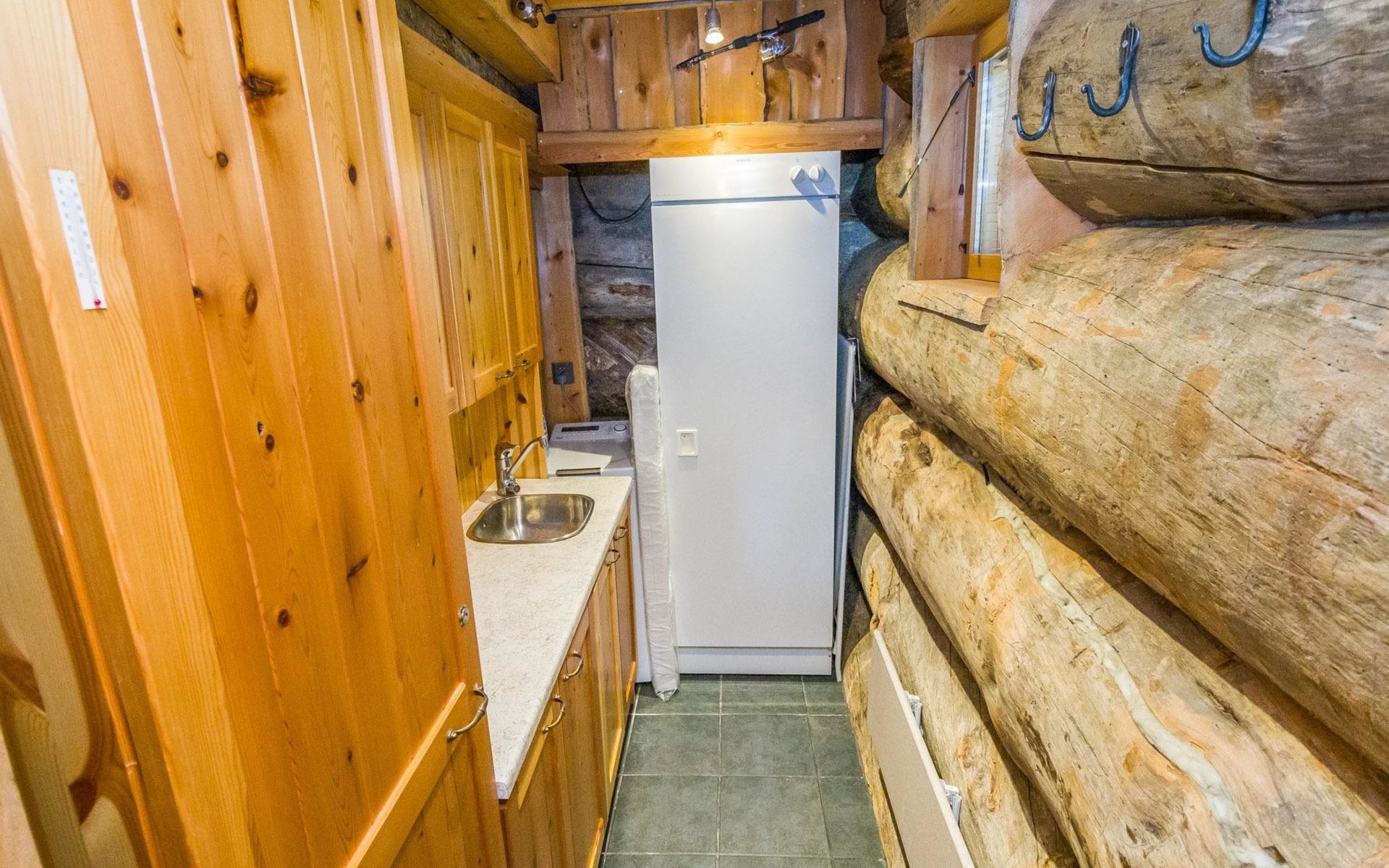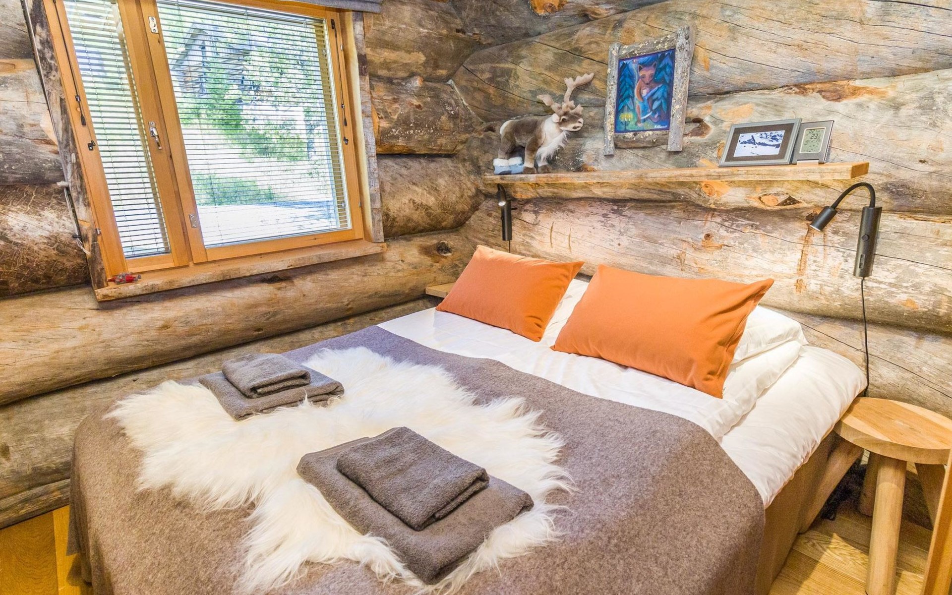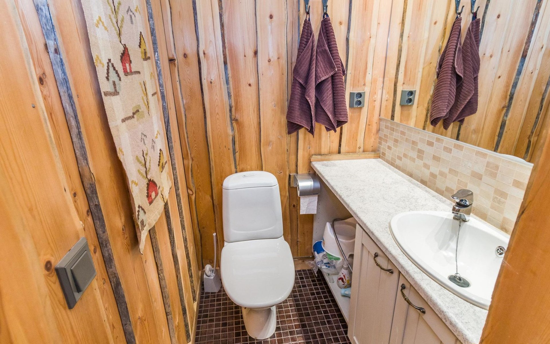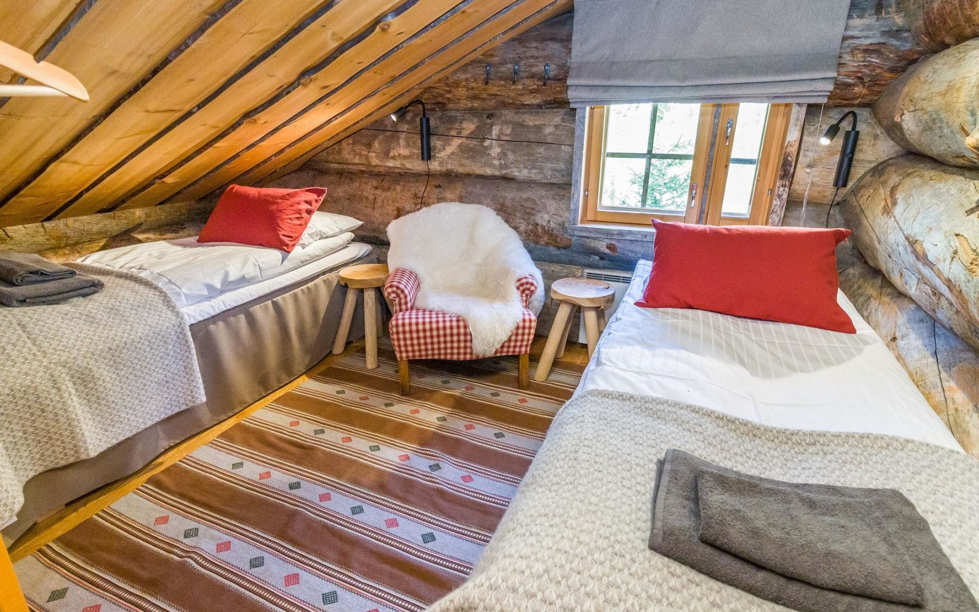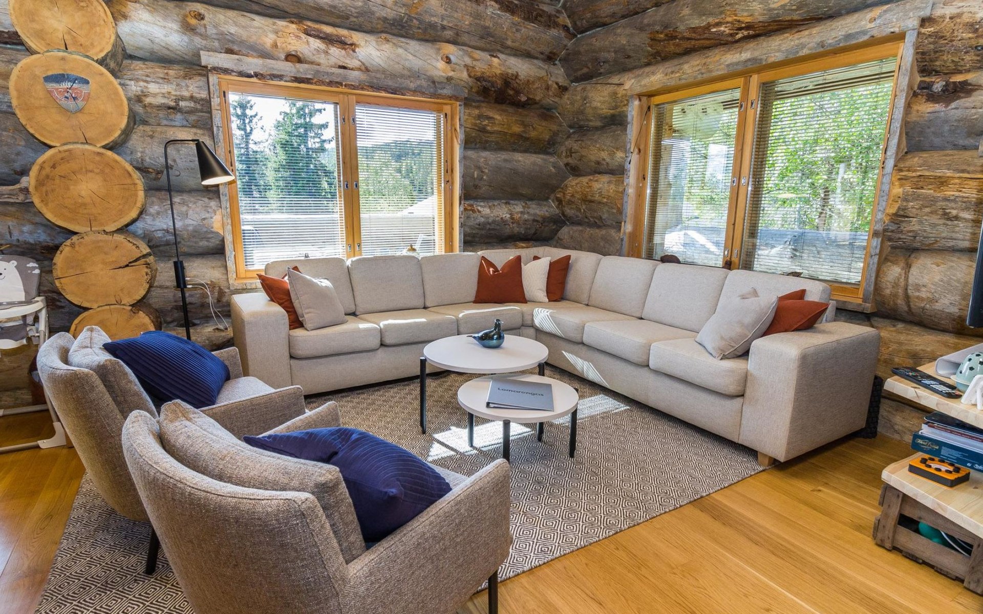 Villa Saaruli provides excellent amenities for a winter holiday. The cabin's cozy interior was mostly renovated in 2023. The open space on two floors includes kitchen, dining area, and seating area around the natural stone fireplace. The cabin has four bedrooms, two with double beds and two with two single beds (located on the upper floor). Ground floor contains a sauna area and a separate WC, and there is a small WC on the upper floor as well. In a separate utility room, there's washing machine and drying cabinet. On the slope side of the cabin, there's a terrace that covers the entire length of the building. Sunlight reaches the terrace until late in the afternoon. Guests arriving at Villa Saaruli can enjoy hotel-style beds and towels. Final cleaning and electricity are included in the rent.