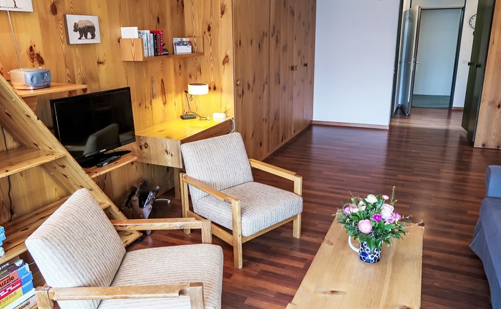 Flatgebouw "Utoring Acletta", 1.250 m boven zeeniveau. Boven Disentis, in de plaats, 2 km van het centrum, rustige, zonnige ligging tegen een helling, 700 m van het skigebied. Voor medegebruik: overdekt zwembad (24 m2, 170 cm diepte). Kinderspeelplaats. In het huis: receptie, salon, tafeltennis, tafelvoetbal, lift, berging voor ski's, centrale verwarming, wasmachine, droger (voor medegebruik, extra). (extra). Toegangsweg tot aan het huis (bergweg). Gemeenschappelijke garage. Afmetingen: hoogte 195 cm. Oplaadstation. Winkel, supermarkt, restaurant 700 m, bushalte "Disentis/Mustér, Pendicularas" 500 m, station "Disentis" 2 km. Kabelbaan, skilift, ski faciliteiten, skipisten 700 m, skibushalte 50 m, skischool 500 m, langlaufloipe 1.5 km, kinderspeelplaats 1 km. Bekende skigebieden kunnen gemakkelijk worden bereikt: Ski Arena Andermatt/Sedrun/Disentis. Vergelijkbare accommodaties kunnen worden geboekt. De woningen kunnen onderling van inrichting verschillen. Boodschappenservice is mogelijk. Kinderskischool in de nabijheid van het huis. Het huis en de kabelbaan zijn bereikbaar op ski's. Internet (ADSL-aansluiting, gratis). Gratis: 1 garageplaats (max. hoogte 1.95 m). Extra: CHF 20.00/week voor 1 aanvullende parkeerplaats.