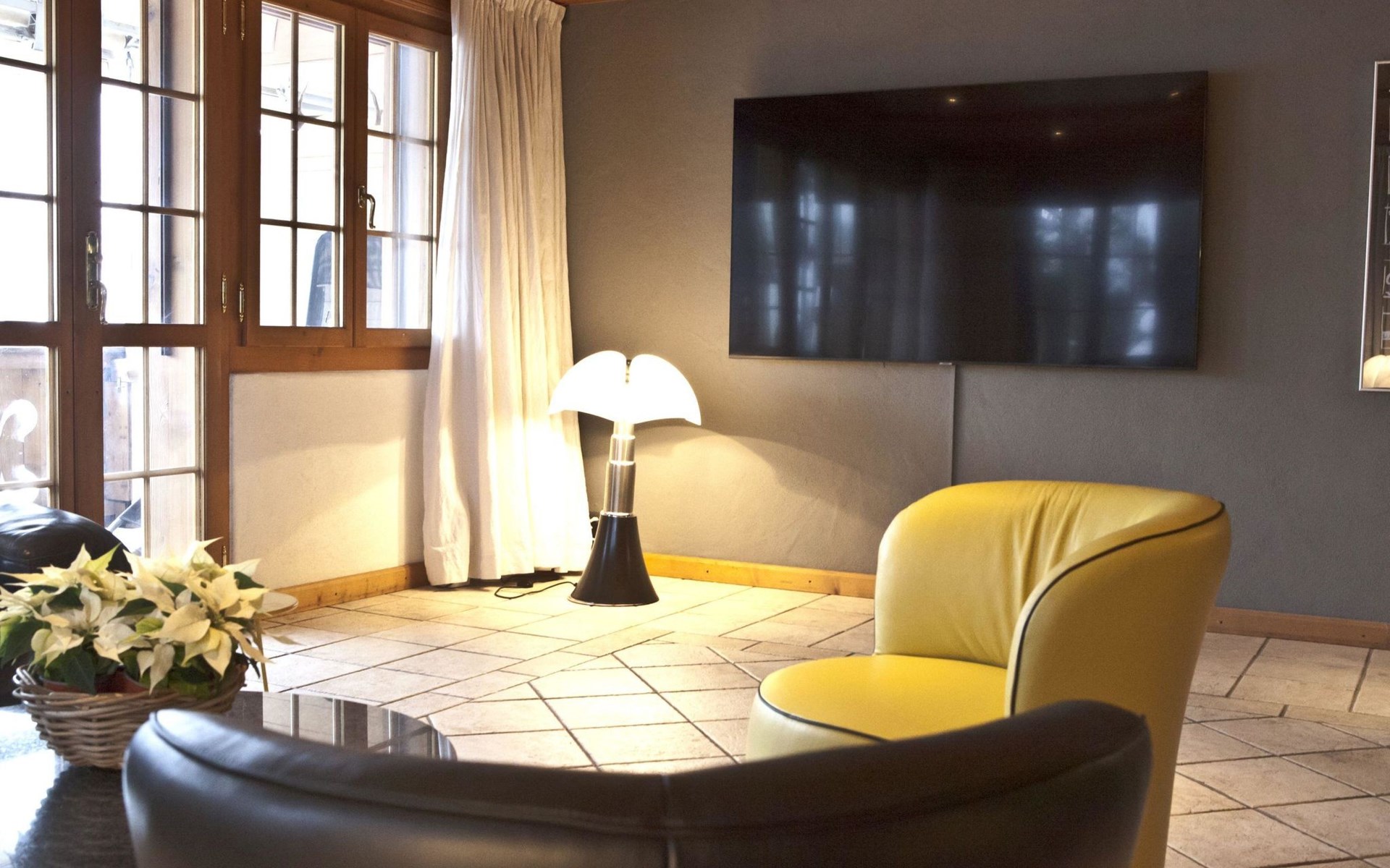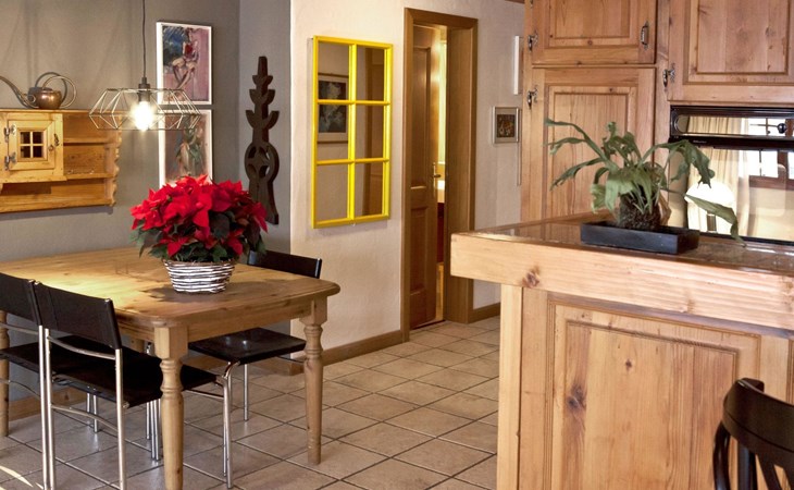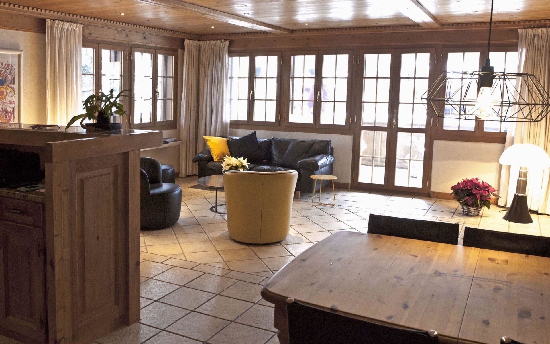 Lift, wall cupboard as coat-rack. Cosy living room with a 2-seater sofa, 2 armchairs, large flat screen TV/radio, WiFi. Extendable dining table with 6 chairs. Open-plan kitchen with ceramic hub and fume hood, refrigerator with freezer, oven, dish washer, toaster, microwave, coffee machine with capsules (Nespresso), raclette-set and fondue-set. Master bedroom with 2 beds (90x190cm), wall cupboard and shower/WC. Children's bedroom with 2 beds (90x190cm), wall cupboard. Bathroom with bathtub and WC.