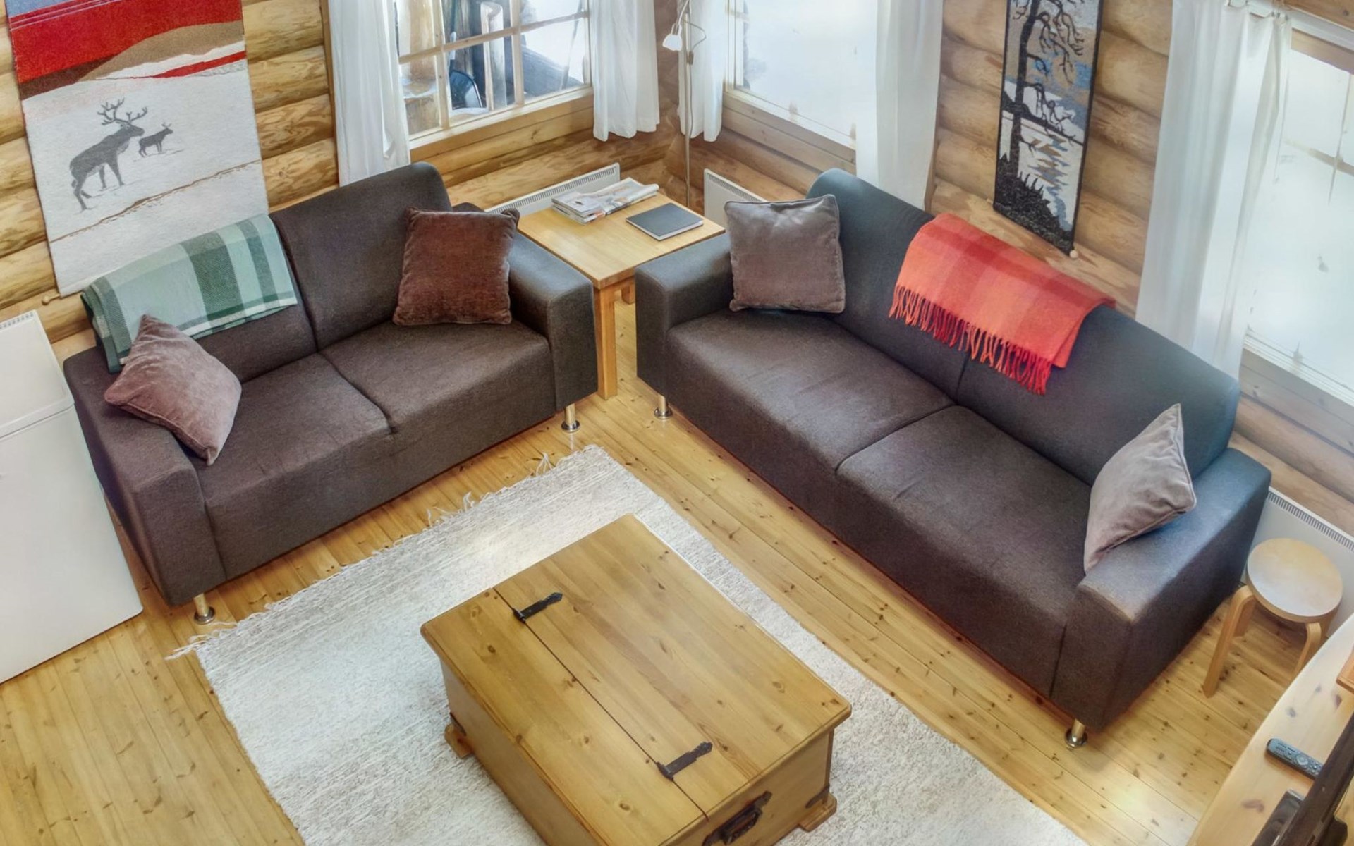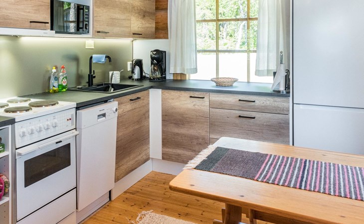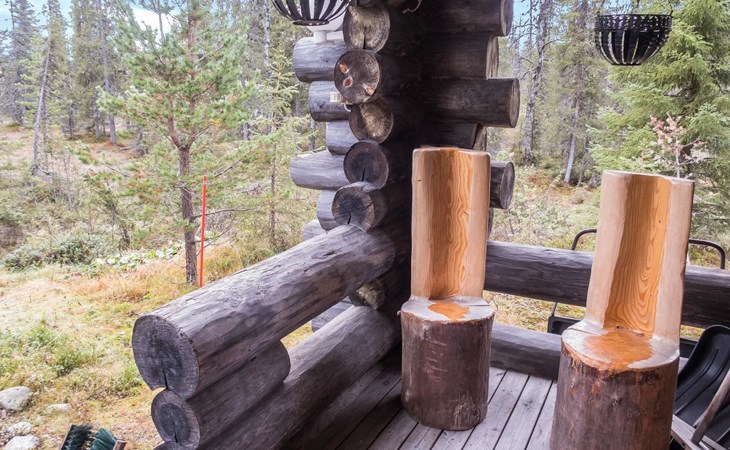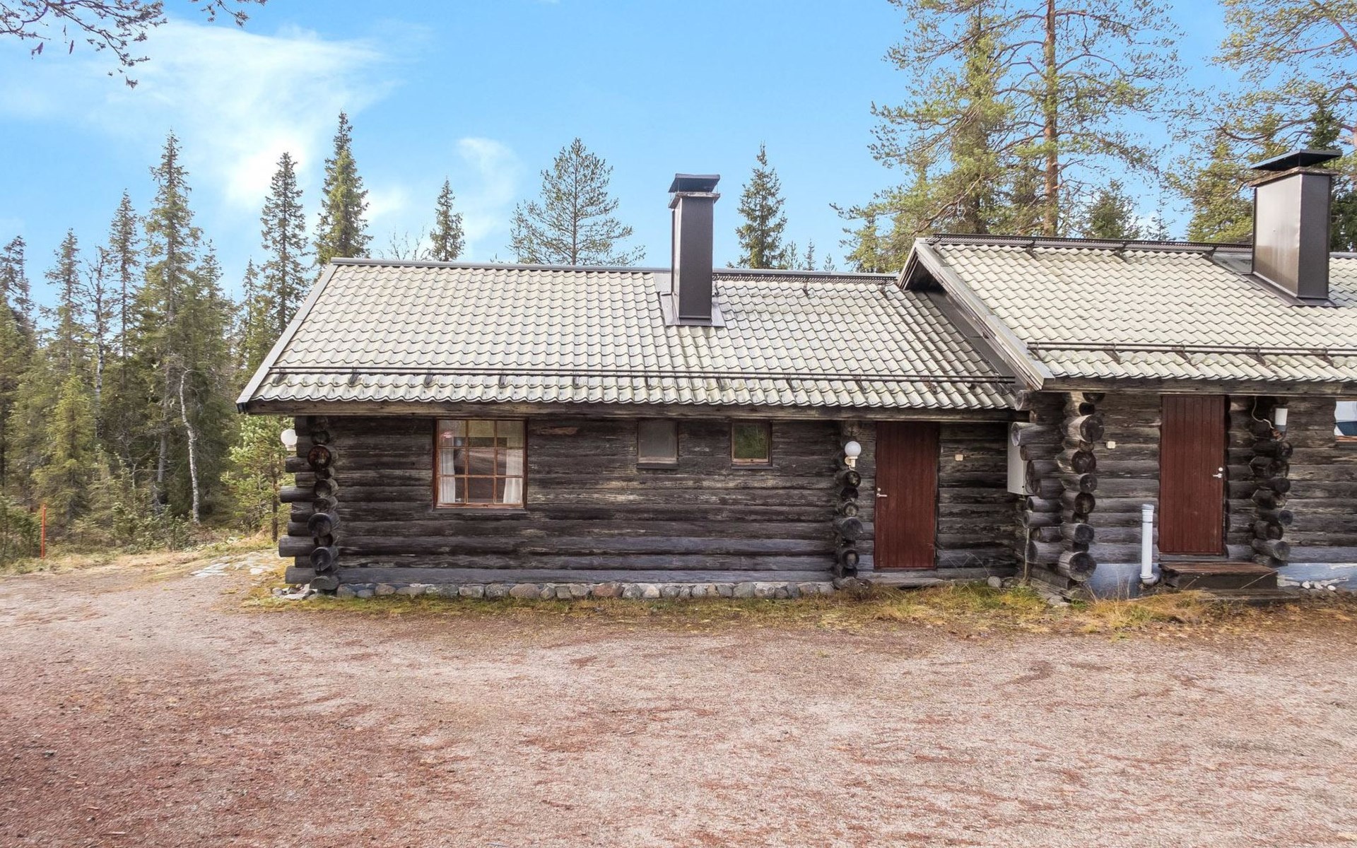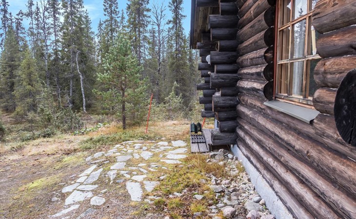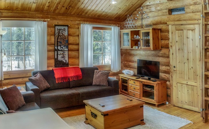 30 km to the north from Kuusamo, Vuosseli (East-Ruka) 3.4 km, Ruka village (West-Ruka, central square) 7.4 km, lake Vuosselijärvi 700 m. Apartment in a kelo log-built semidetached house, built in 1990. Bedroom: double bed, sleeping alcove: bunk bed, loft: mattresses, steep stairs to the loft. Living room, kitchen, electric sauna.