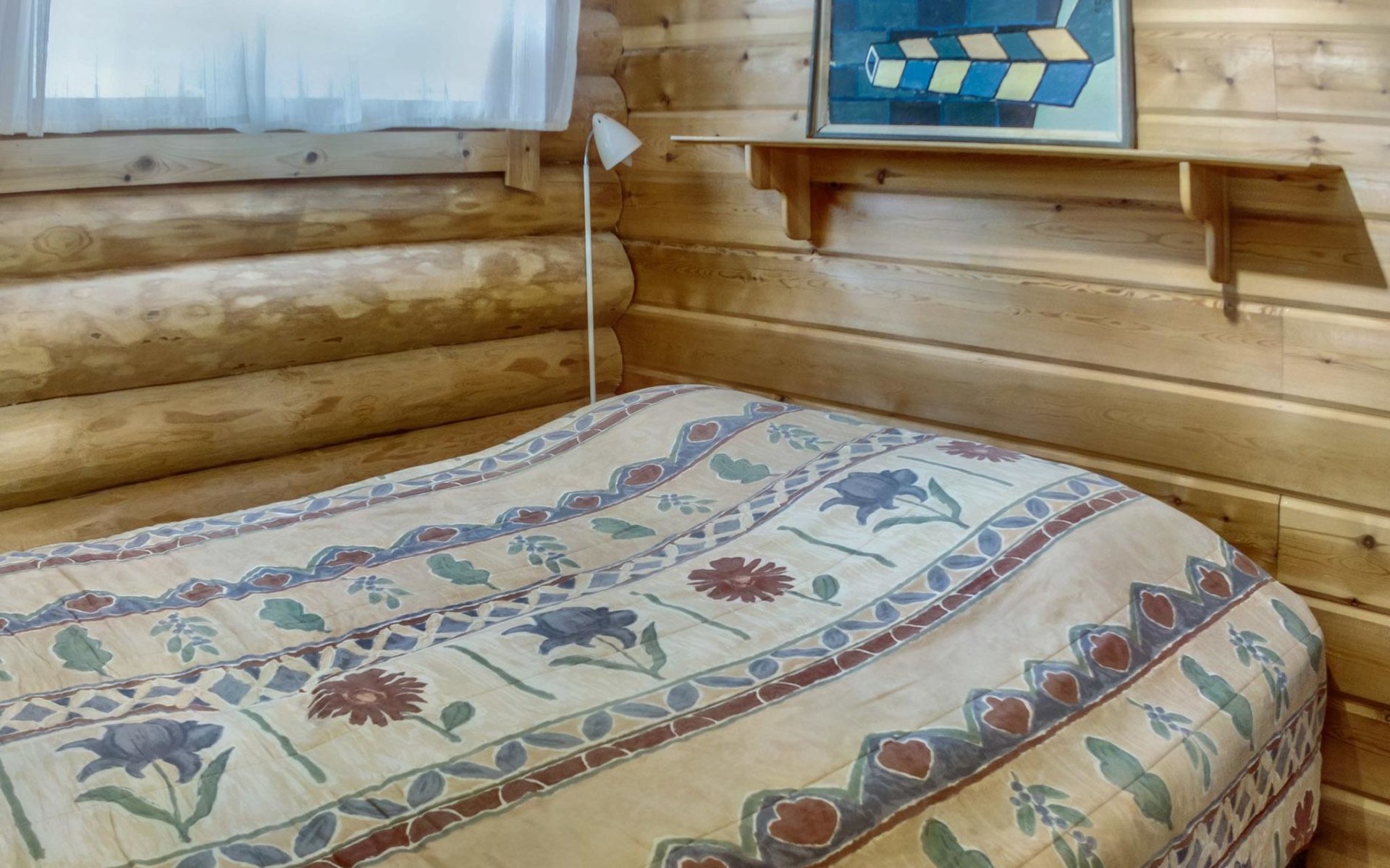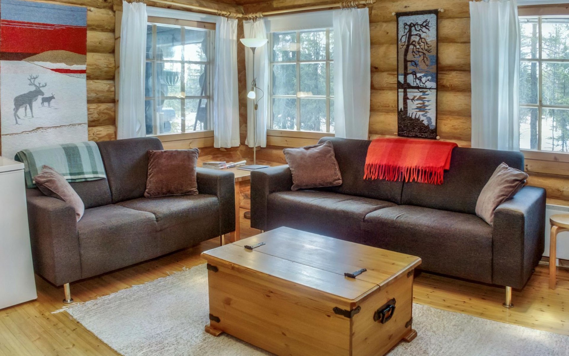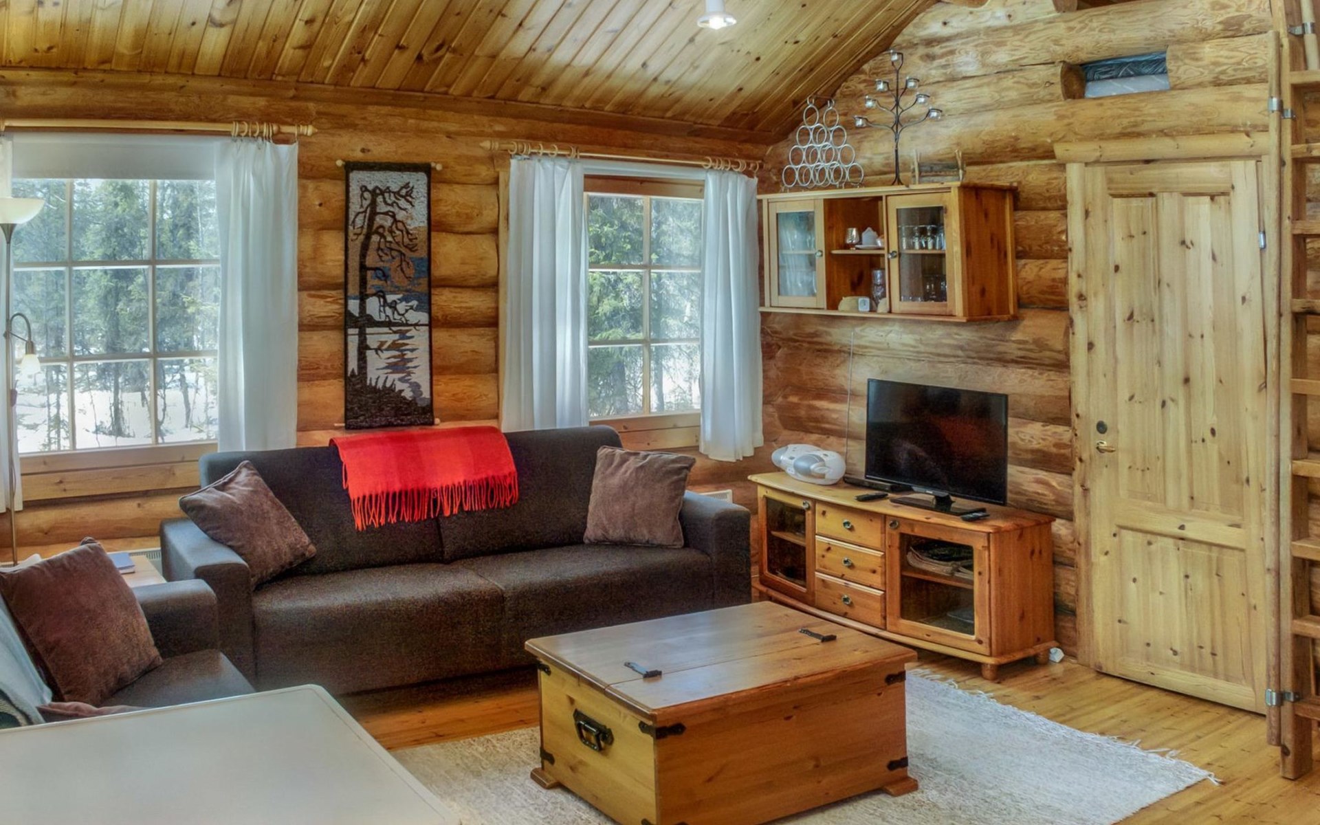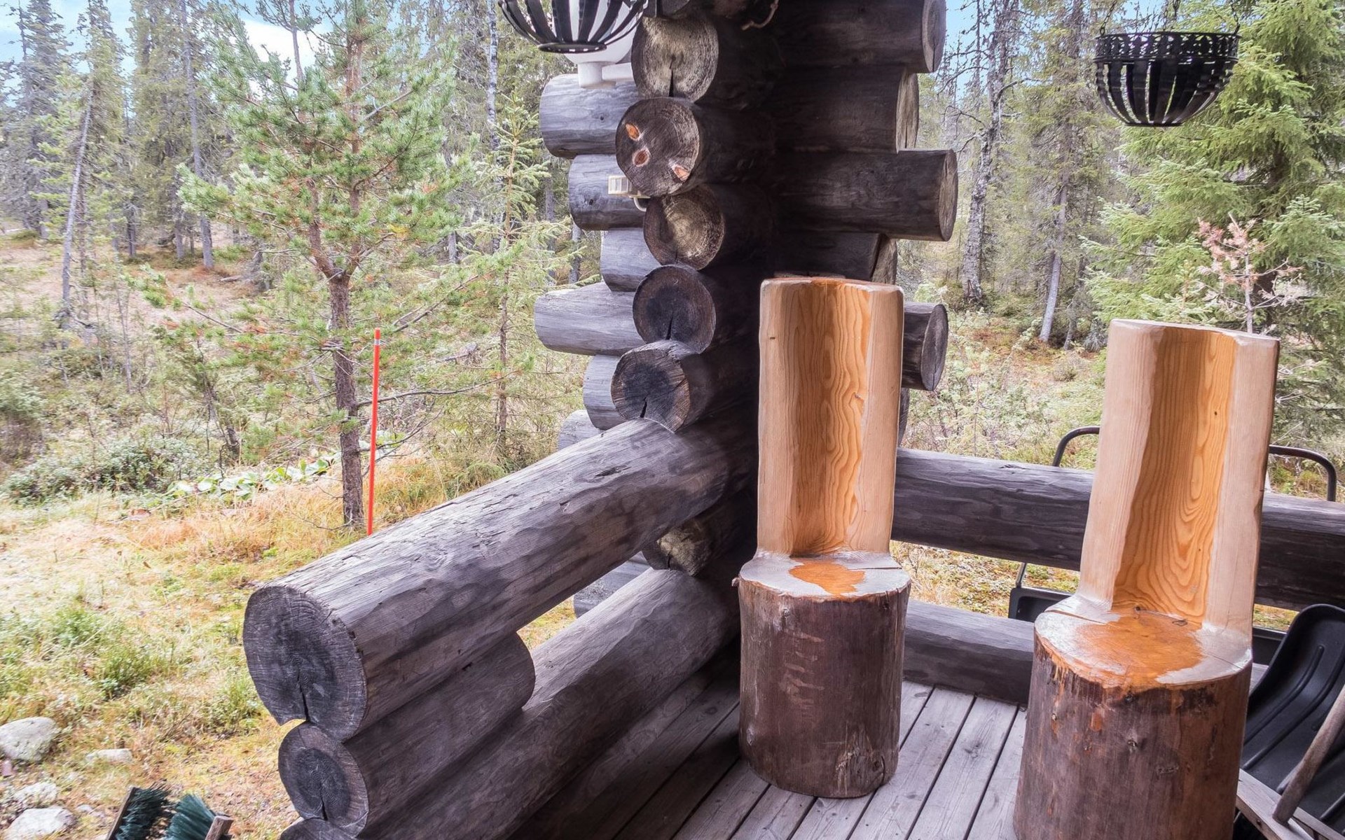 30 km to the north from Kuusamo, Vuosseli (East-Ruka) 3.4 km, Ruka village (West-Ruka, central square) 7.4 km, lake Vuosselijärvi 700 m. Apartment in a kelo log-built semidetached house, built in 1990. Bedroom: double bed, sleeping alcove: bunk bed, loft: mattresses, steep stairs to the loft. Living room, kitchen, electric sauna.