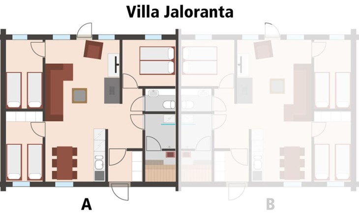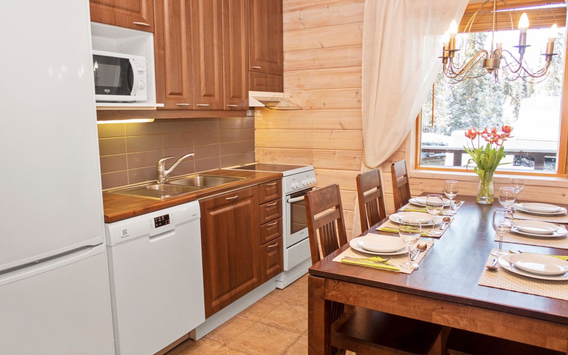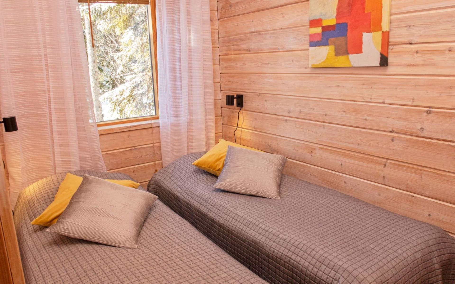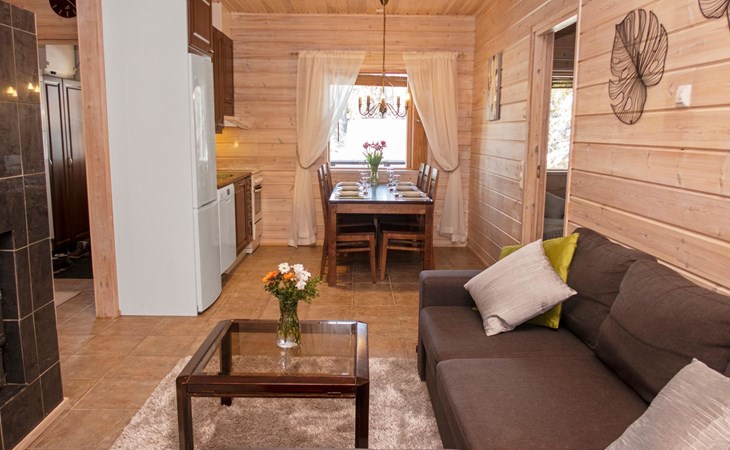 The price includes final cleaning, linen can be booked in advance for an additional fee. More instructions in the booking conditions. Semi-detached Log cottage in East Ruka, 4 km to the slopes. Snow scooter track 1 km. Kuusamo Golf 26 km (about 30 min drive).