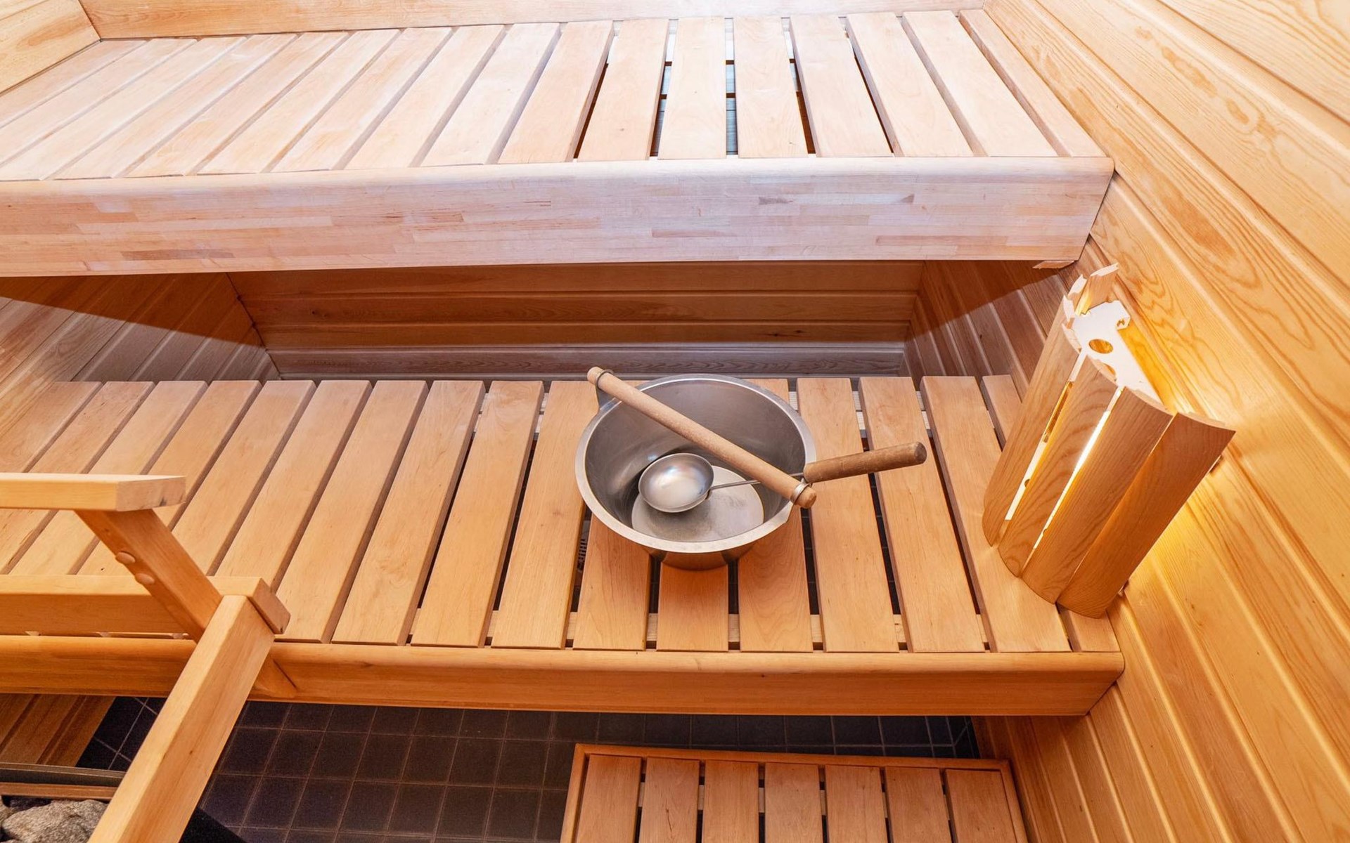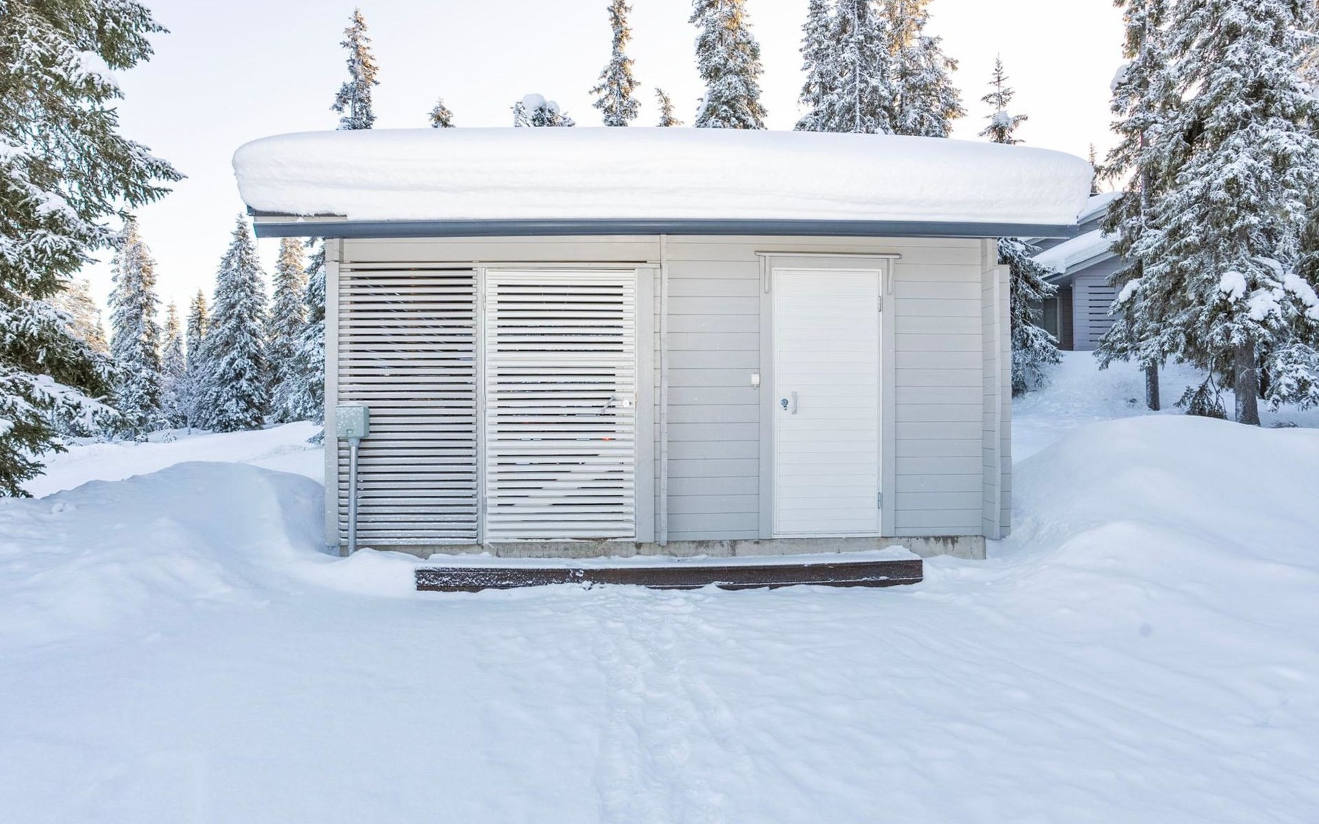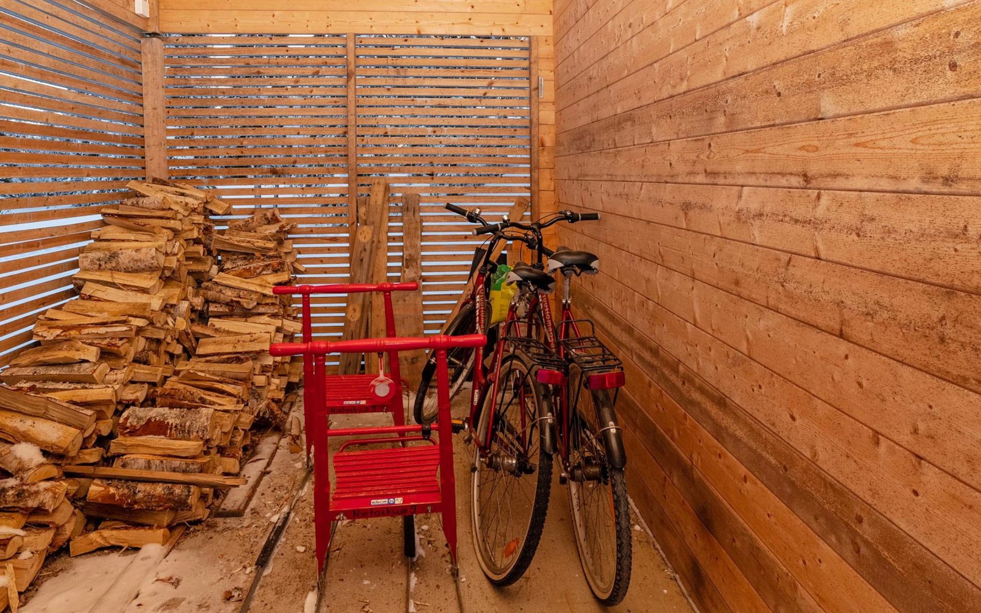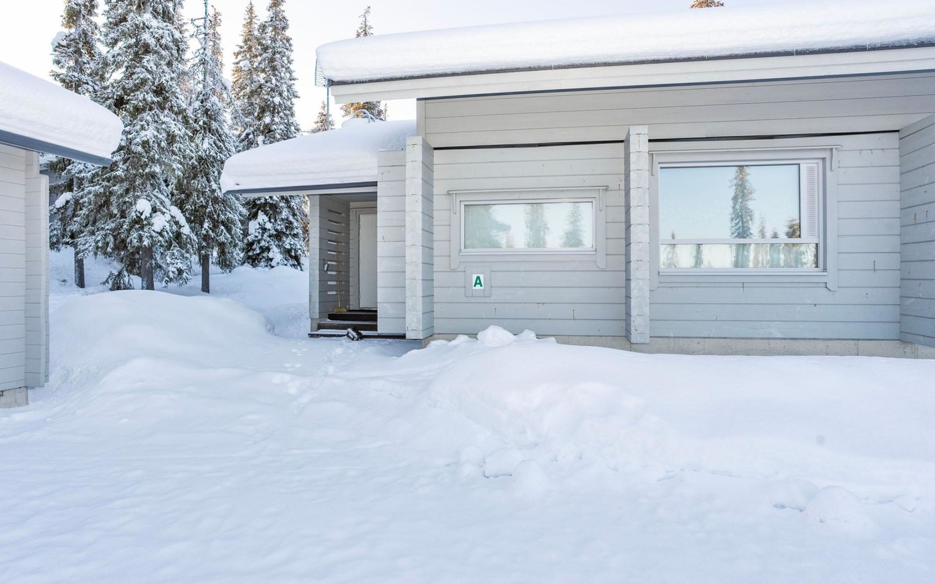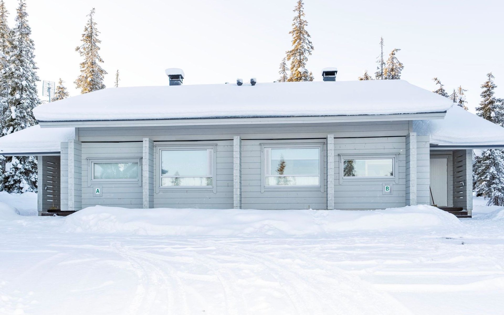 High level apartment in log-built semi-detached house, built in 2005. Bedroom 1: double bunk bed (width 140 cm), bedroom 2: 2 beds (can not be separated), bedroom in loft: 2 beds, loft (room heigth less than 2 m), steep stairs to the loft, living room: convertible sofa, combined kitchen/living room, electric sauna.