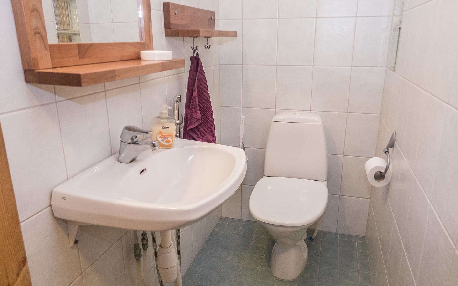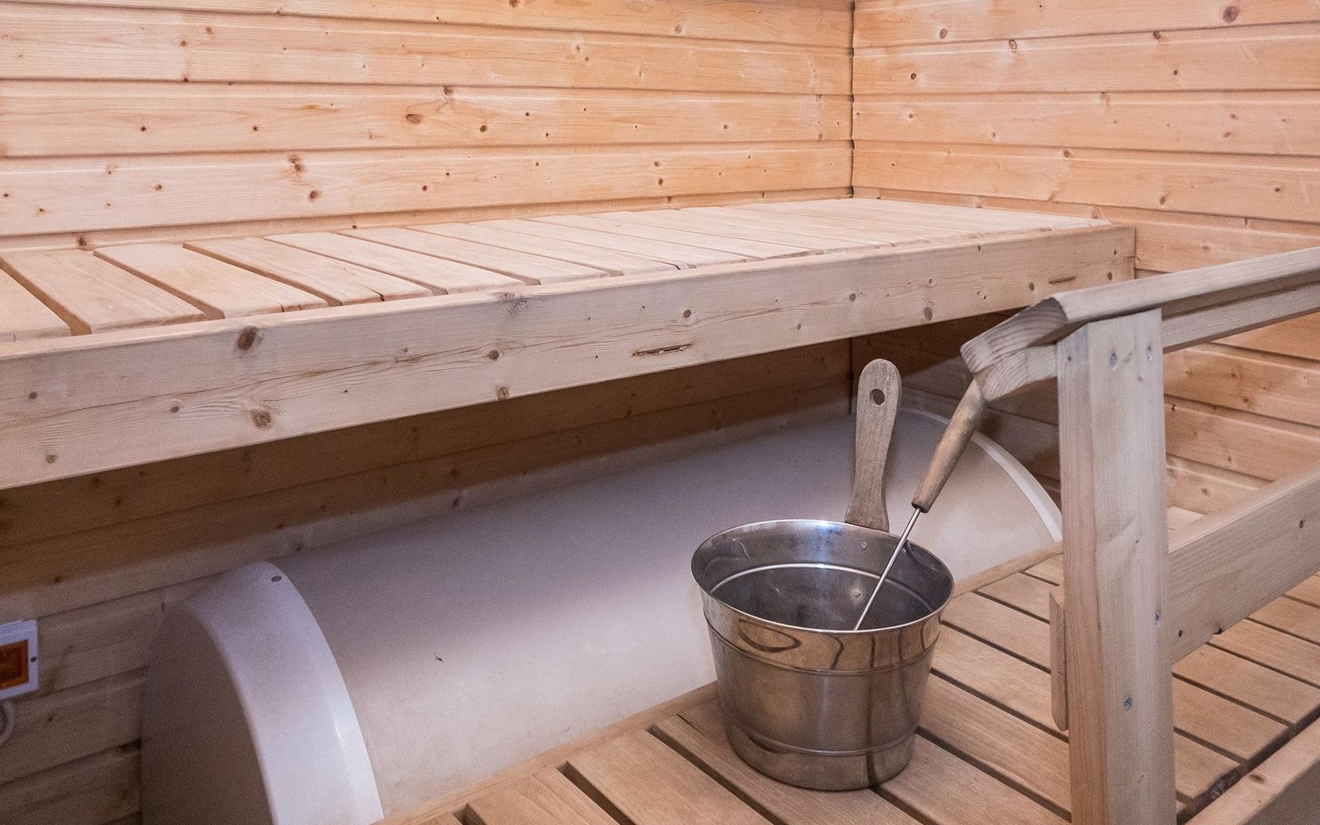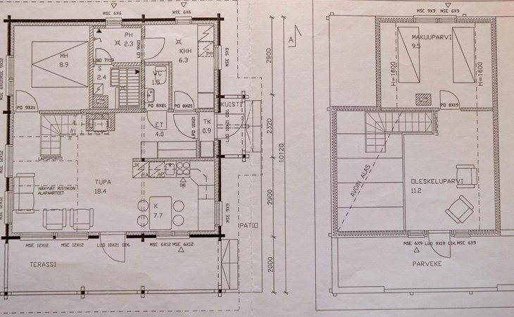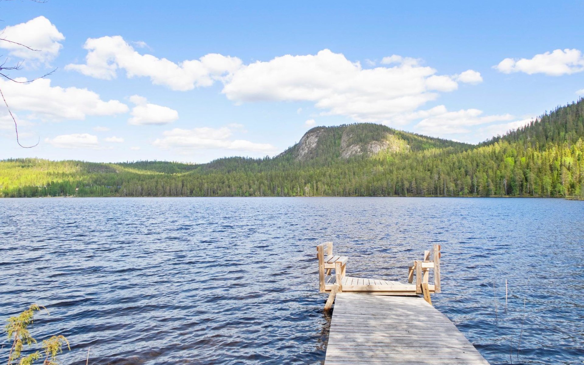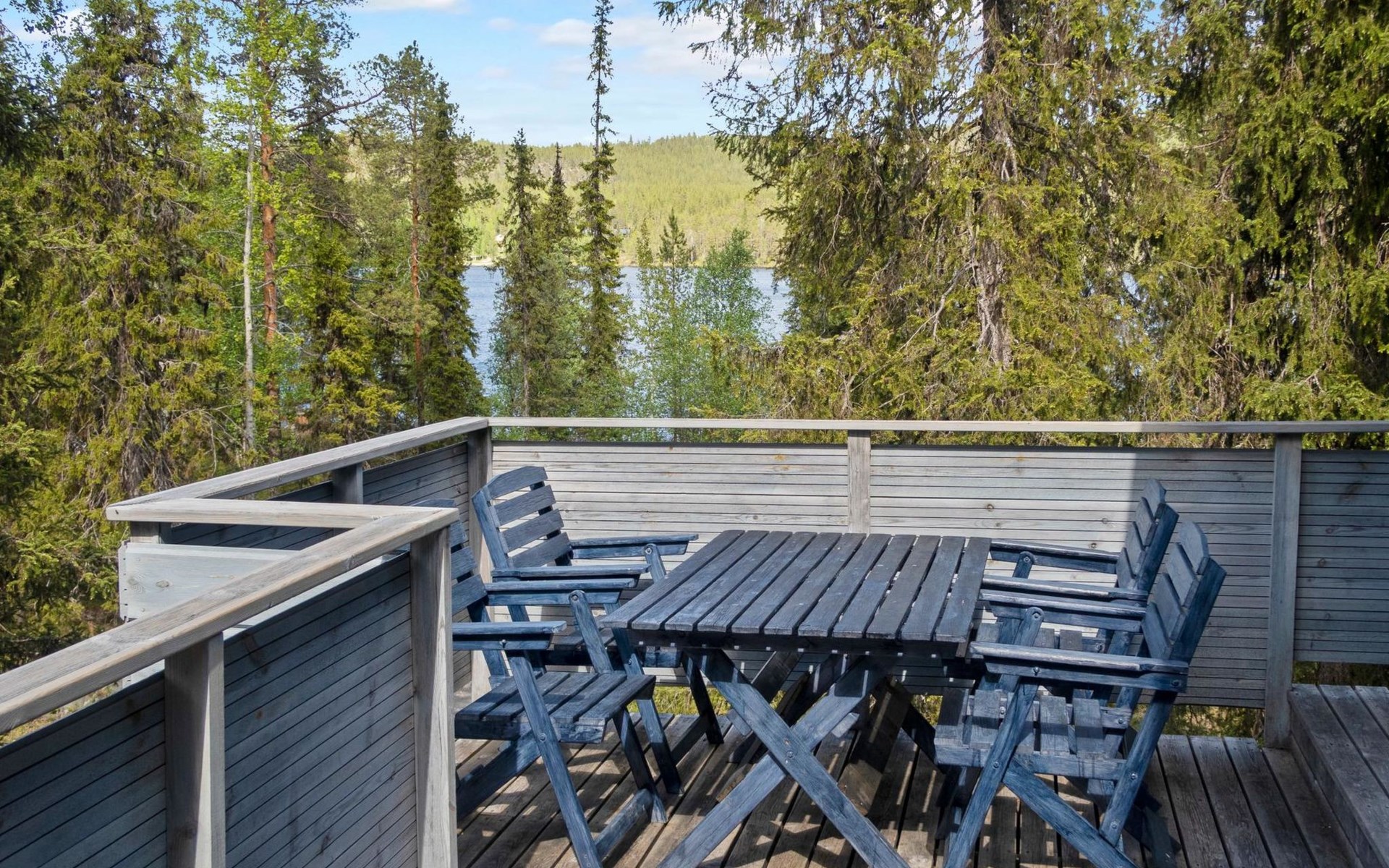 Log chalet 2004, living room/kitchen, bedroom double bed, utilities room/ dressing room, washroom, sauna (elec. stove), open porch, upstairs bedroom 2 beds (á 80 cm wide), recreation loft convertible sofa/ bed for two and balcony.