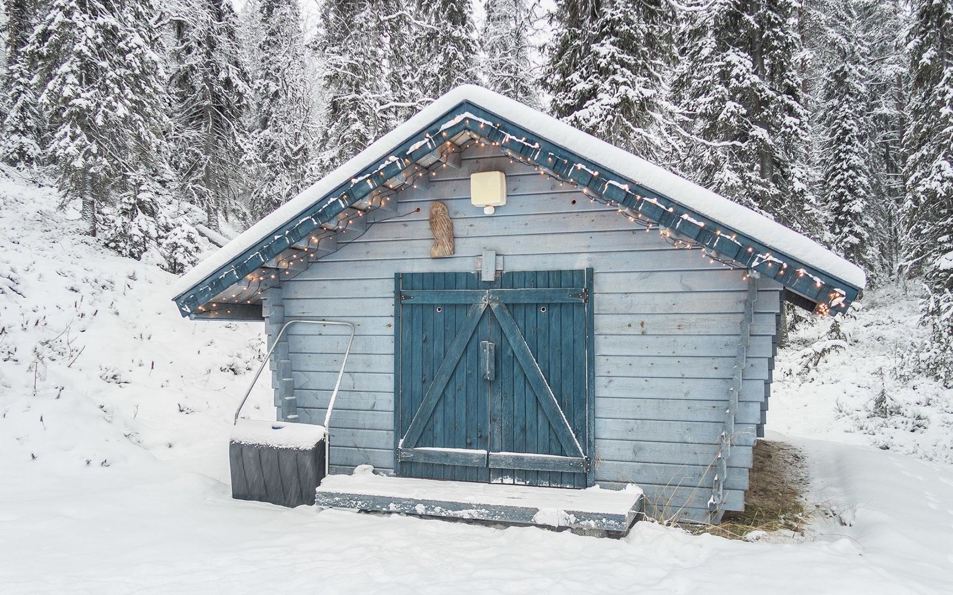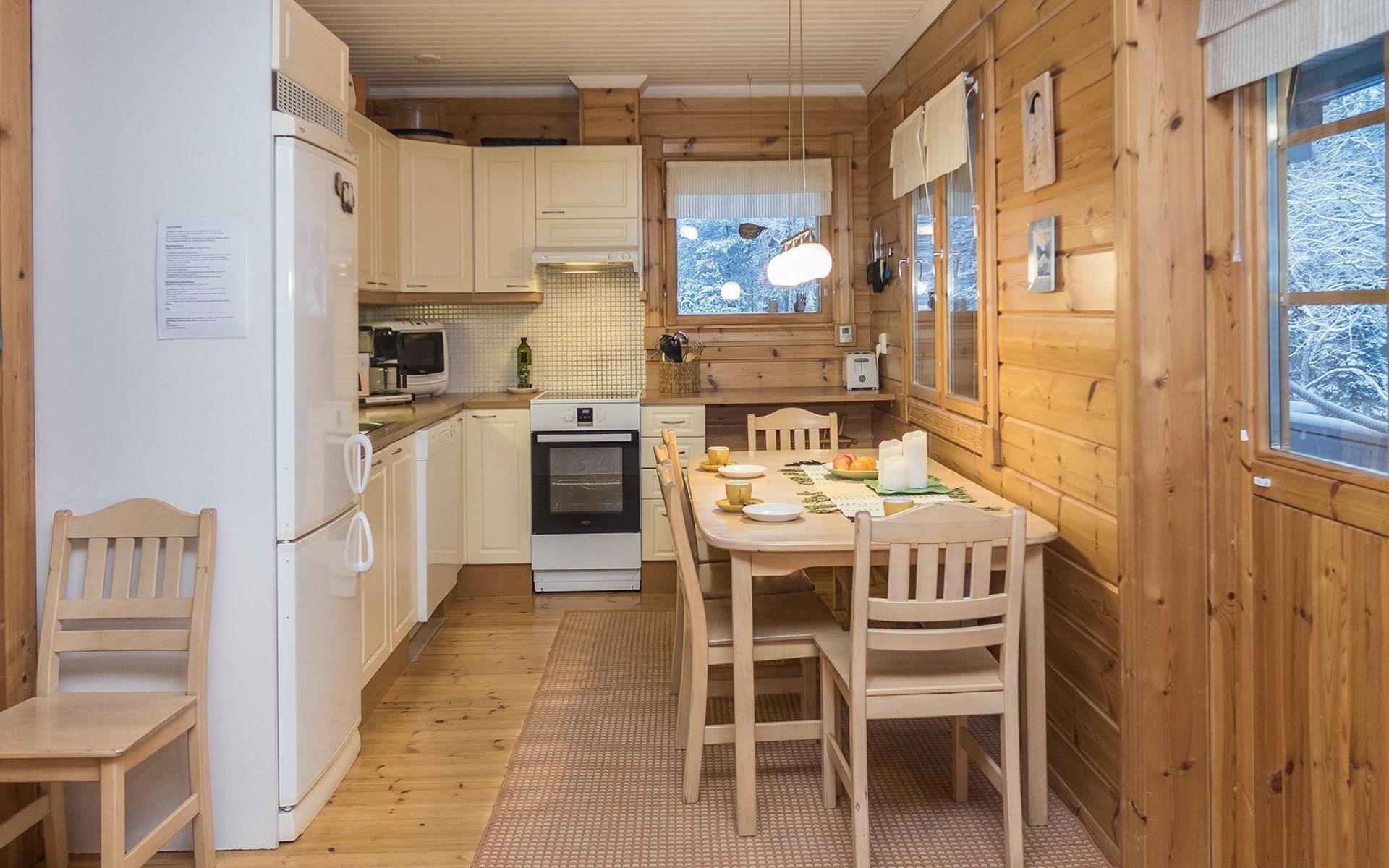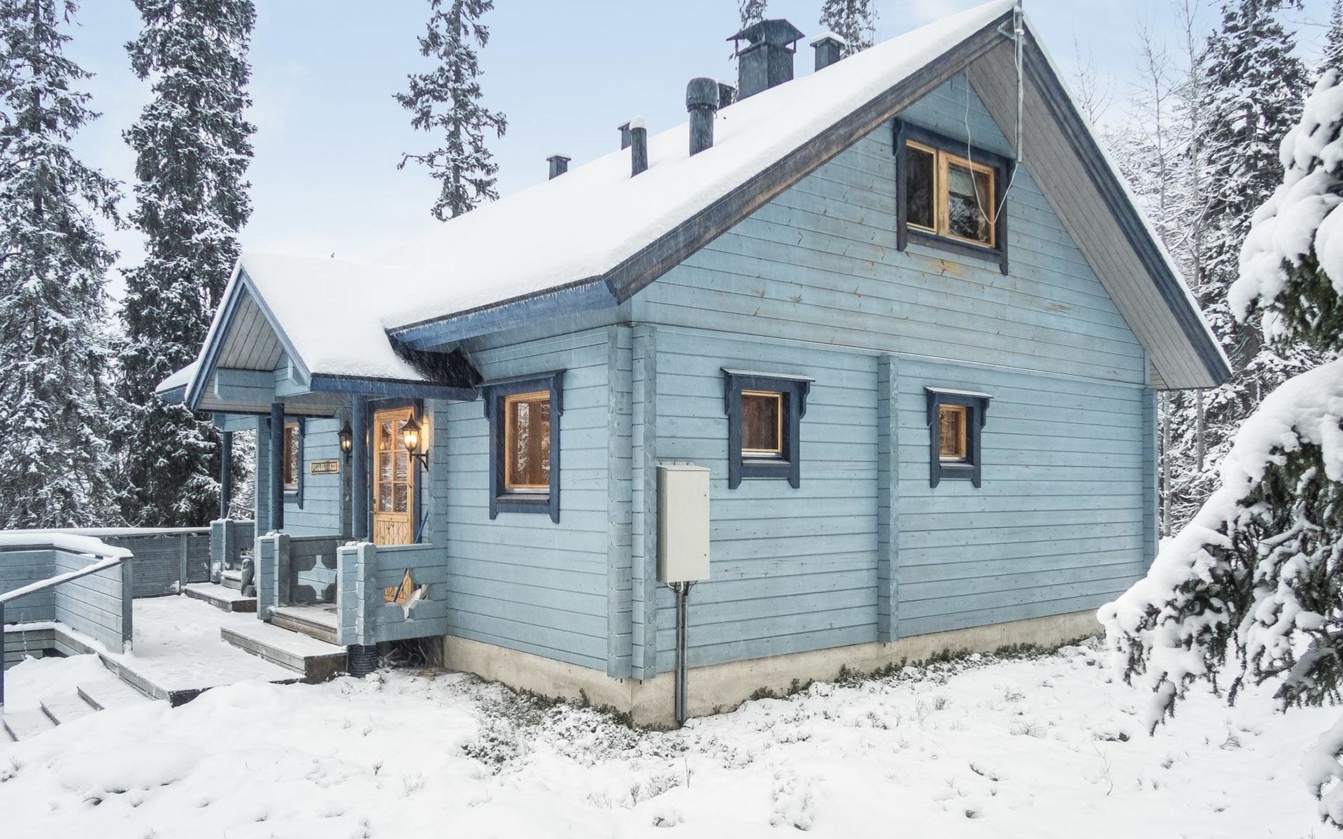 Ruka ski trail network passes right by chalet, nearest Ruka ski lift 8 km, Ruka village 9 km. Karhunkierros (The Bear's Trail) backpacking route 1 km, Kuusamo rapids 10-20 km, Kuusamon Tropiikki spa 30 km. Snowmobile trail 700 m.
