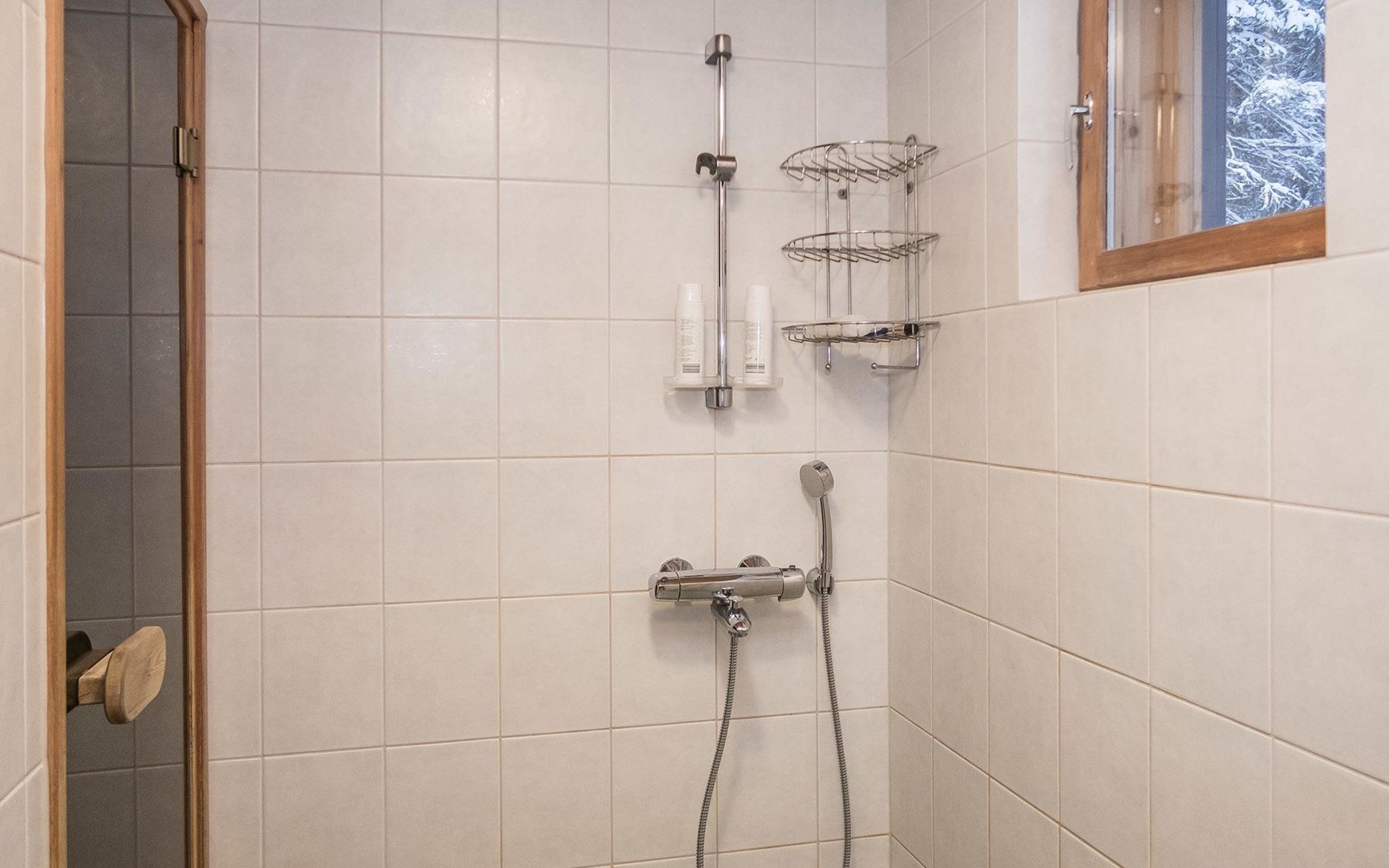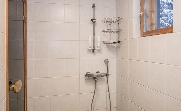 There is an air source heat pump and underfloor heating at the cottage, which owner adjusts according to the client's needs. Chalet in lovely situation, view of fells on opposite shore. Chalet built on slope, steps from car park to chalet.