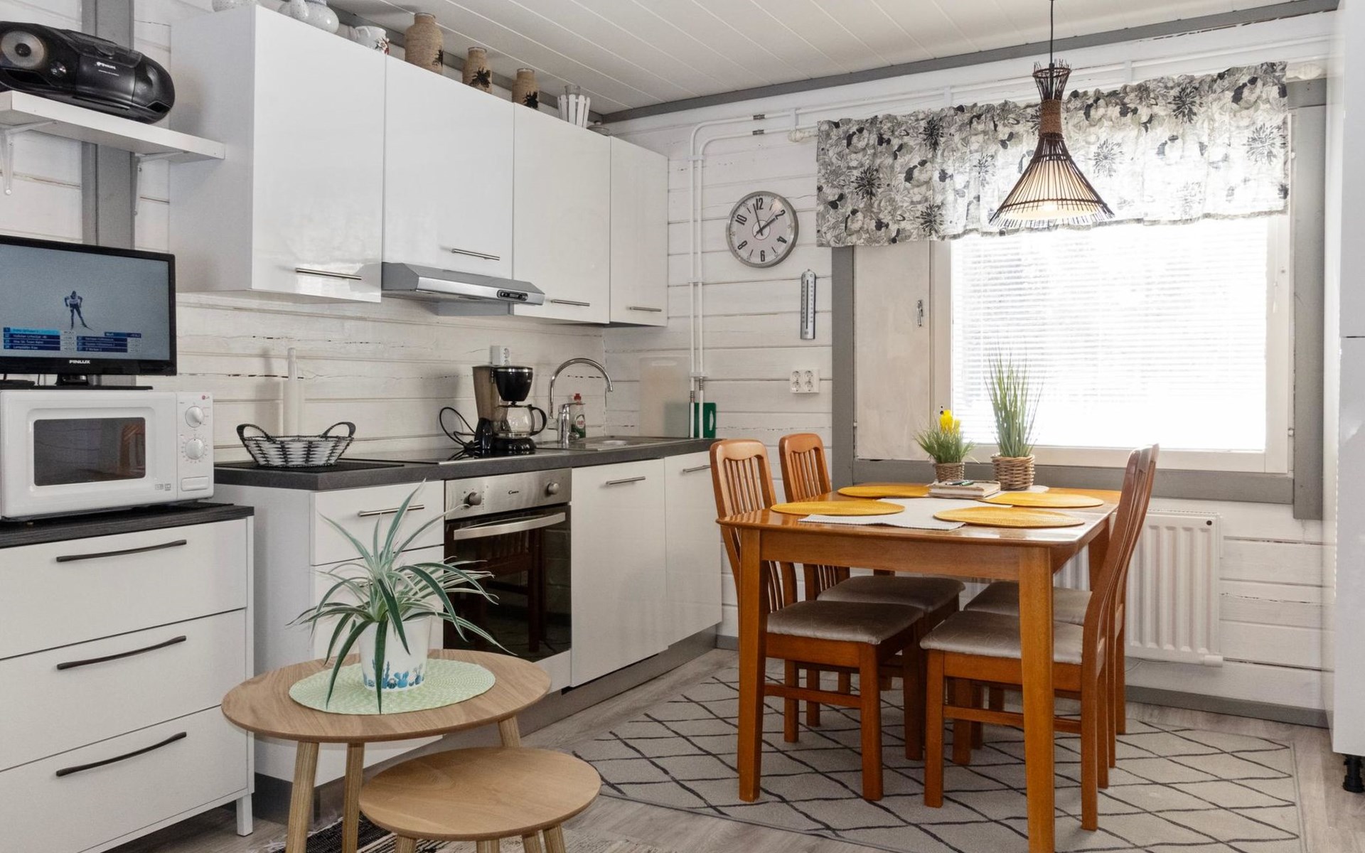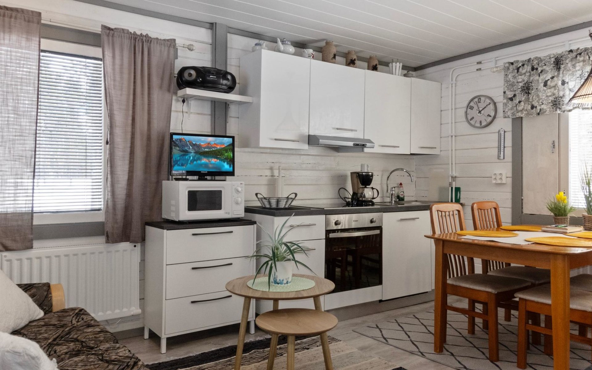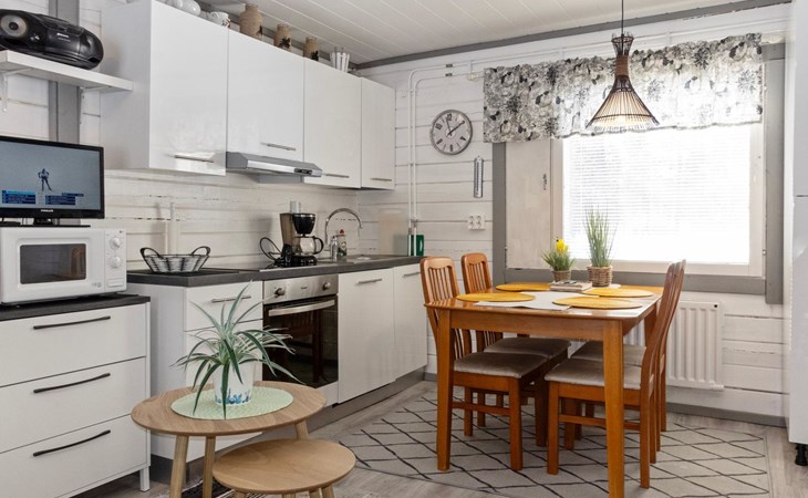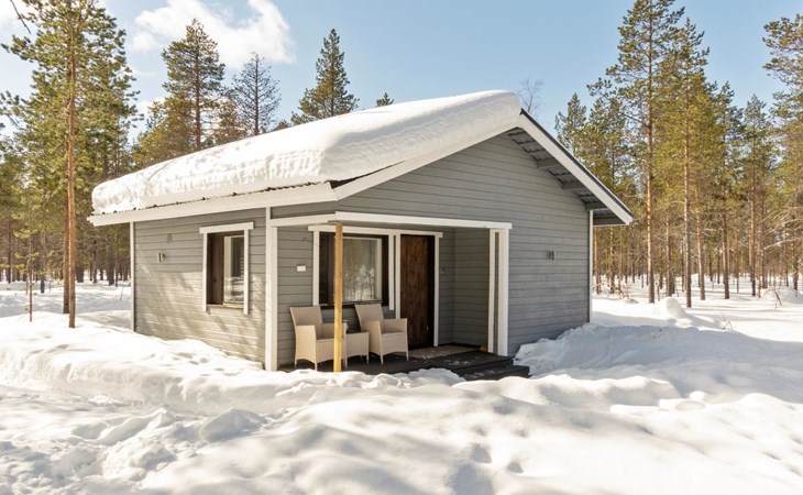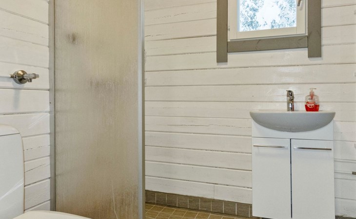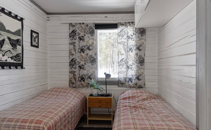 Log cabin, built in 2022. Sofa bed in the kitchen/living room, 2 beds in the alcove (no door, curtain, etc.), sauna, washroom/WC and small covered terrace.