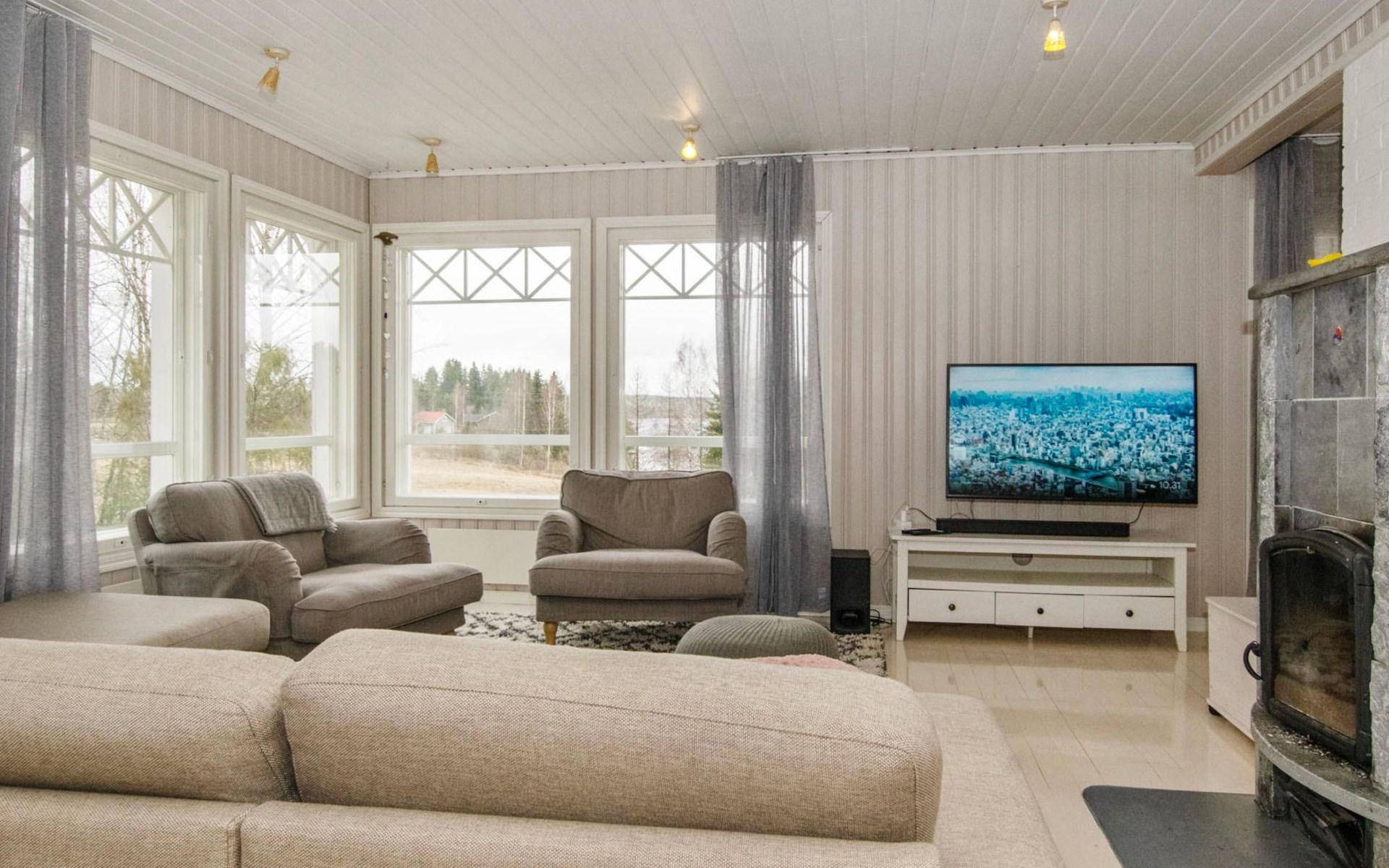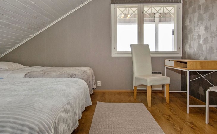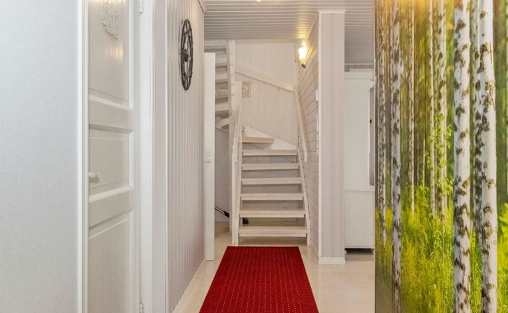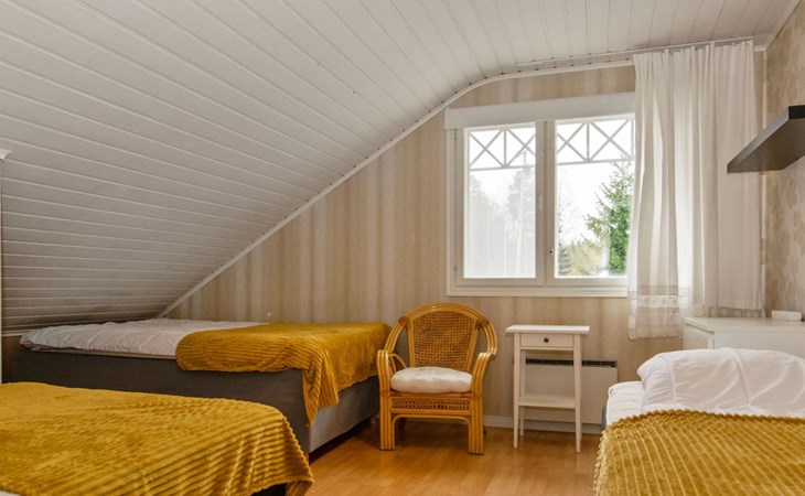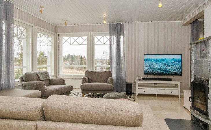 Spacious 220 m² wooden villa (built in 1995). Five bedrooms with 11 beds, all beds are normal beds. Spacious kitchen and dining area, fireplace in the living room, two WCs, instant-ready electric sauna stove in the sauna, laundry room, washing machine, and tumble dryer in the utility room. There are 2 fridges, 2 freezer, 4G Wi-Fi, printer/scanner and electric smoker.