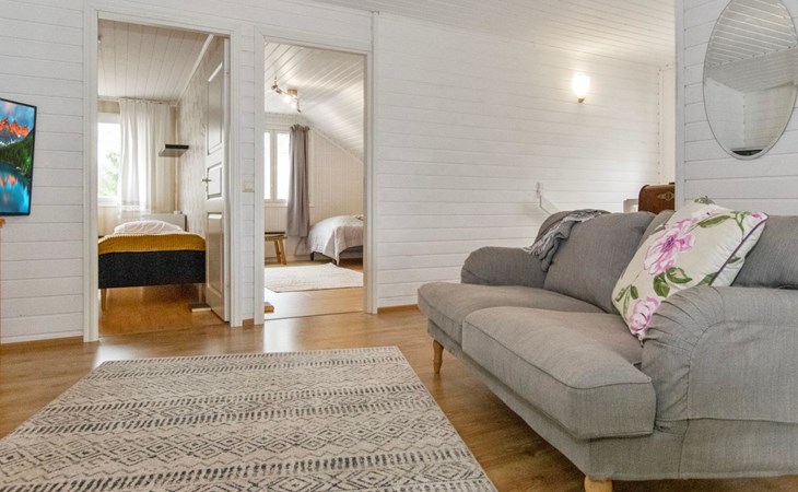The plot, 7000 m², is located completely in its own peace in the middle of a nice traditional landscape. The beach has its own pier and a rowing boat (+ life jackets). In the yard, an old-fashioned yard sauna with a wood-burning sauna stove and running water. The sauna offers nice hot steams. There is access from the sauna to the swimming. From the garden sauna to the beach approx. 50 m.