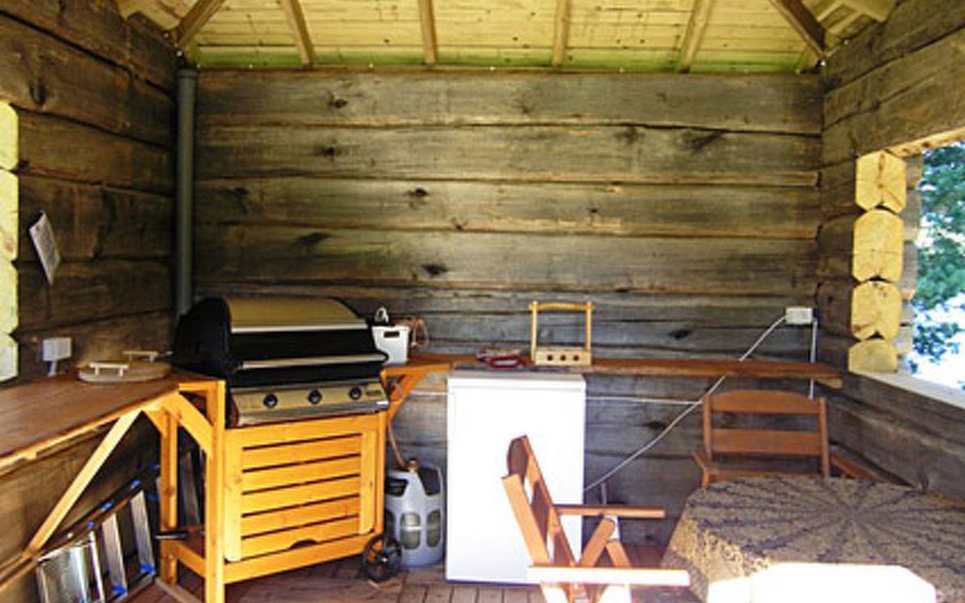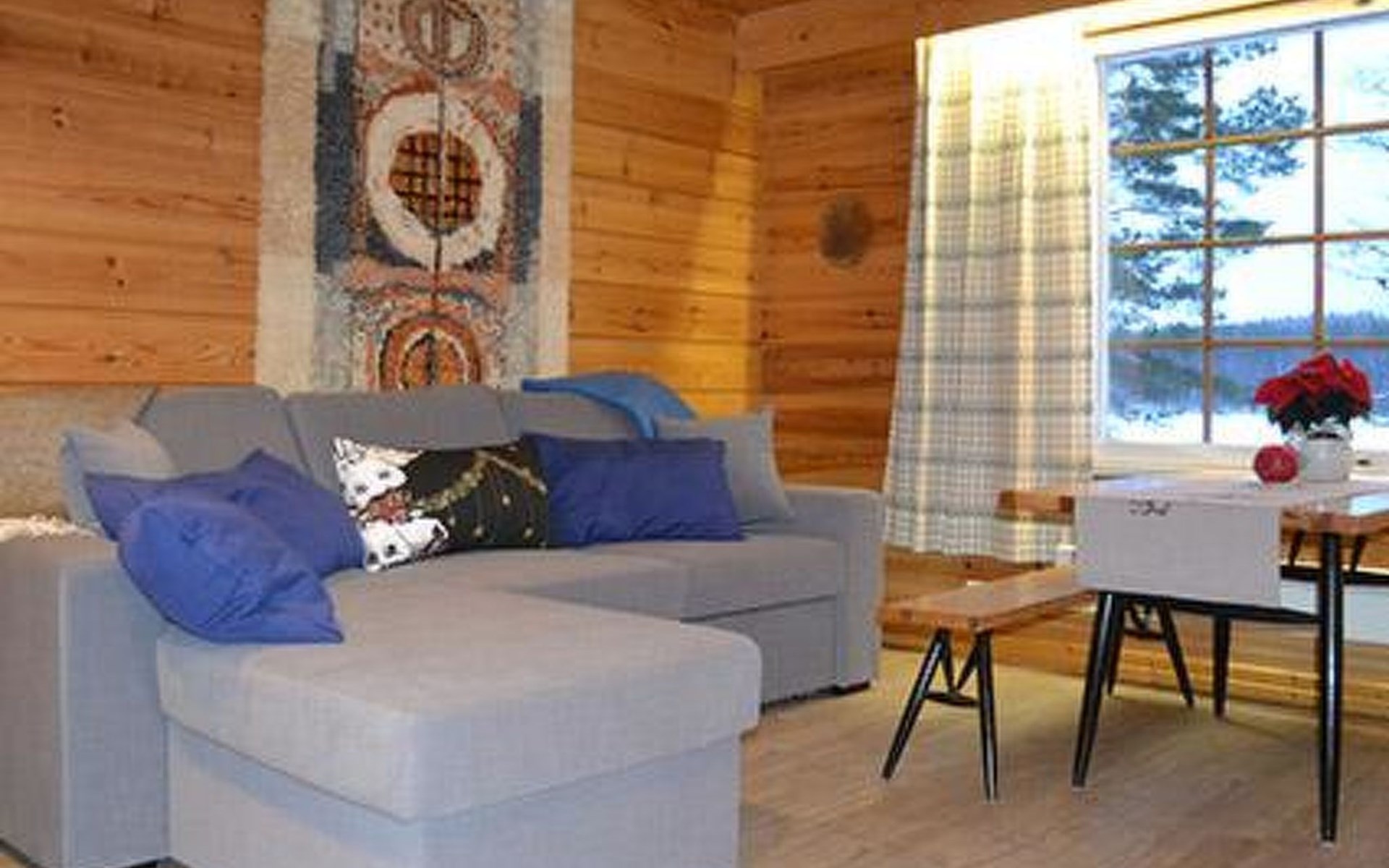 Log house 1929, renovated 2006, living room/kitchen, bedroom with double bed, bedroom with couch for two, dressing room with mattress as an extra bed, sauna, washroom, open veranda.