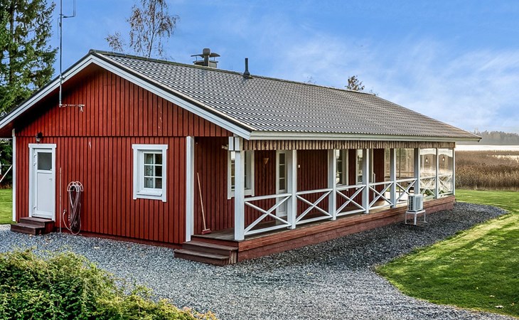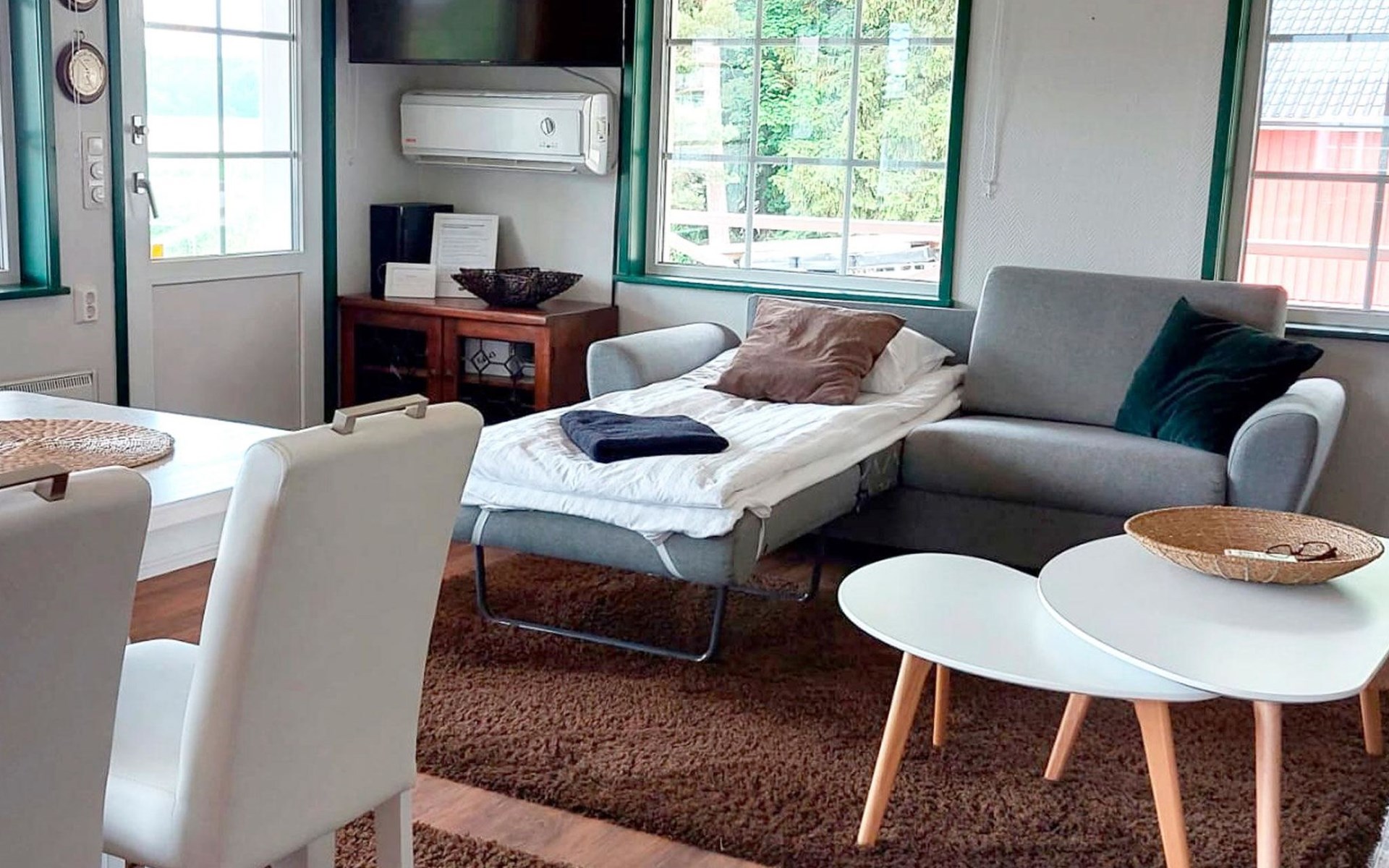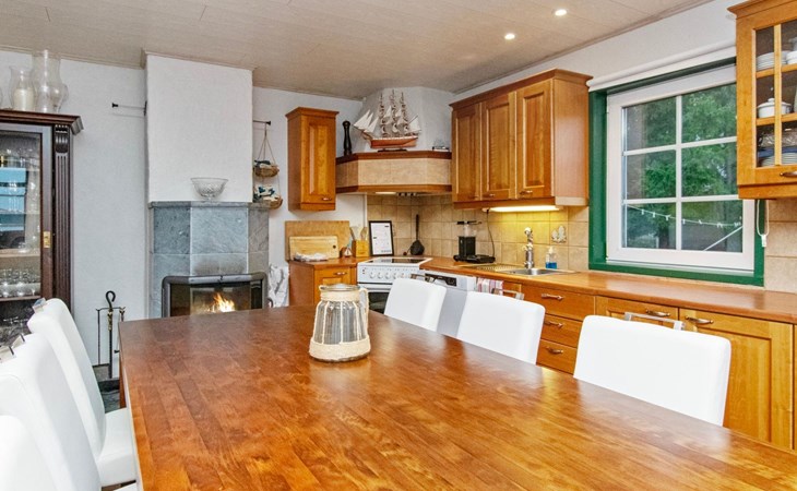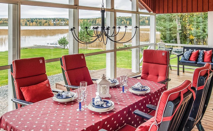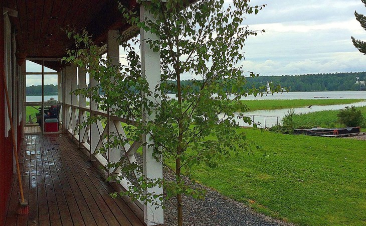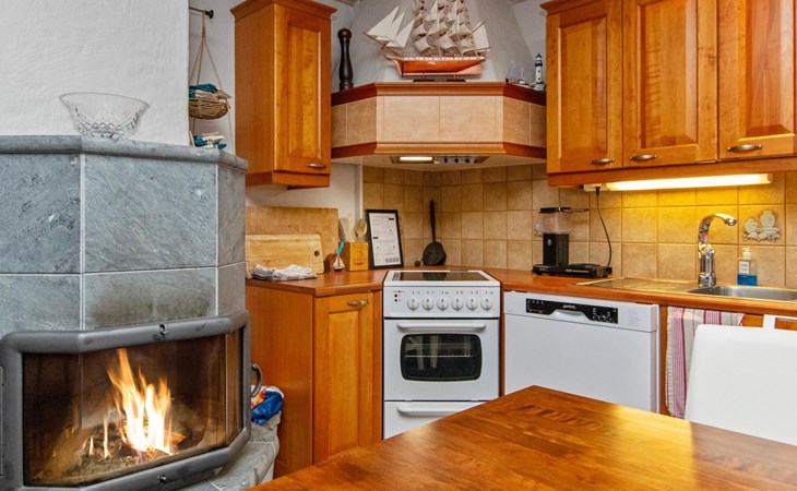 Wooden villa 2000, living room-kitchen (2 sofa beds, spread out 160 cm wide), bedroom with double bed, shower room / WC, sauna (electric stove), hall, glazed terrace (the glass wall facing sea can be completely opened). There is a fireplace on the terrace.