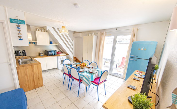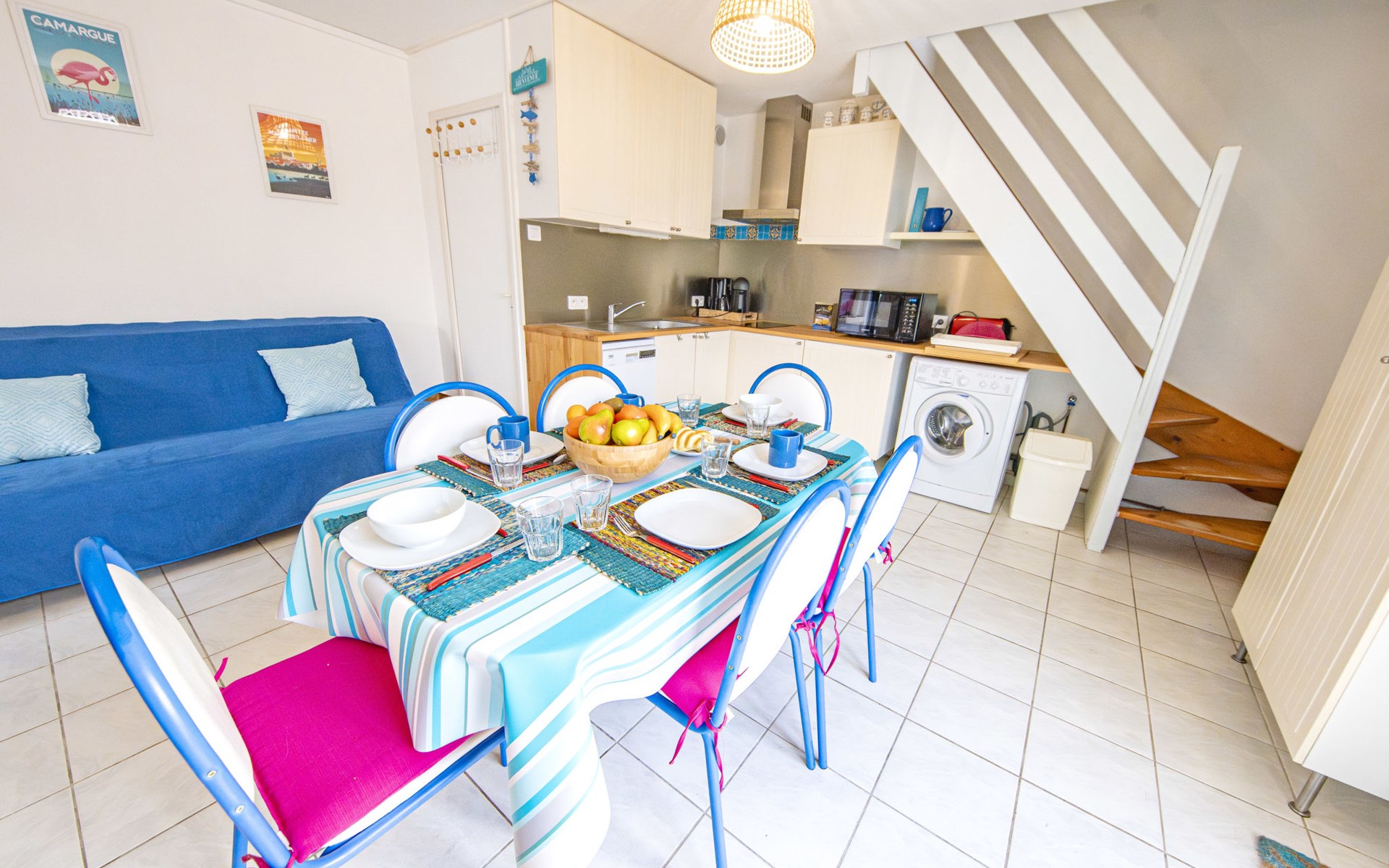 Rijtjeshuis "Le Clos Saint Louis", omgeven door weiden. Aan de rand van de plaats, 1.6 km van het centrum van Aigues-Mortes, 7 km van zee, 8 km van het strand. Winkel 750 m, supermarkt 2.4 km, restaurant 450 m, centrum te voet bereikbaar in 10 minuten, bushalte "Arrêt Tour de Constance" 1.5 km, station "Aigues-Mortes" 1.4 km, zandstrand "l'Espiguette" 12 km, openluchtzwembad 8.9 km, thermaalbad "Les bains de Camargue" 13 km. Jachthaven 11.5 km, golfterrein (42 holes) 9.5 km, surfschool 1 km, tennis 1 km. Attracties in de buurt: Seaquarium 9.5 km, Babyland 9.6 km, Arènes du Grau du Roi 7.8 km, Nîmes 37.5 km, Montpellier 32.5 km. Auto noodzakelijk. Het objekt is geschikt voor 4 volwassenen + 2 kinderen.