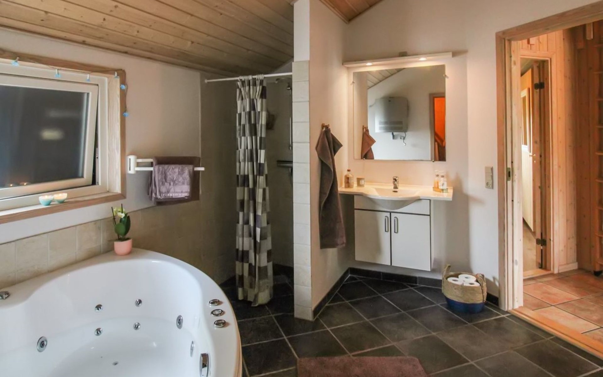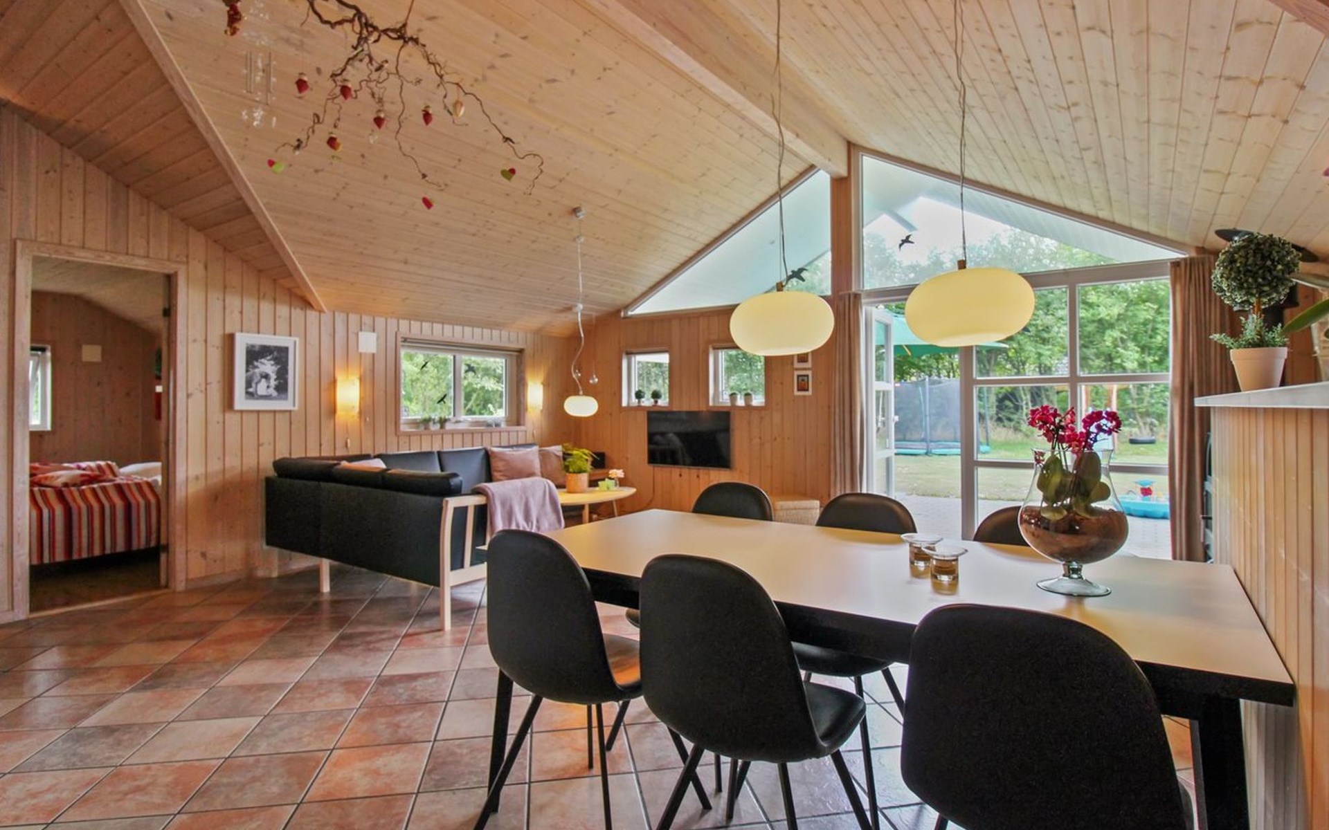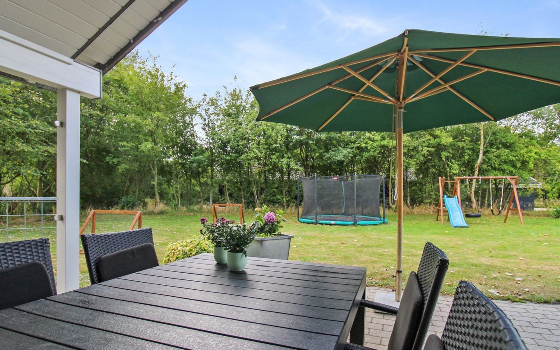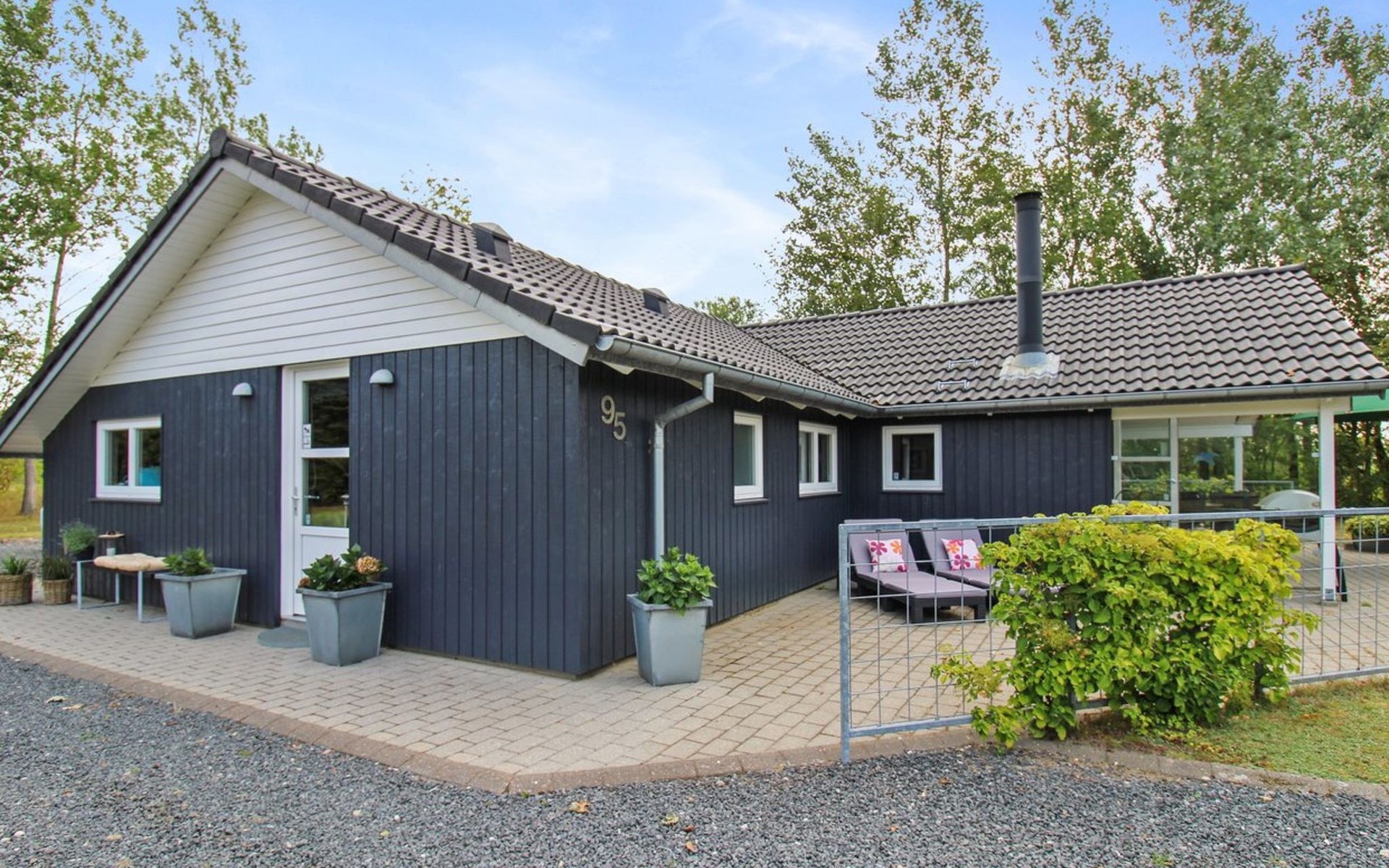 Eengezinswoning, bouwjaar 2006. 12 km van zee. Voor alleengebruik: wild terrein 1.580 m2. Terras (80 m2), barbecue, kinderspeelplaats (glijbaan, schommel). In het huis: sauna, trampoline, wasmachine, droger. Parkeerplaats bij het huis. Oplaadstation. Levensmiddelenwinkel 700 m. De eigenaar accepteert geen jeugdgroepen.
