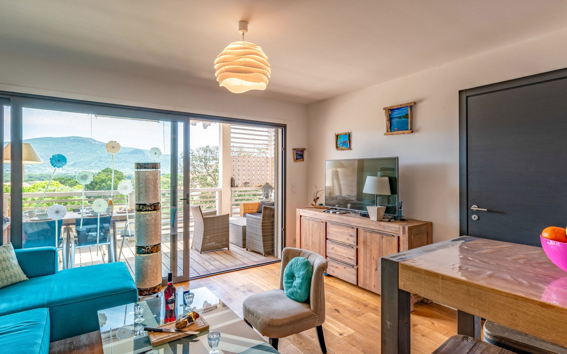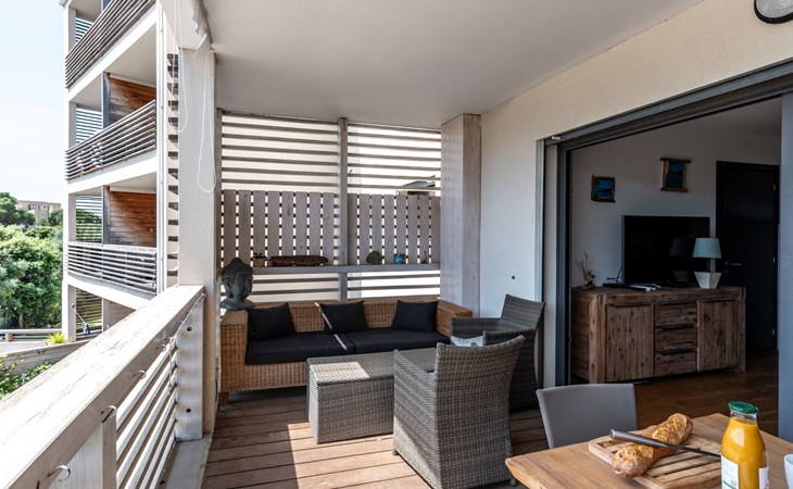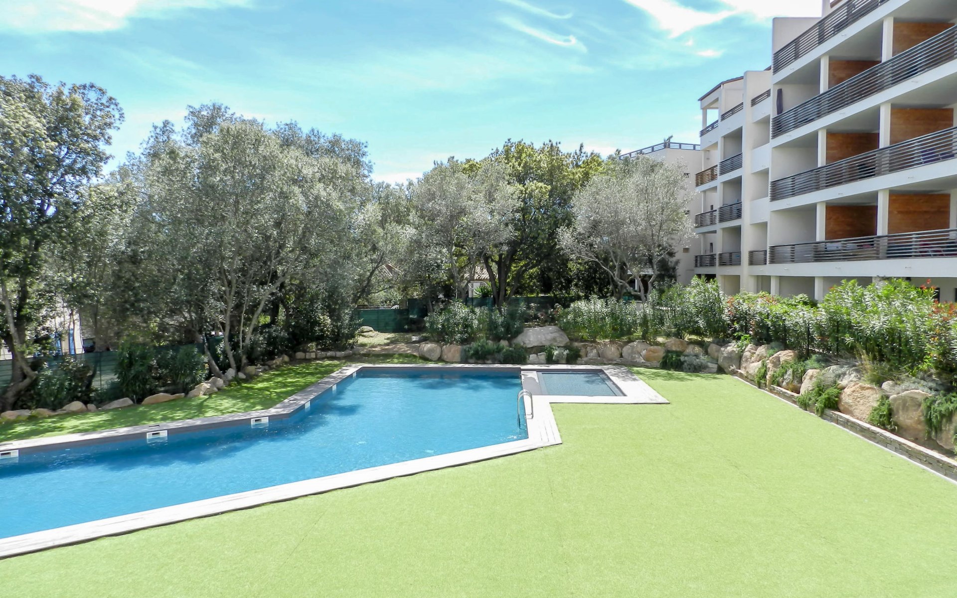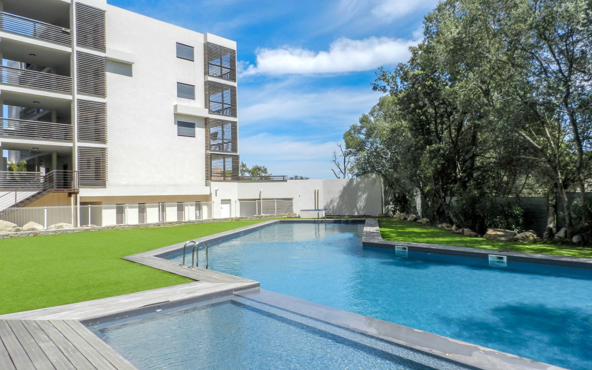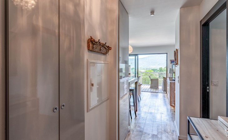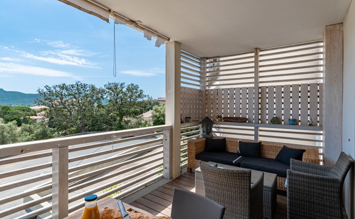 Moderne residentie "Résidence Cita di Sali". In de wijk Vignola, aan de rand van de plaats, centrale ligging, 500 m van zee, 8 km van het strand. Voor medegebruik: openluchtzwembad (16 x 5 m, 140 cm diepte, seizoensgebonden beschikbaarheid: 15.Mei. - 30.Sep.). Onderhoud zwembad door de eigenaar/tuinman. Toegangsweg tot 20 m voor aan het huis. Parkeerplaats (beperkt aantal) bij het huis. Winkel, levensmiddelenwinkel 100 m, supermarkt 2 km, restaurant 100 m, bushalte 80 m, zandstrand "Santa Giulia" 8 km. Jachthaven 200 m, golfterrein (18 holes) 6 km, manege 3 km. Attracties in de buurt: Figari 22 km, Bonifacio 25 km, Solenzara 40 km, Iles Lavezzi. Auto noodzakelijk. Gesloten residentie met een elektrische deur.