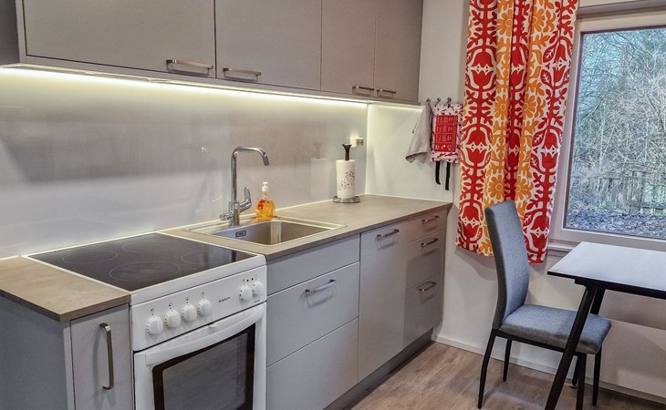 13 km to the east of Kirkkonummi, so-called dry land cabin (public beaches 5.5 - 12 km away). Wooden apartment, built in 1980, renovated in 2023-2024.