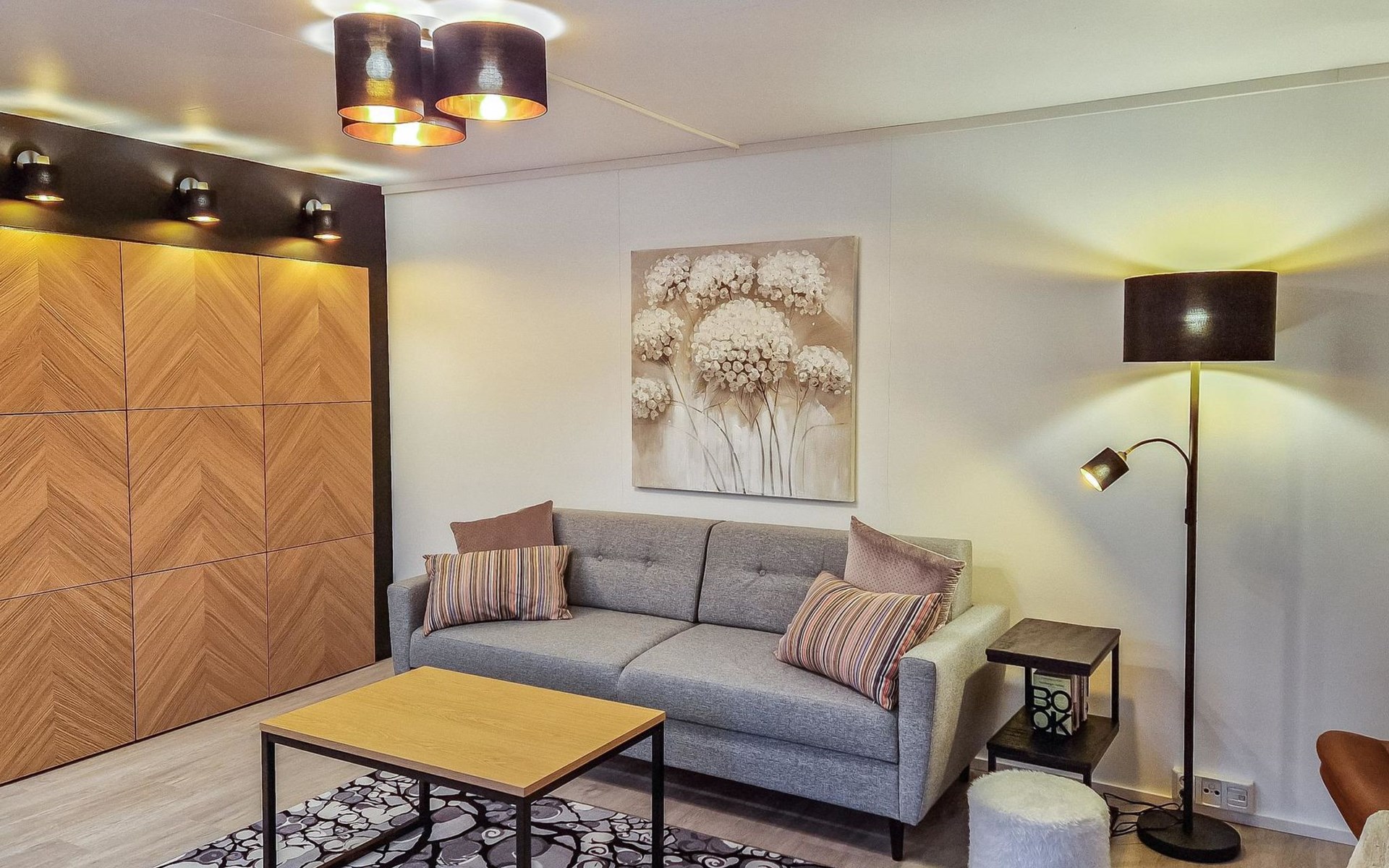 There is a sofa bed for two in the living room.