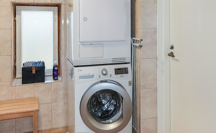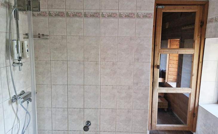 Wood-heated sauna, one shower in the bathroom. In connection with the bathroom, there is a washing machine and a tumble dryer.