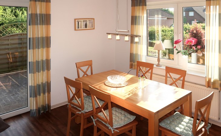 Twee onder één kap woning "Wilken". 500 m van het centrum van Ditzumverlaat, 9 km van het centrum van Ditzum, 3.5 km van zee, aan een doodlopende weg. Voor medegebruik: terrein 400 m2 met gazon. In het huis: bergruimte voor fietsen, centrale verwarming. Parkeerplaats (voor 4 auto's) bij het huis. Winkel 500 m, supermarkt 9 km, bushalte "Bunderhammrich 15 - Bunde" 120 m, treinstation "Leer" 19 km, veerboot "Ditzum" 9 km, zandstrand "Norddeich" 85 km, openluchtzwembad 16 km. Dollart 3.5 km.
