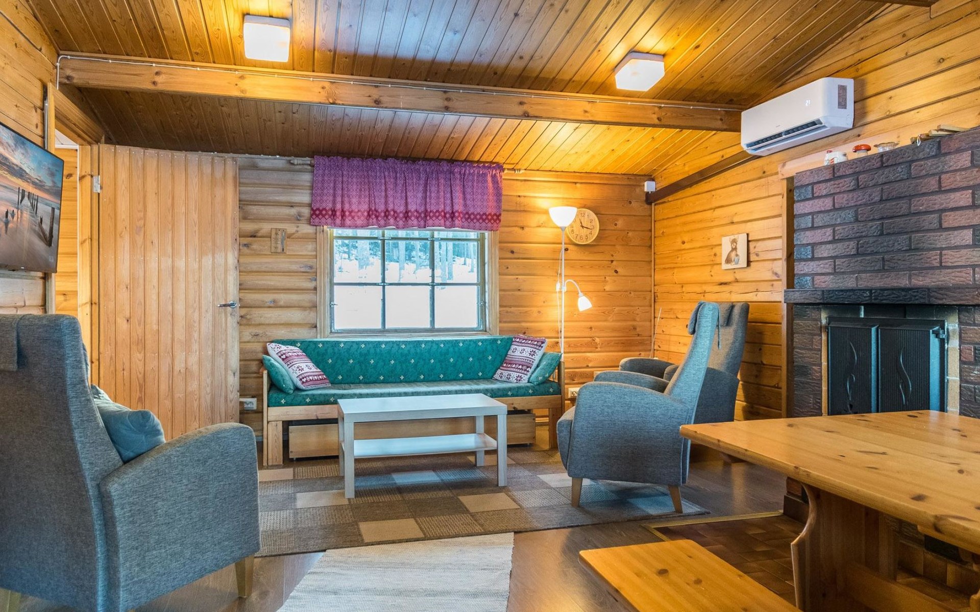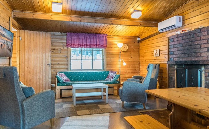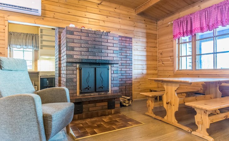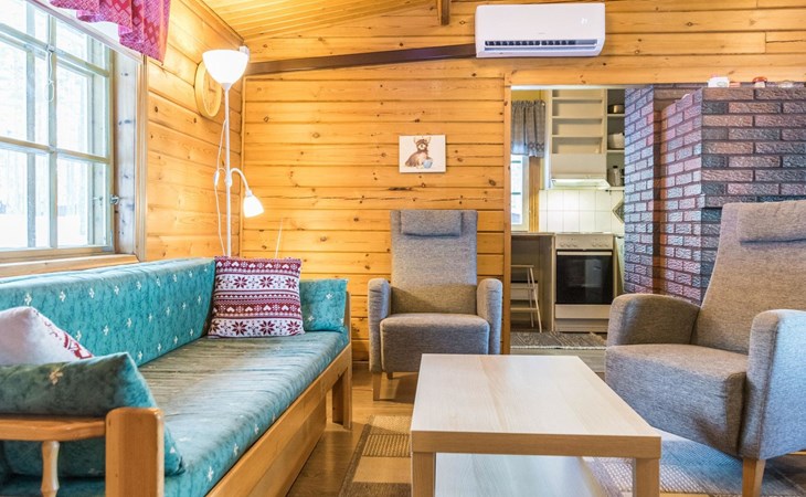 Air source heat pump for additional heating and cooling. Rimpilän lomamökit