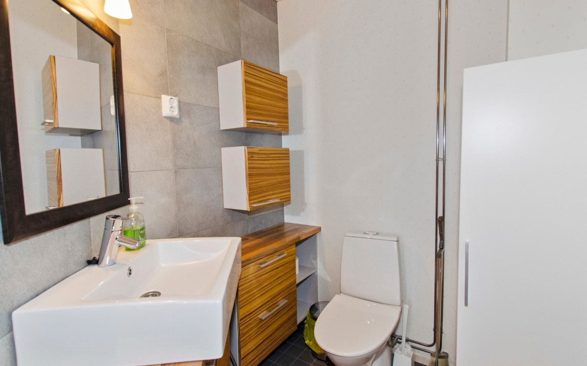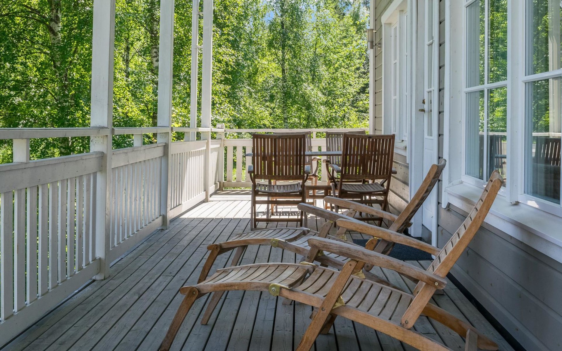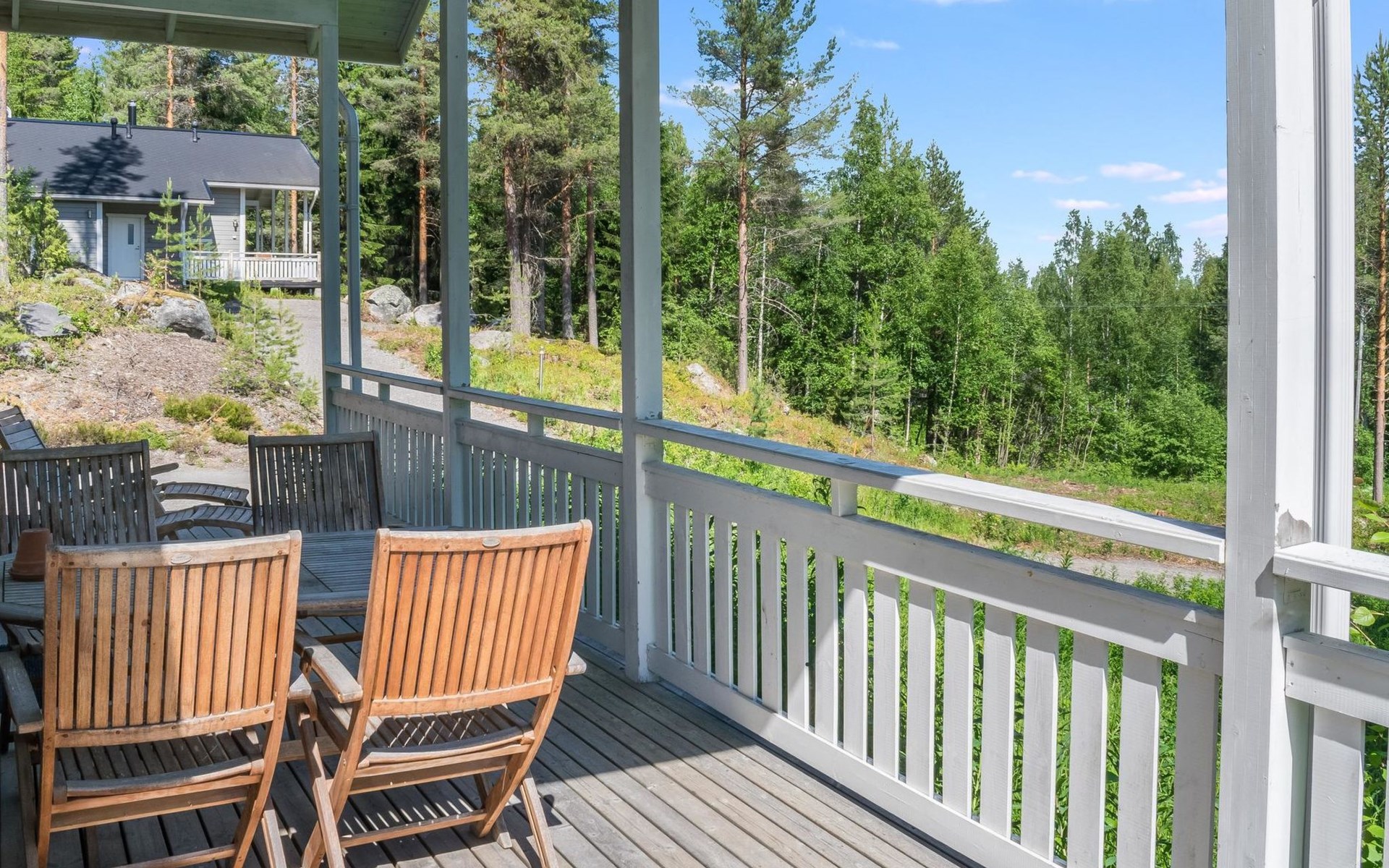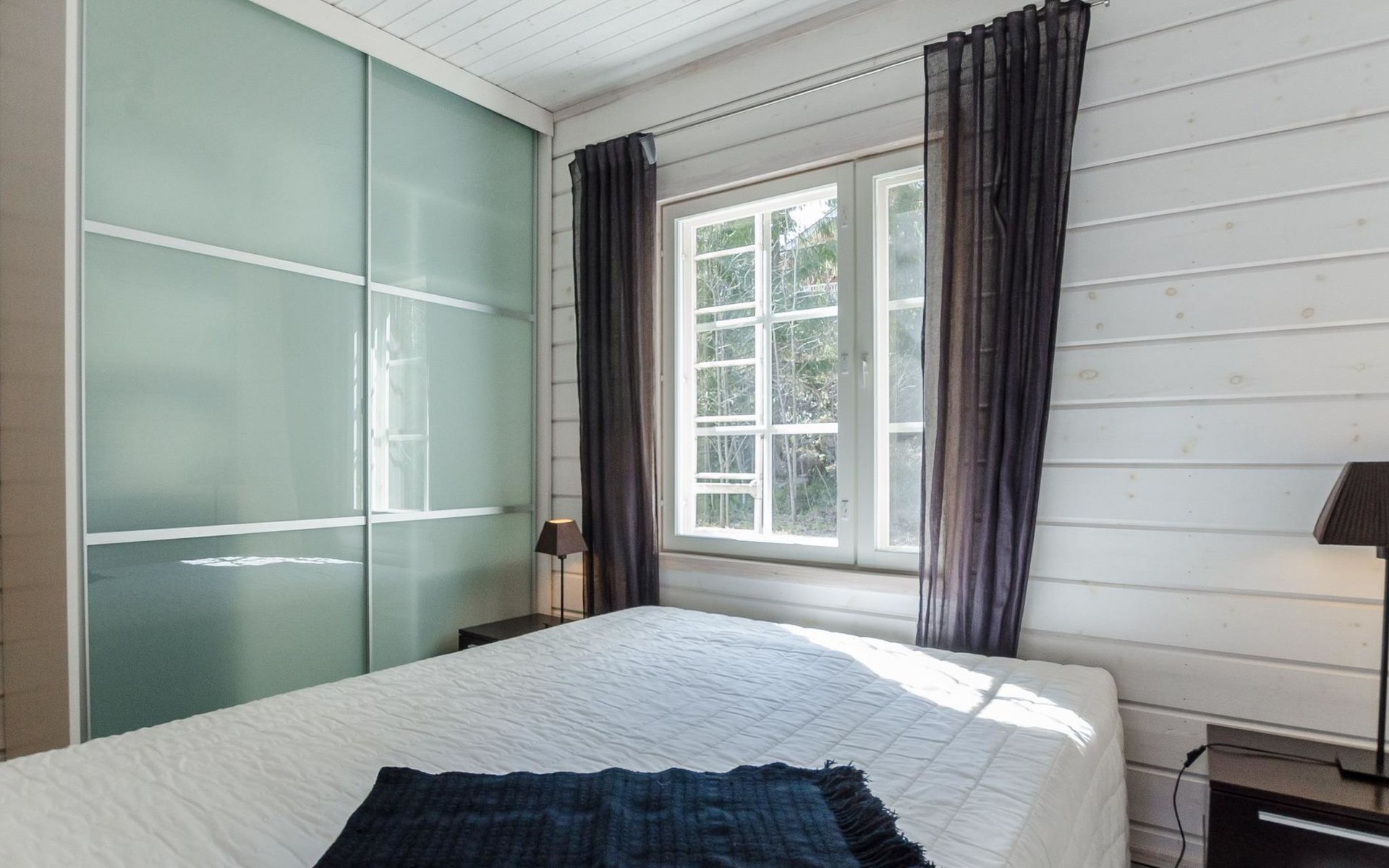 Wood cottage 2008, kitchen-living room, 1 bed room down stairs with double bed and one bed room upstairs with 2 beds, sleeping gallery with sofa bed, washroom, sauna (elec. stove), terrace.