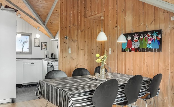 Eengezinswoning, bouwjaar 1993. 1 km van zee. Voor alleengebruik: wild terrein 1.864 m2. Terras (140 m2), kinderspeelplaats (schommel). In het huis: sauna, wasmachine. Parkeerplaats bij het huis. Levensmiddelenwinkel 3 km. De eigenaar accepteert geen jeugdgroepen.