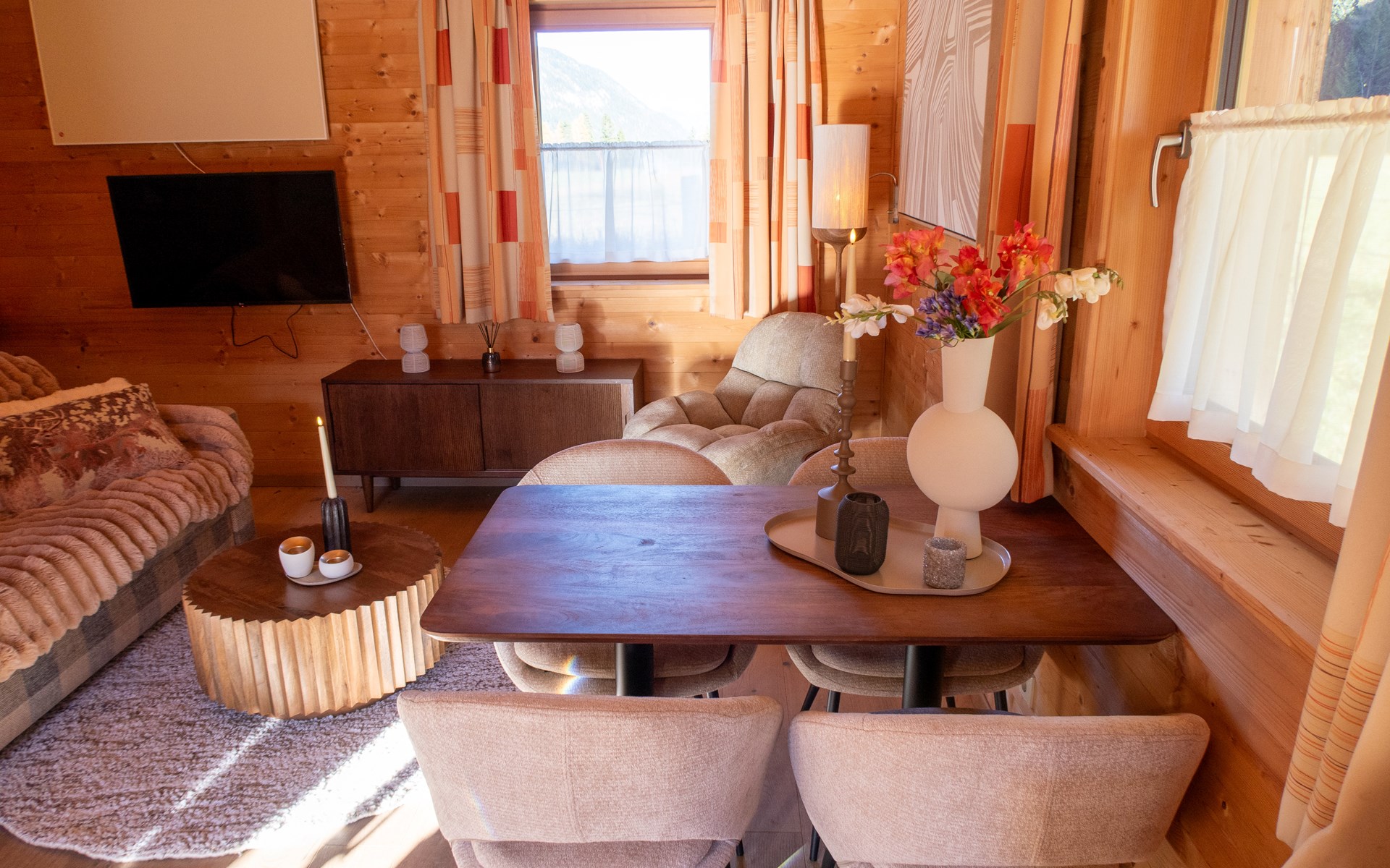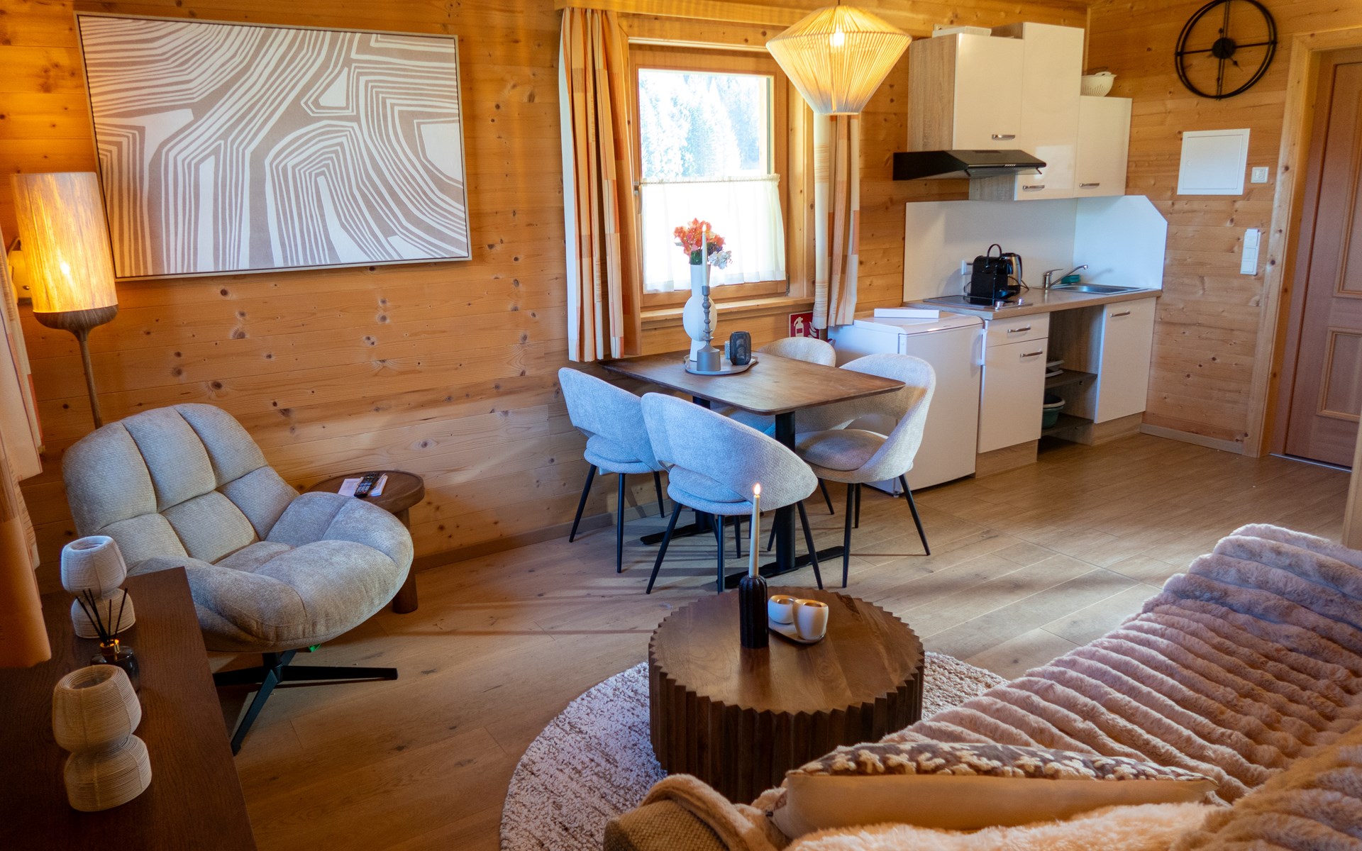 Binnen zorgen de warme houtlook en authentieke details direct voor een knus vakantiegevoel. In de winter verblijf je in een bijna sprookjesachtige sfeer, terwijl buiten de sneeuw het landschap betovert. Vanuit de woonkamer én vanaf het terras geniet je van een panoramisch uitzicht op de omliggende bergen, elk seizoen opnieuw een plaatje.