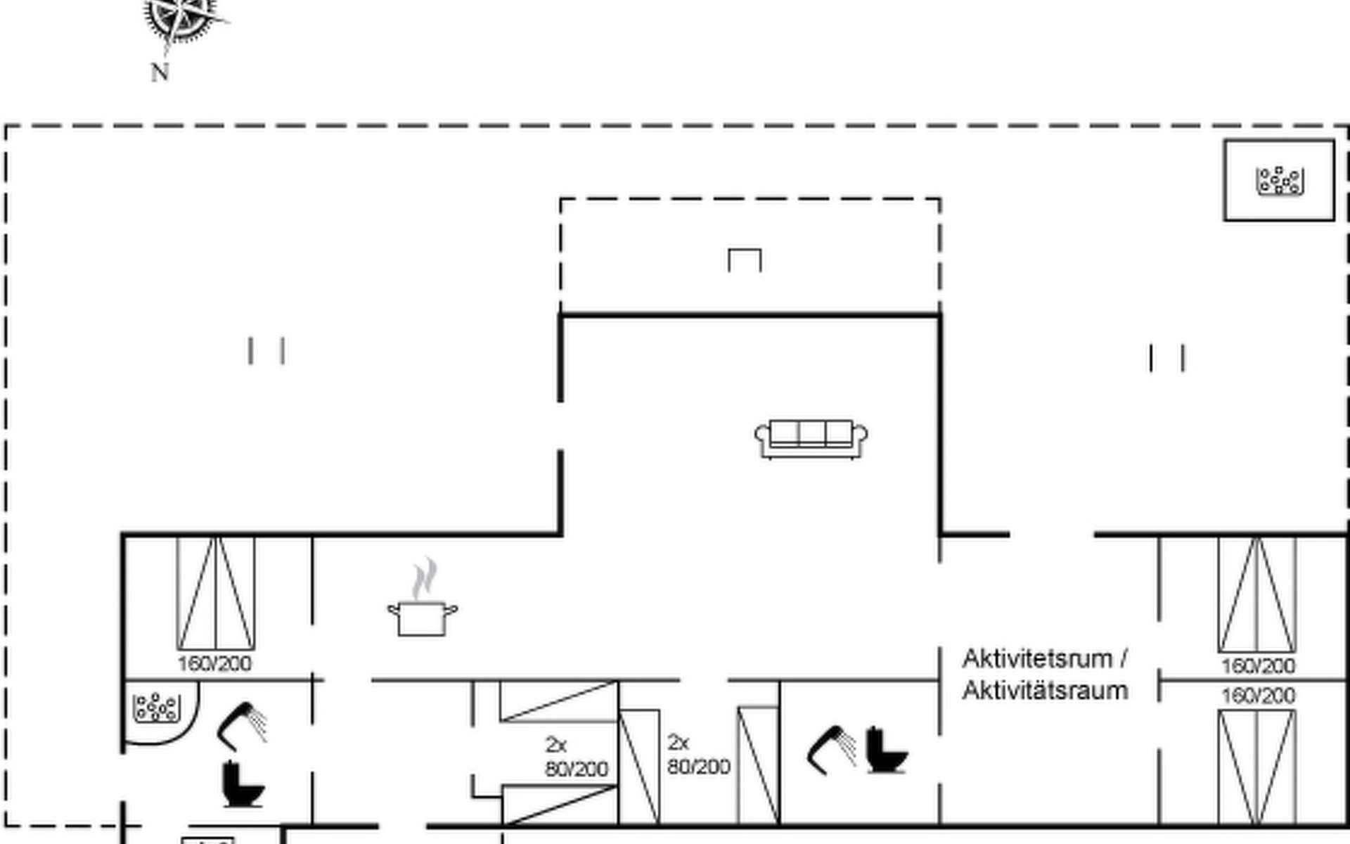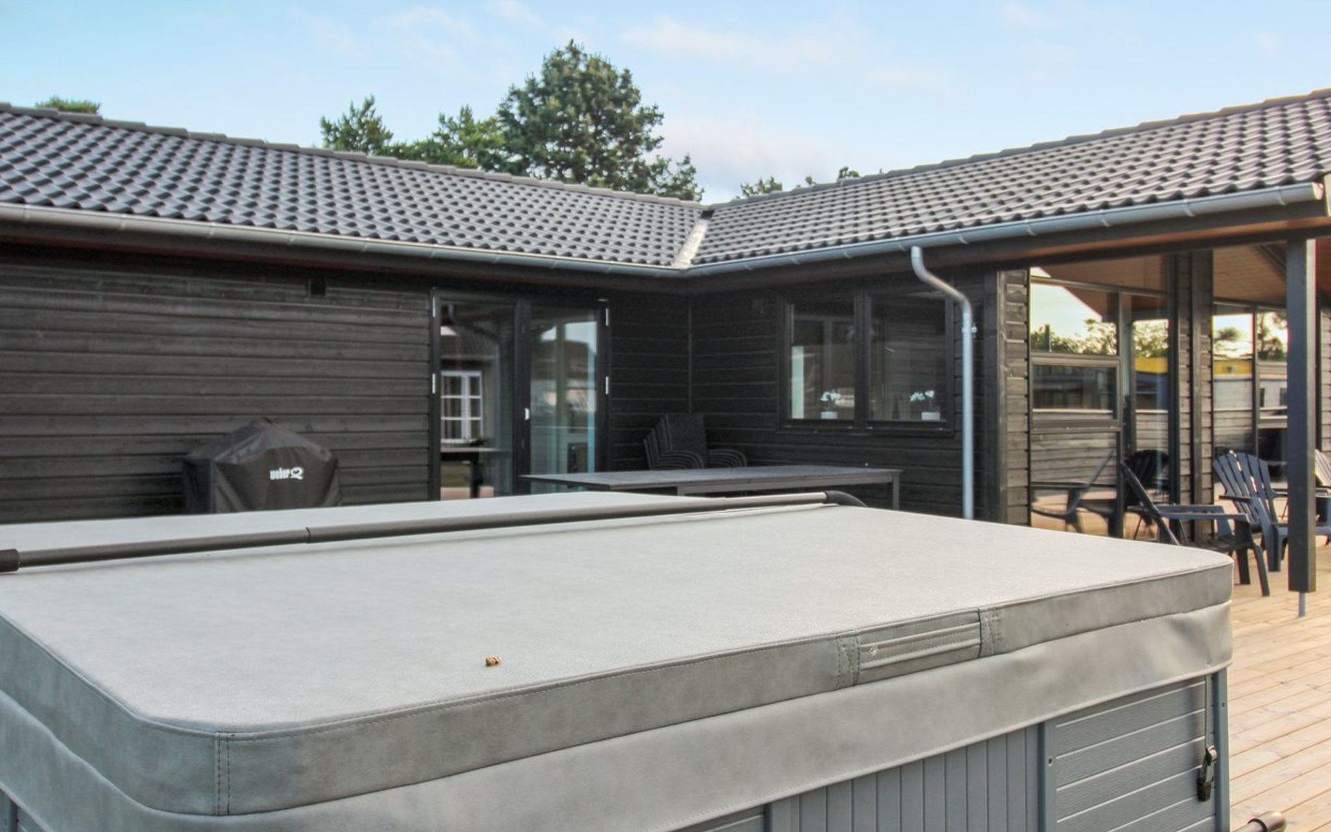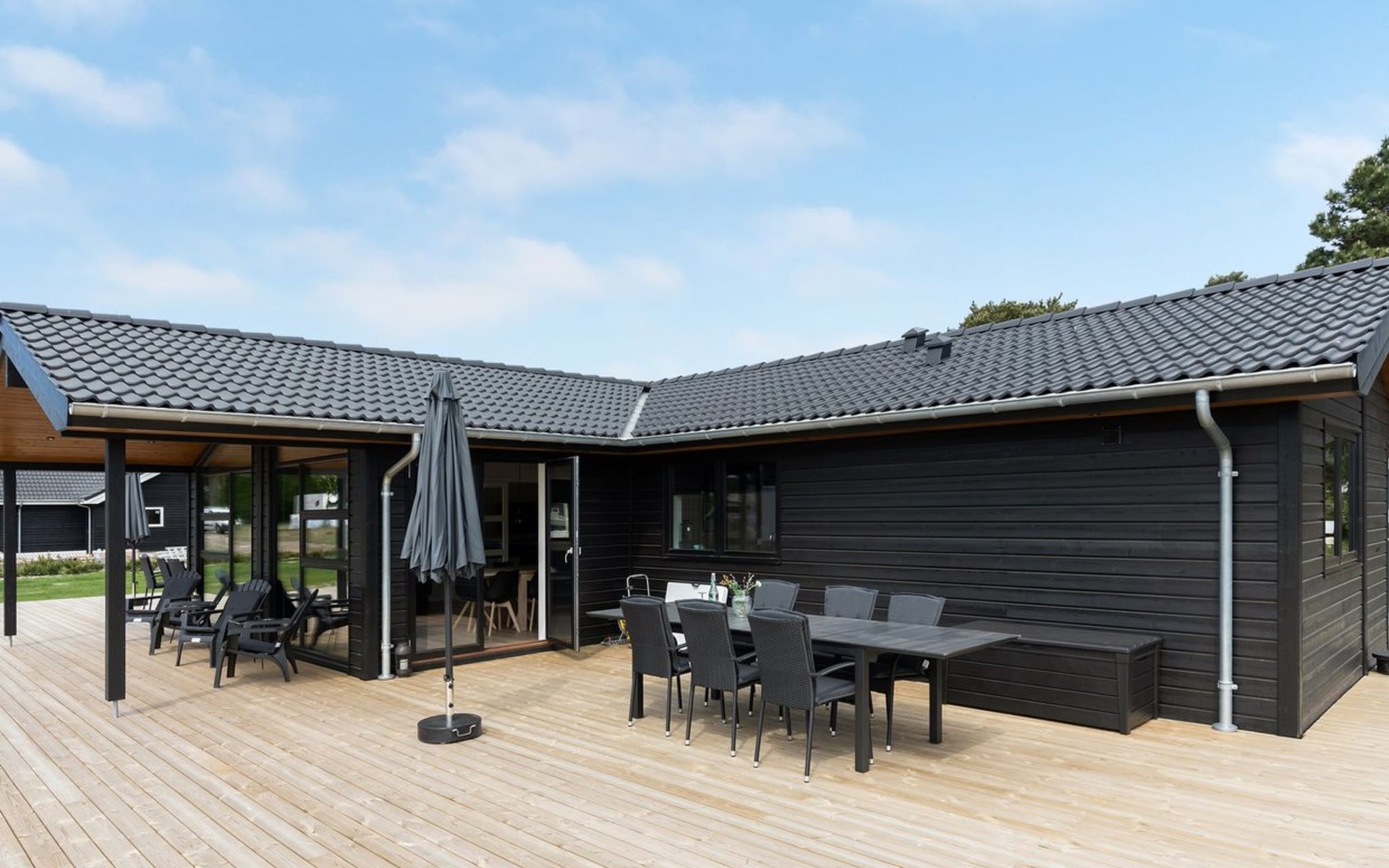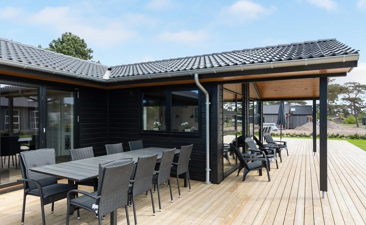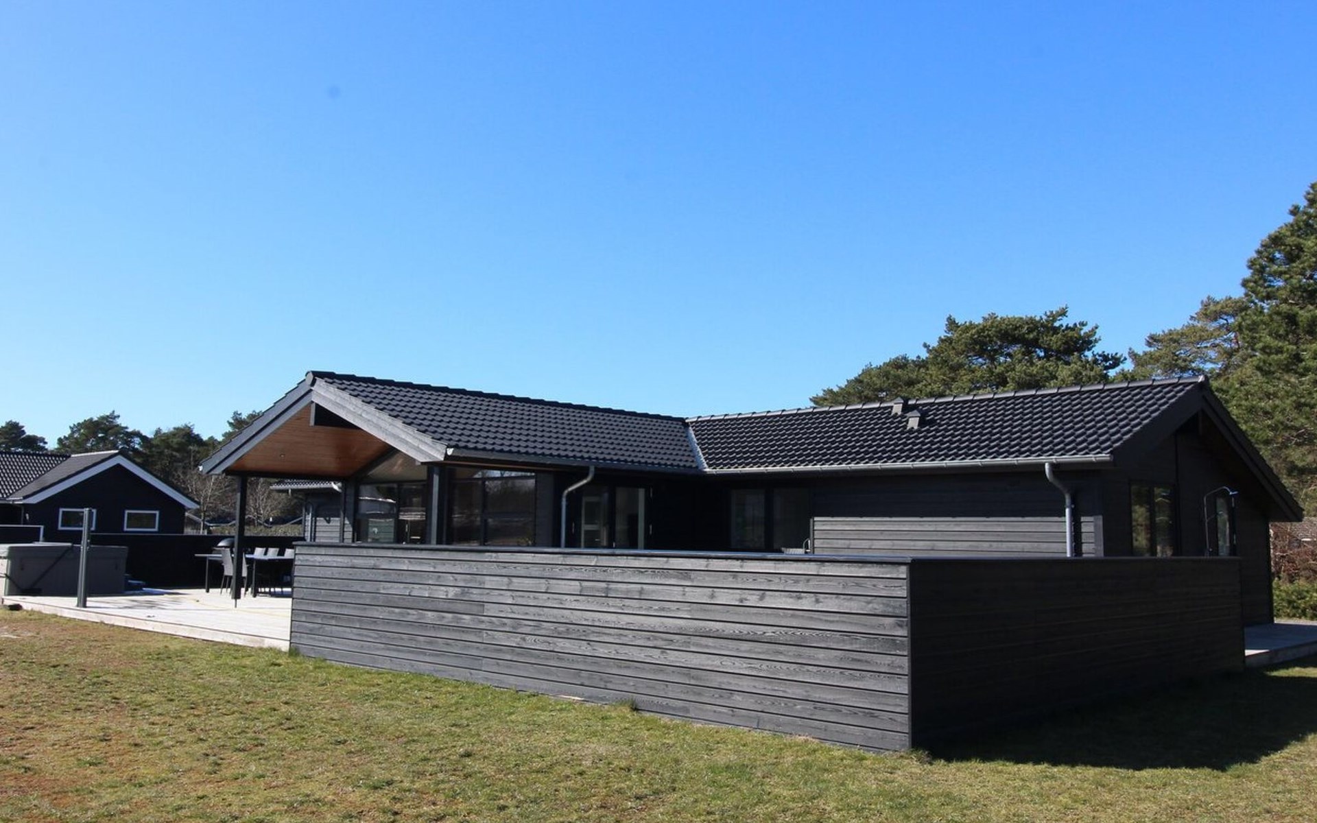 Eengezinswoning, bouwjaar 2020. 175 m van zee. Voor alleengebruik: wild terrein 1.200 m2. Buitendouche, terras (125 m2), barbecue, kinderspeelplaats (schommel). In het huis: sauna, wasmachine, droger. Parkeerplaats bij het huis. Levensmiddelenwinkel 1.5 km. Golfterrein 7 km. De eigenaar accepteert geen jeugdgroepen.