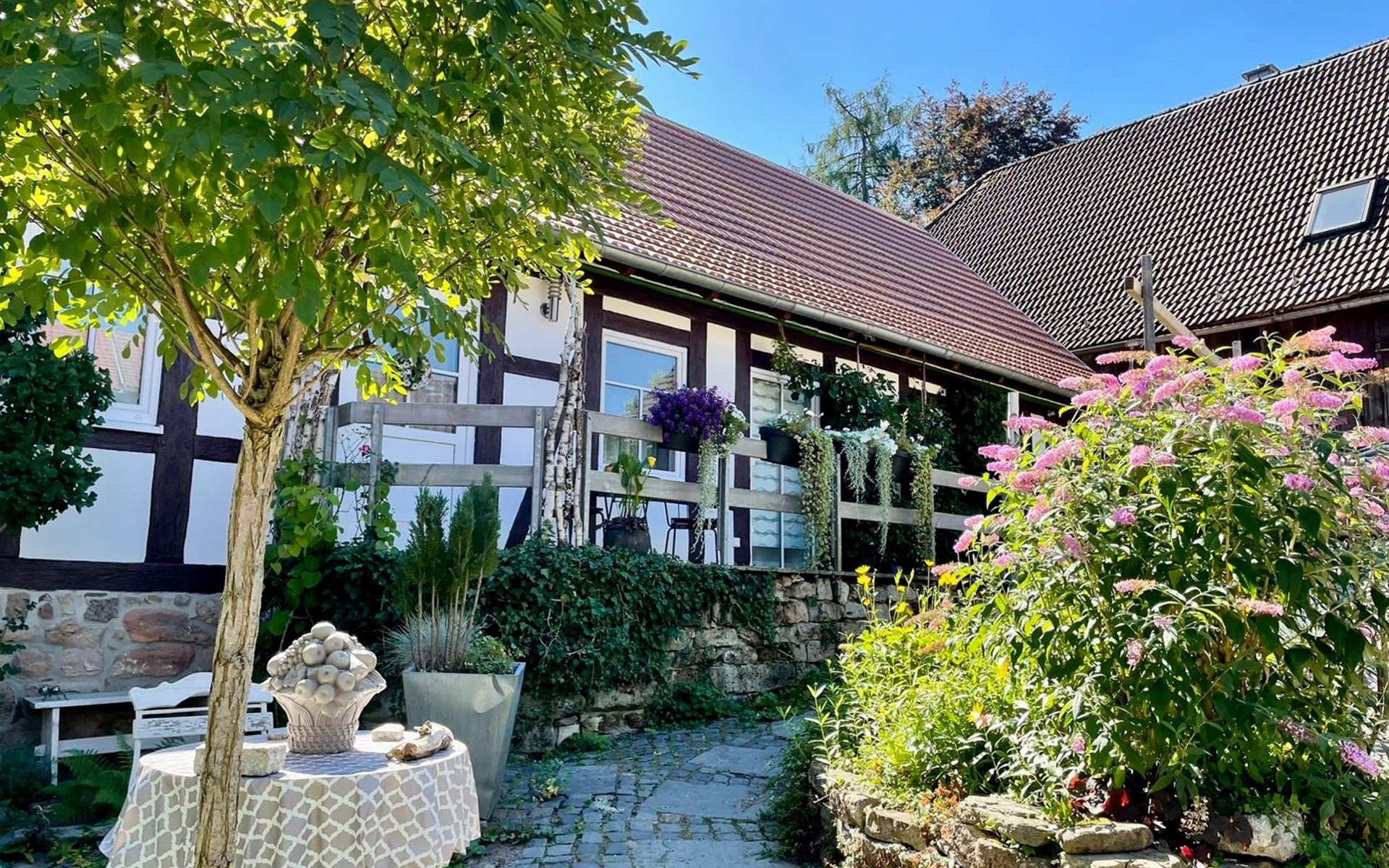 Gezellige, eenvoudige eengezinswoning "Bärbel". 500 m van het centrum van Suhl. Voor medegebruik: wild terrein, tuin. Supermarkt 500 m, restaurant, bushalte 200 m, treinstation "Suhl" 1 km, openluchtzwembad 5 km, overdekt zwembad 1 km. Tennis 100 m, skilift 16 km, skischool 16 km, langlaufloipe 16 km, kinderspeelplaats 250 m. Bekende skigebieden kunnen gemakkelijk worden bereikt: Oberhof 16 km, Goldlauter 7 km.