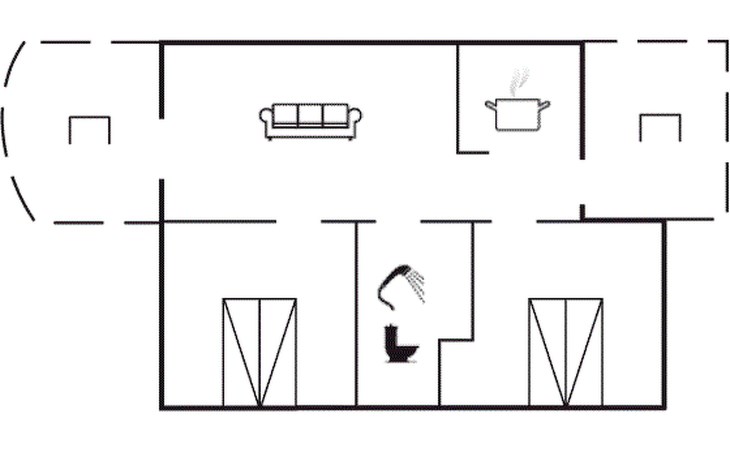 Vakantiedorp, bouwjaar 1990. 100 m van zee. Voor medegebruik: wild terrein. Levensmiddelenwinkel 2 km. De eigenaar accepteert geen jeugdgroepen.