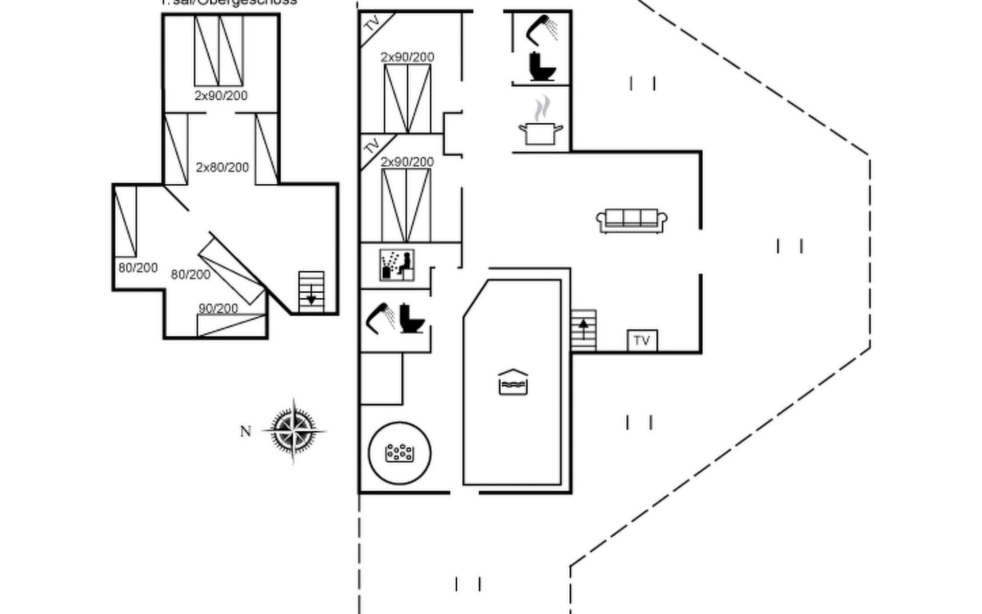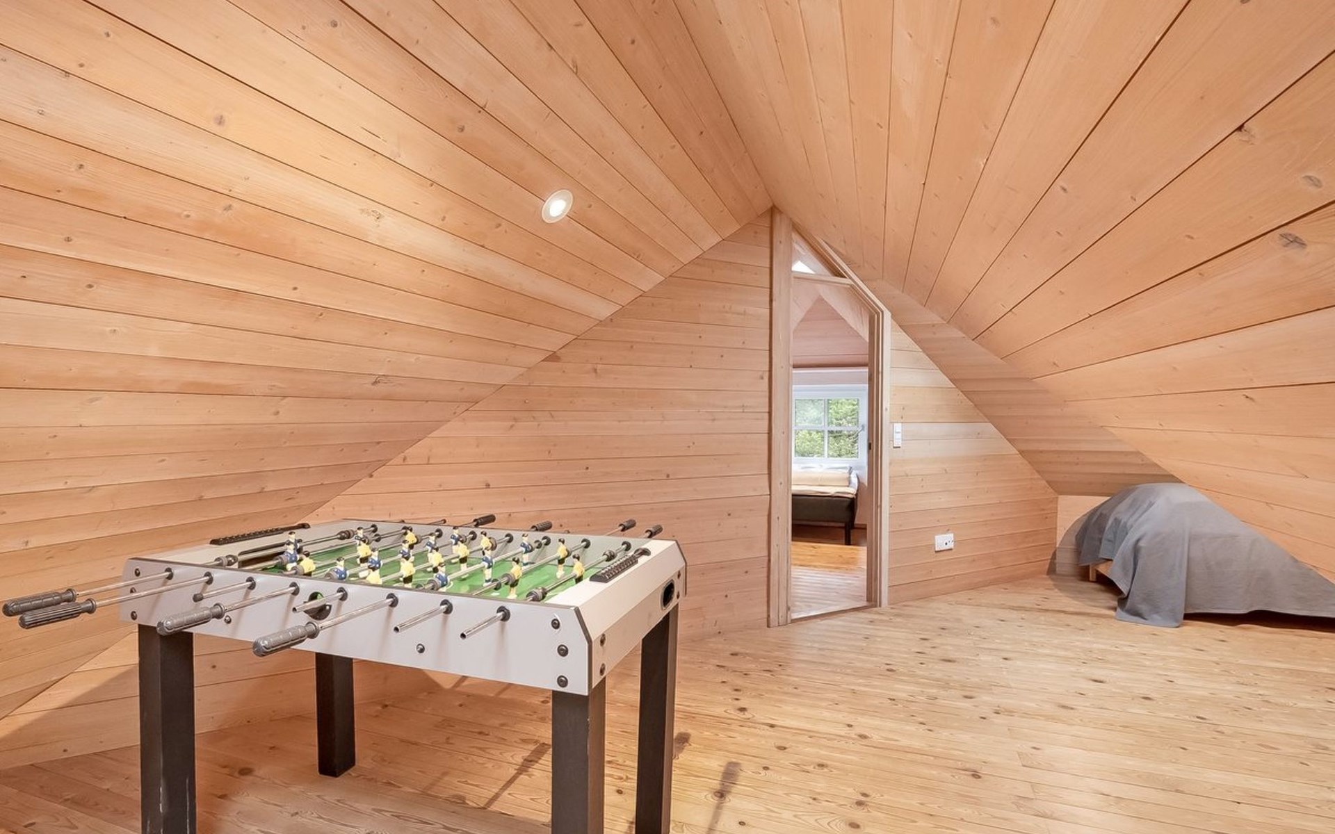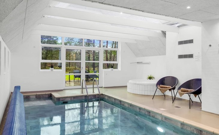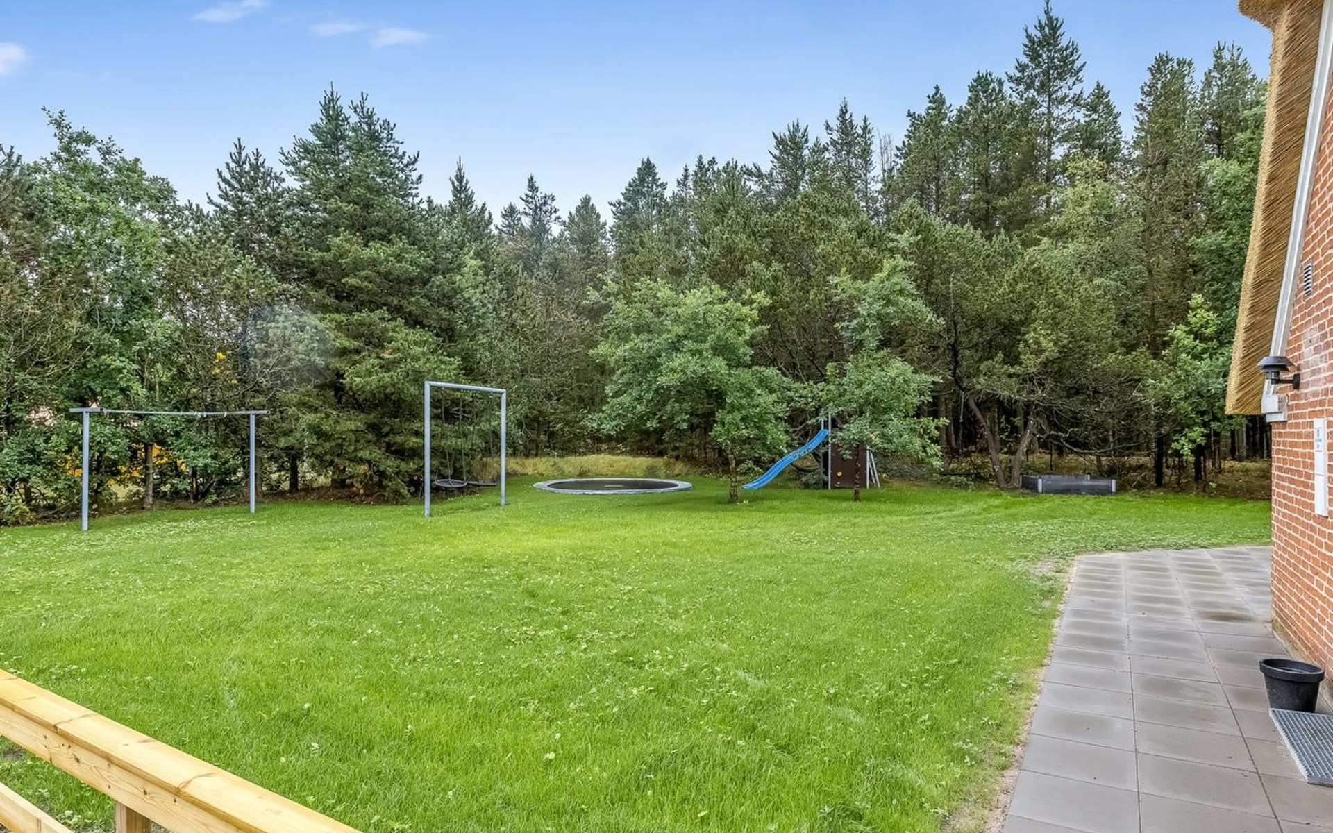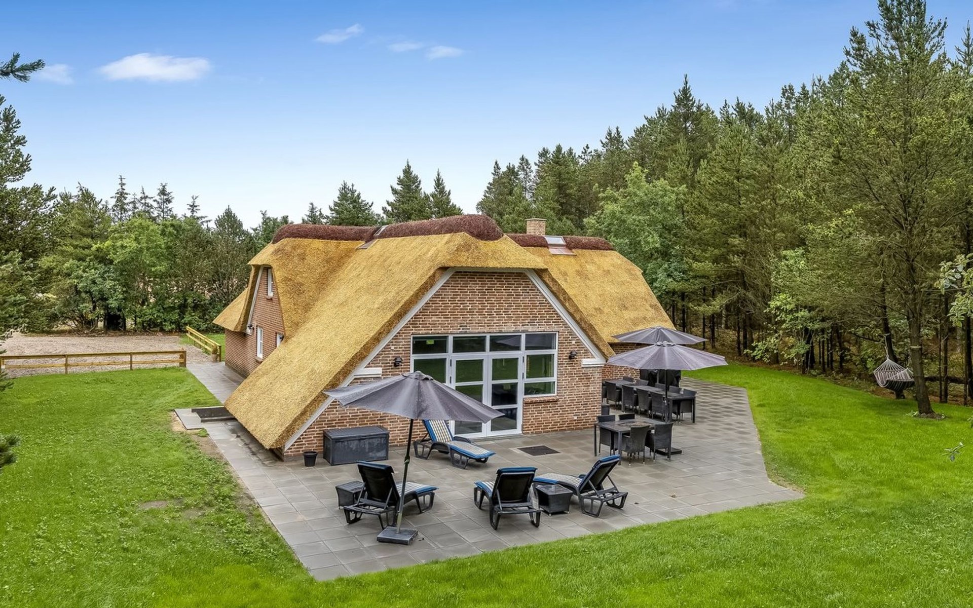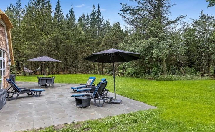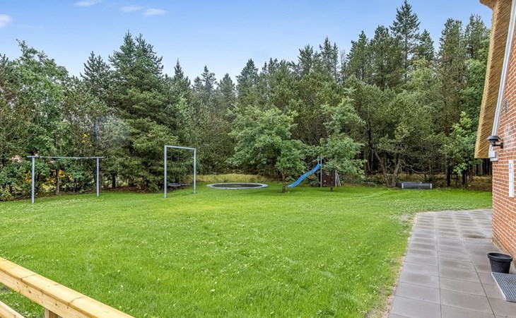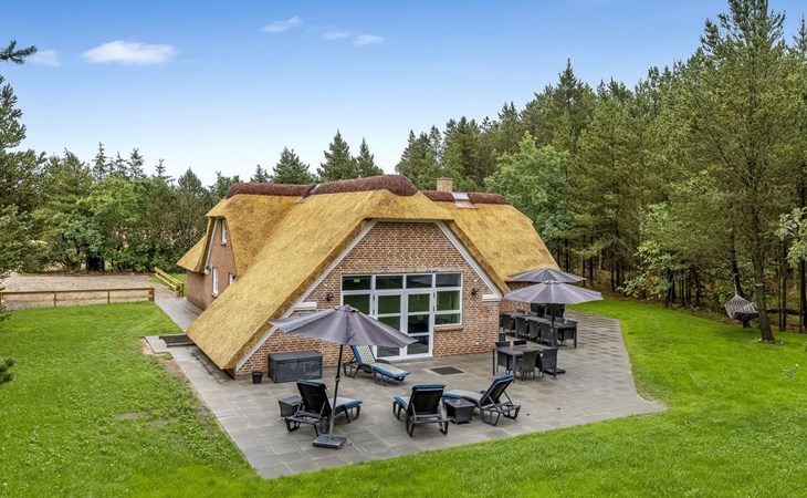 Eengezinswoning, bouwjaar 1994. 2.5 km van zee. Voor alleengebruik: wild terrein 2.286 m2, overdekt zwembad (3 x 6 m, 18 m2, 140 - 140 cm diepte). Terras (220 m2), kinderspeelplaats (glijbaan, schommel). In het huis: sauna, trampoline, wasmachine, droger. Parkeerplaats bij het huis. Oplaadstation. Levensmiddelenwinkel 1 km. De eigenaar accepteert geen jeugdgroepen.