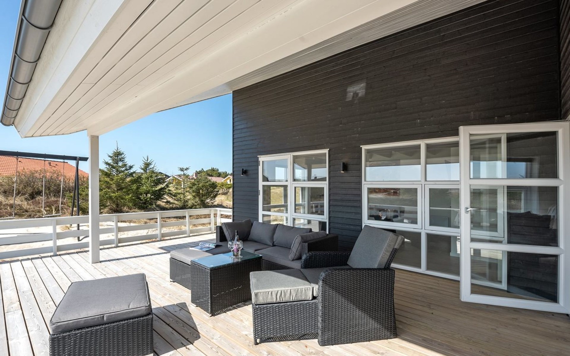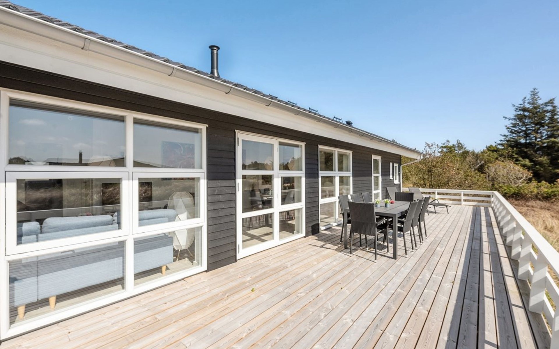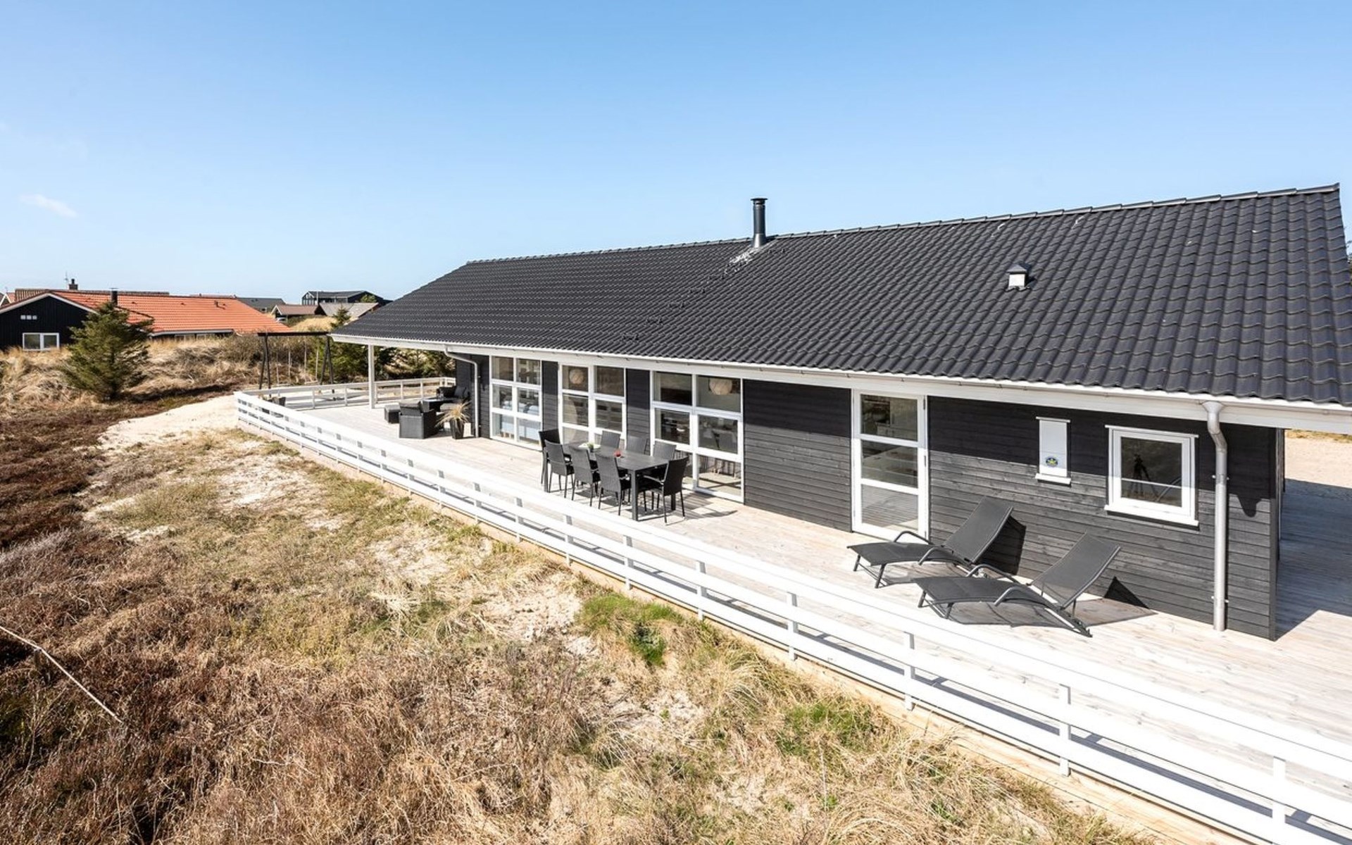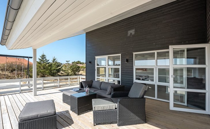 Eengezinswoning, bouwjaar 2020. 900 m van zee. Voor alleengebruik: wild terrein 1.274 m2. Terras (67 m2), kinderspeelplaats (schommel). In het huis: sauna, wasmachine, droger. Parkeerplaats bij het huis. Levensmiddelenwinkel 500 m. De eigenaar accepteert geen jeugdgroepen.