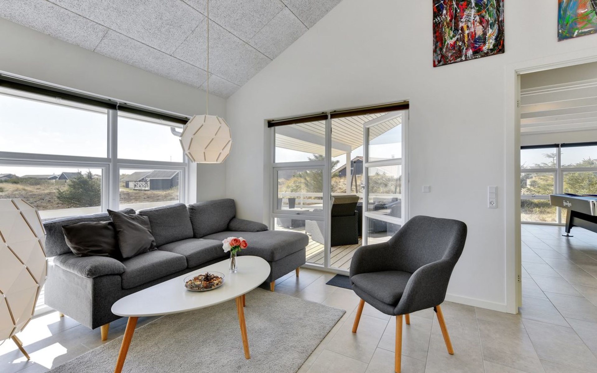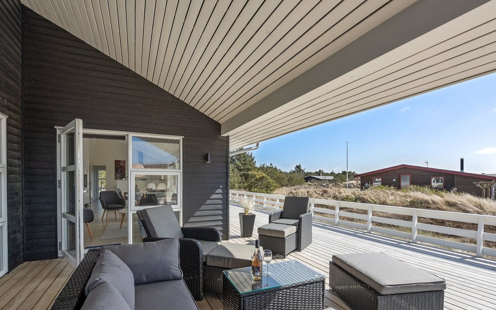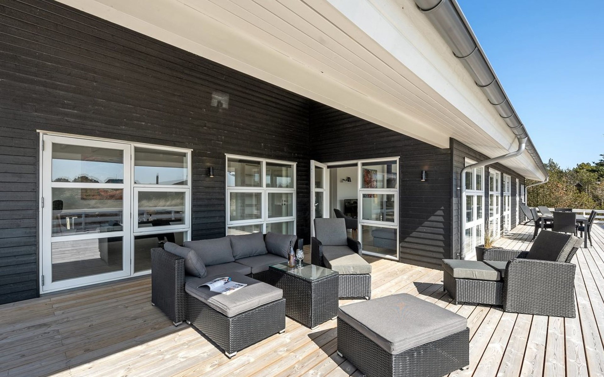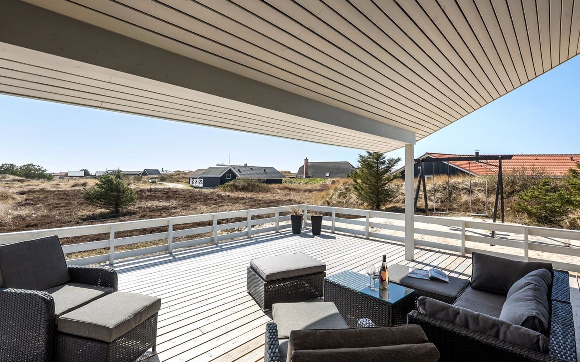 Eengezinswoning, bouwjaar 2020. 900 m van zee. Voor alleengebruik: wild terrein 1.274 m2. Terras (67 m2), kinderspeelplaats (schommel). In het huis: sauna, wasmachine, droger. Parkeerplaats bij het huis. Levensmiddelenwinkel 500 m. De eigenaar accepteert geen jeugdgroepen.