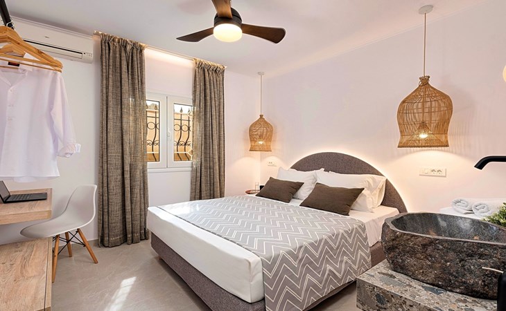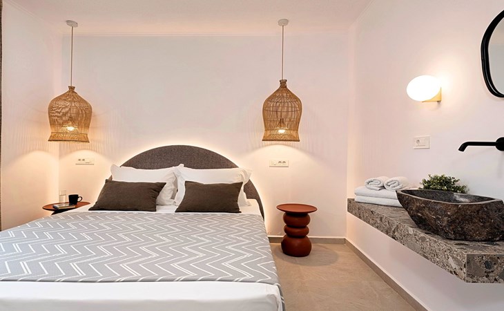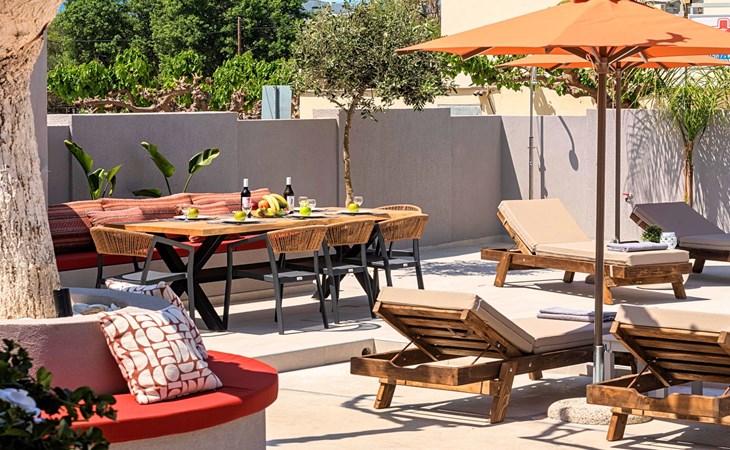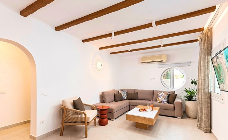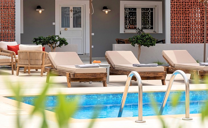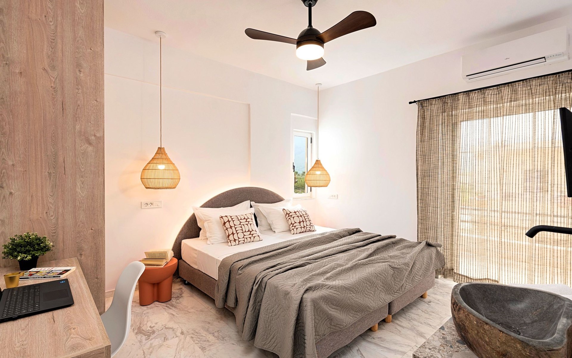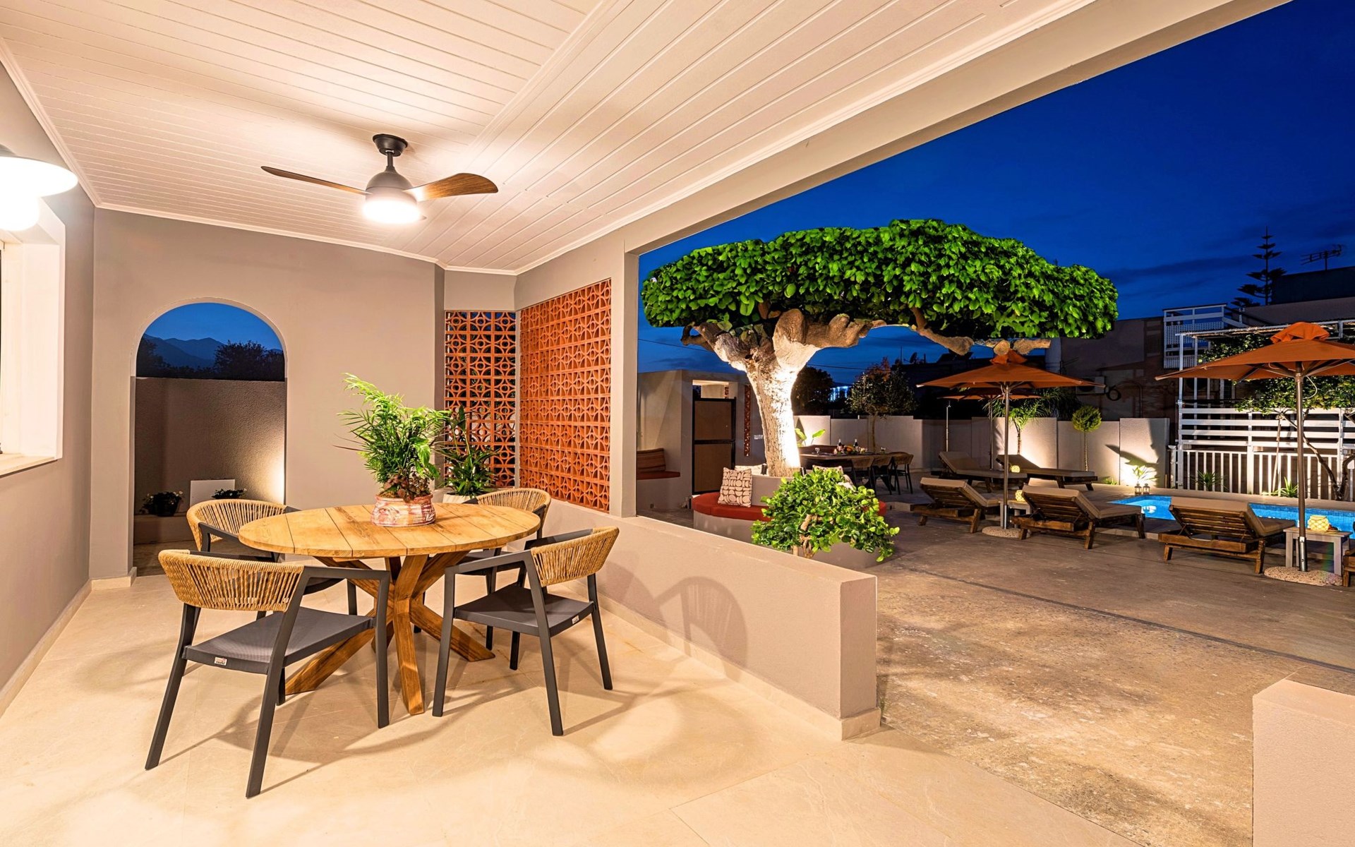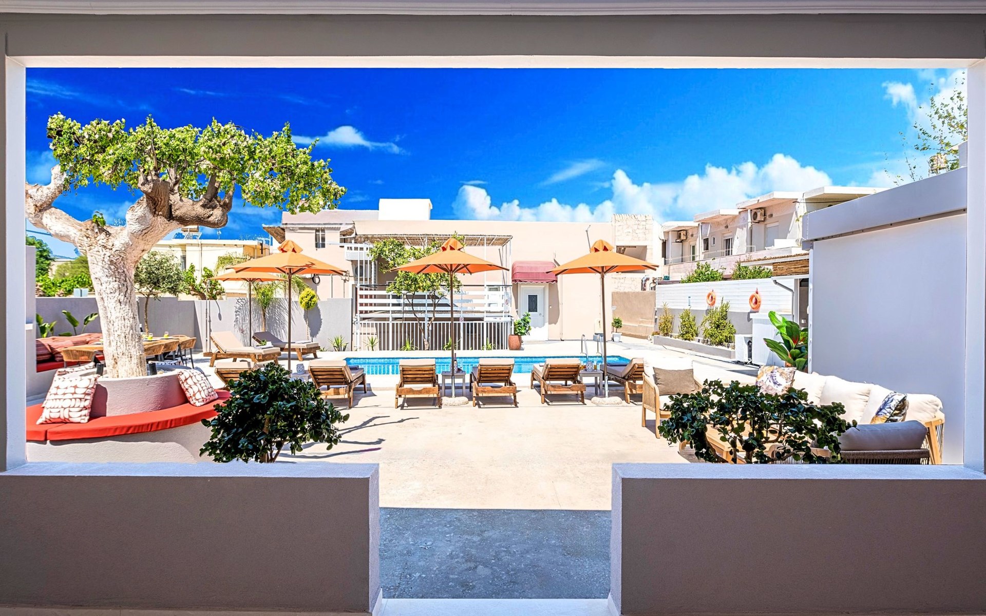 At the heart of Kavros, one of the most touristic places of Crete, Remezzo Villa emerges gleaming a bright, clean-lined Villa, where nature meets simplicity & refinement, enveloping visitors in an ambiance of peace, calm and exclusivity.Smart and modern in design, yet reassuringly unpretentious in attitude, offer a relaxed retreat just few meters away of the longest sandy beach of Crete Island. Attentive service, sun terraces for each bedroom that are perfect platforms for sunbathing and a large pool sanctuary to relax all together. Remezzo Villa is ideal for big families, a group of families or a group of friends. Enjoy your vacations with your parents or with the rest of your family members while at the same time preserving your privacy just like at your own home. The Villa offers 8 bedrooms, 5 bathrooms, 3 living rooms, large fully equipped kitchen, terraces, gardens and a large Pool area with sun lounge, sunbeds, umbrellas, BBQ and a large dining area for all of you.This is a two-floor building Villa. Remezzo Villa description and facilitiesThe villa can accommodate twenty eight (24)guests.The whole building offer four apartments and a large house with 8 bedrooms, 3 living rooms with kitchen facilities, five bathrooms (four with shower and one with bath tub). The whole property can accommodate 19 guests at the bedrooms, plus another 5 quests in sofa beds. Beds description – five queen size double beds – five single beds – five single sofa beds.Building and house approx. 300sqm Swimming pool approx. 40sqm The outdoor pool is heated and can reach 6 to 8 degrees more that the 24 h average air temperature with maximum value of 29°CGeneral information of the Villa and the Area.Kavros village (the village where we are physically located) is a well-known touristic village who belong to the Municipality of Apokoronas, Chania Prefecture.You will find all that you might need in a distance of 20 up to 500 meters from Kavros Pleasure.Super markets and stores open daily from 7.00 a.m. to 10.30 p.m., including weekends.The petrol station is open daily from 7.00 a.m. to 9.00 p.m.There is also a fast food restaurant open 24 hour a day.Bakery and butcher shop are open daily from 8.00 a.m. to 2.00 p.m. and from 6.00 p.m. to 8.00 p.m.The pharmacy stays open Monday to Friday from 9.00 a.m. to 2.00 p.m. In the nearby town of Georgioupolis, just 5 km from Island Suites, there is another pharmacy that stays open daily from 8.00 a.m. to 8.00 p.m.The local medical doctor can be found at his office during most of the days just next to the Villa. In case of emergency, you can also call him at his mobile phone; the number is written at the door of his office.Car rental and bike rental offices and the bookstore are open from 9.00 a.m. until late at night.In the village of Kavros there is a number of taverns and restaurants, open for lunch and dinner until late at night. 1230265