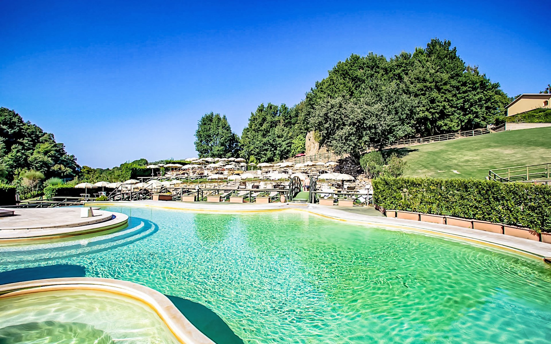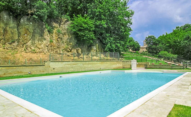 Vakantiedorp met 30 appartementen en 10 villa's met gebruik van 2 zwembaden, 1 met thermaal water van 37 C (350 mq, onregelmatige vorm), het hele jaar geopend, gebruik van badmuts verplicht. Gezondheidscentrum met gezichts- en lichaamsbehandelingen, diverse arrangementen, ter plaatse te boeken. Fitness en fietspaden, manege, drank- en spijstours. Het ligt 460 m boven de zeespiegel, vlakbij de 1000 jaar oude Pieve di S. Maria dell'Aquila. Mooi vakantiecomplex "Thermae", 460 m boven zeeniveau. 10 huizen in de woning. 30 appartementen in de woning. 3 km van het centrum van Sorano, 7 km van het centrum van Pitigliano, zonnige ligging, 55 km van zee, te midden van groen. Voor medegebruik: park 6 ha, 2 zwembaden (17 x 11 m, seizoensgebonden beschikbaarheid: 01.Jan. - 31.Dec.) met trap. Onregelmatig zwembad. Kinderzwembad, buitendouche, tennisbaan, tafeltennis, barbecue, kinderspeelplaats. In het complex: receptie, restaurant, bar, Internet (WiFi), massage (extra). Hot tub (extra). Zonneterras, wasserette, wasmachine (voor medegebruik, extra), Verwarming ter plaatse te betalen, verwarming alleen beschikbaar van 01.Nov. - 15.Apr., fietsen beschikbaar (extra). Wissel van linnengoed 1 maal per week. Schoonmaak op verzoek (extra). Ontbijt en half pension op aanvraag (extra). Toegangsweg tot aan het huis. Parkeerplaats op 200 m. Oplaadstation. Levensmiddelenwinkel 3 km, supermarkt 7 km, restaurant 3 km, bushalte 300 m, zandstrand 55 km, meer (zwemmen) "Bolsena" 25 km. Manege 800 m. Attracties in de buurt: Grotte Di Castro 22 km, Saturnia 28 km, Capalbio 52 km, Monte Argentario 45 km. Bekende meren kunnen gemakkelijk worden bereikt: Bolsena 25 km. Auto noodzakelijk. Geschikt voor families. Het complex wordt s´nachts bewaakt. Gesloten residentie met een elektrische deur. De afgebeelde foto is slechts een voorbeeld. Badmuts verplicht.