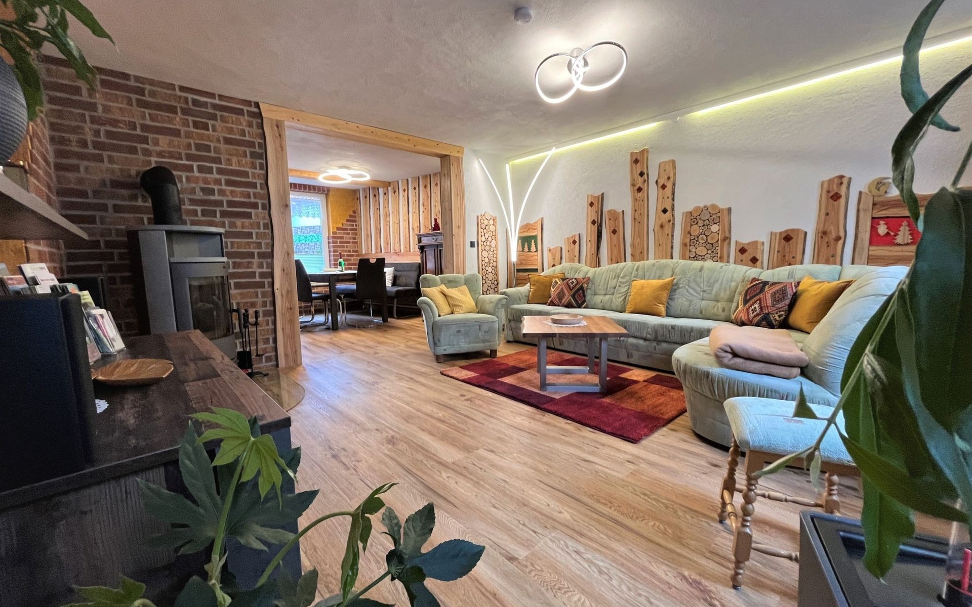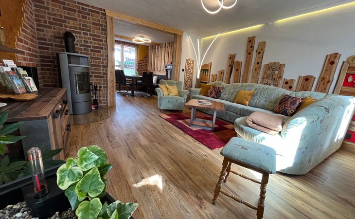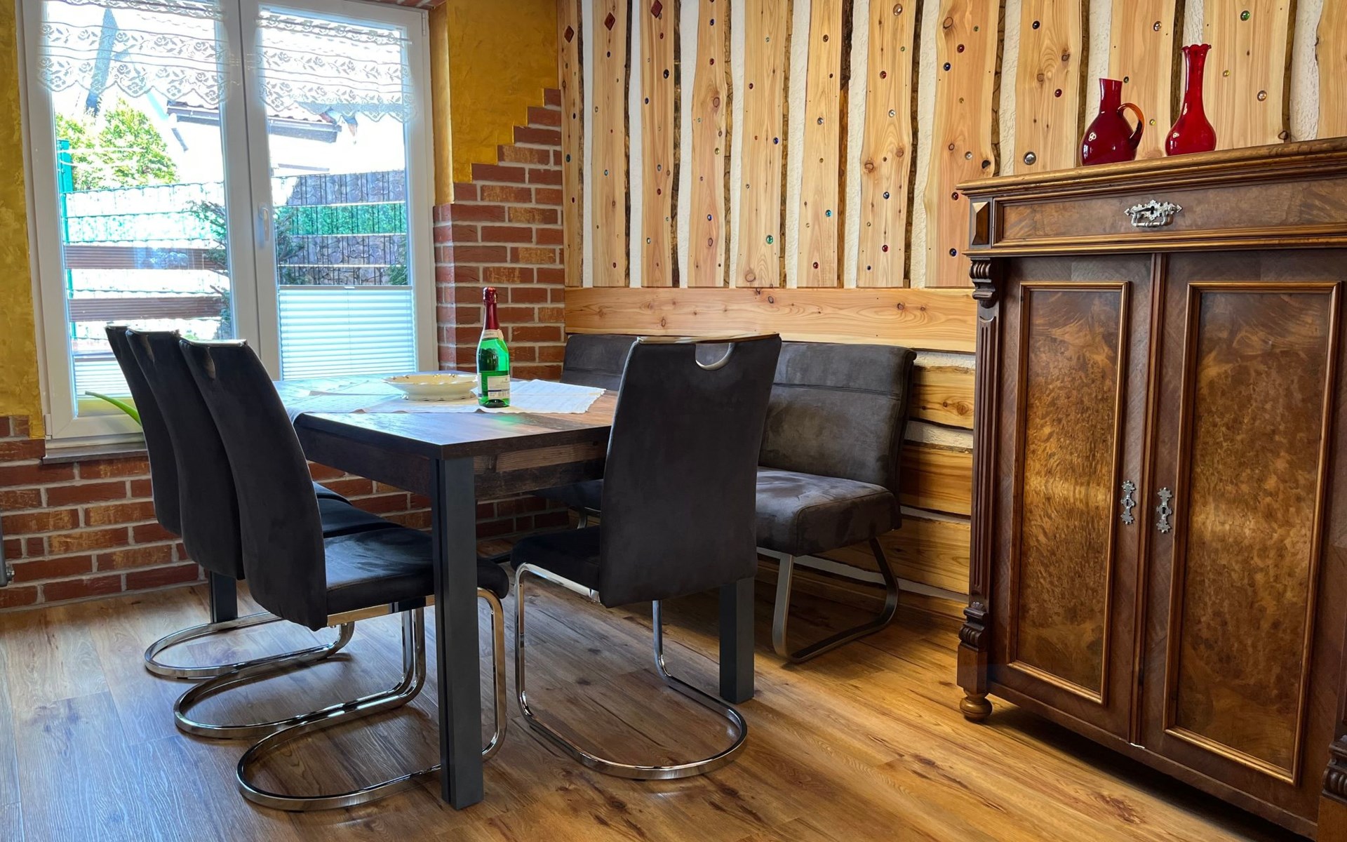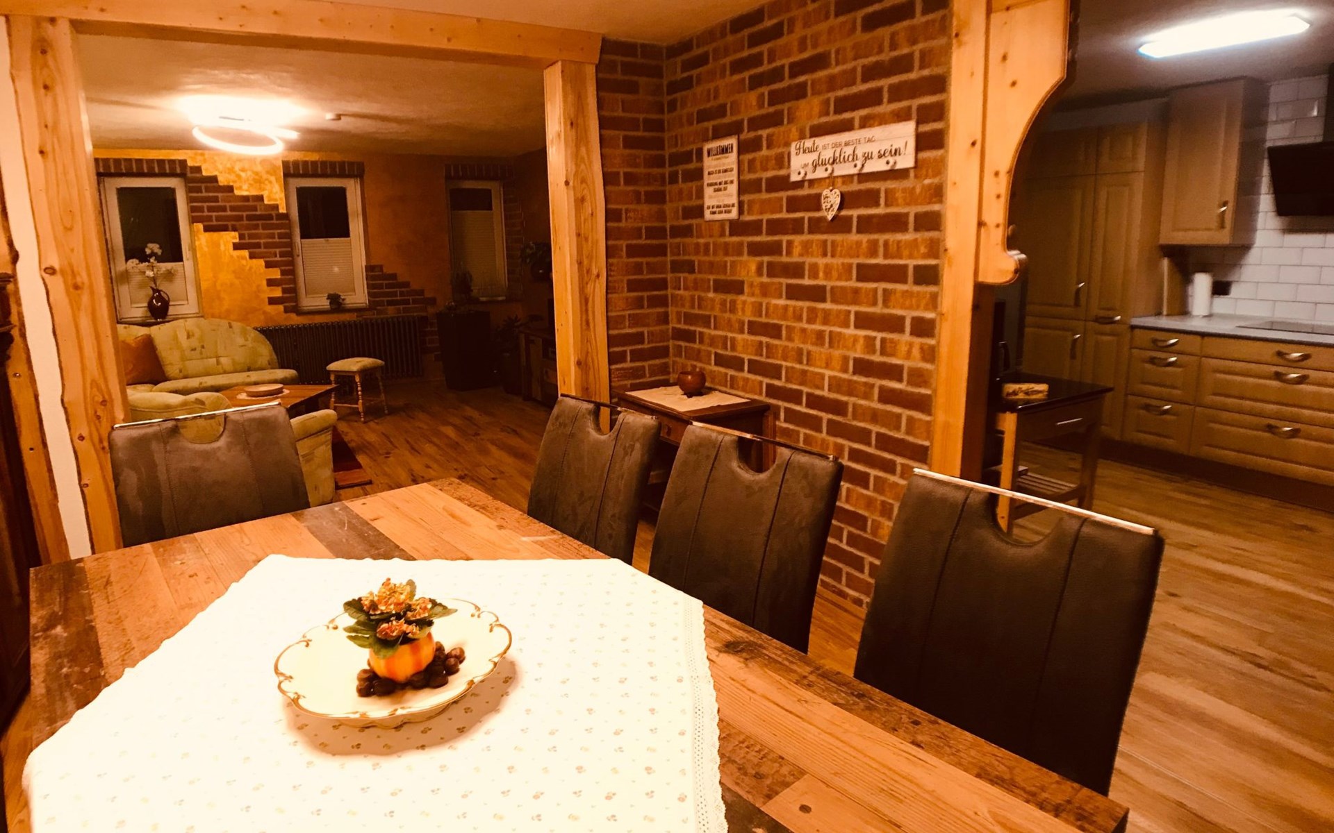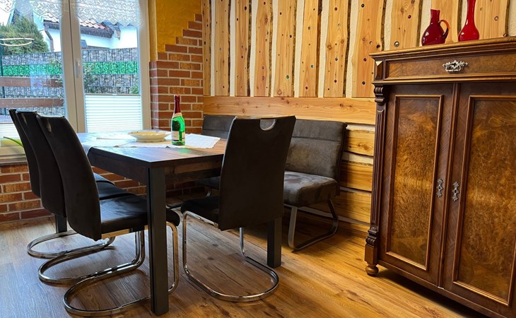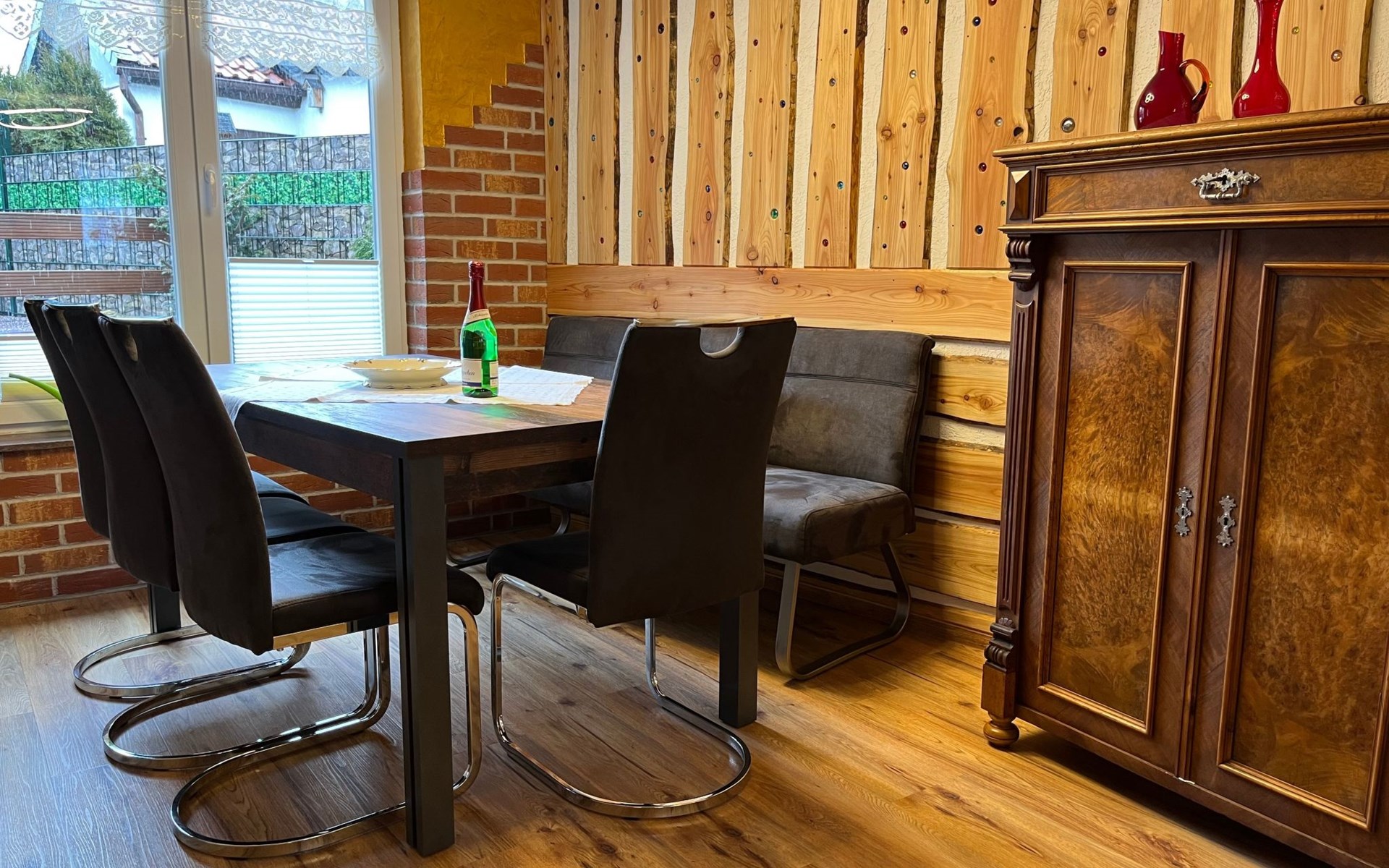 The house was extensively, thoroughly and lovingly renovated down to the last detail between 2019 and 2022, equipped with new condensing boiler technology and transformed into a little "holiday home treasure". It is located on the little-used exit road towards Hohegeiß, so it is quiet and yet close to the centre, almost opposite the bakery with its own café, where you can also get fresh bread rolls and cakes on Sundays, and less than a hundred metres from the village centre, where you will find a shopping centre, florist, pizzeria (with restaurant and delivery service), bistro, doctor, pharmacy, bank, hairdresser, beauty salon, physiotherapy and a public transport stop. Only a few houses inwards is a restaurant with lunch and dinner menu and within walking distance is the station of the Harz narrow-gauge railway ( HSB ), with which you can travel to the Brocken ( 1142 m above sea level ), to Wernigerode and Nordhausen.In the house there is only this one holiday flat, so you will not be disturbed by any other guests and can use the house and property for yourself.the holiday flat comprises two floors.on the ground floor there is a living room, dining room, kitchen, shower/WC and hallway.living and dining area are open to the kitchen. The living room facing south or the street is dominated by a cosy sitting area with couch, armchair and small table, the area is completed with satellite TV, radio and playback facilities for CD's and DVD's and a wood-burning stove, which is appreciated by guests in the winter months for cosy evenings. CD's, DVD's, books, board games and information material on the sights of the Harz are a welcome change on relaxing evenings, a rainy day or to get you in the mood for the next day of your holiday. A large dining table with comfortable chairs and a dining bench for 6 people and a restored vertico are located in the dining room, which is situated between the living room and kitchen. The open-plan kitchen includes a spacious kitchenette with a 4-burner ceramic hob and sink, as well as a fridge with freezer compartments, a microwave with baking function, dishwasher, coffee machine, toaster and kettle. Of course, you will also find plenty of crockery, glasses, cutlery, pots and pans, as well as tea towels and additional storage space for your food. 3 bathrooms are also located on this level. This is equipped with a shower, washbasin, toilet and washing machine. Through the hallway you reach the upper floor (1st floor) via an equally new staircase. There are 3 bedrooms here. Since it is a very old house, it was unfortunately not possible to raise all ceilings as part of the renovation, so that the ceiling heights vary between 2.00 m and 2.30 m. One bedroom is located to the south or street side. Another bedroom with double bed (180 x 200) and 2-door wardrobe with built-in wardrobe safe, armchair and small table is located to the north / or courtyard side. In the third bedroom there are two single beds and a small cupboard.on this floor there is another bathroom with shower, toilet and washbasin, so that there are 2 showers and 3 toilets in the whole house.in the corridor there is another chest of drawers for your personal belongings and a small cupboard safe.in all three bedrooms there is satellite TV and WLAN.From the kitchen you can access the outdoor area with a seating area for 6 people and barbecue facilities on a charcoal grill. You can also dry your laundry here if you need to wash it on site.The wood-burning stove in the living room, for which we are happy to provide wood (for a fee), is popular with guests in the cold season. 3 separate bedrooms with high-quality beds, satellite TV and plenty of storage space make the house ideal not only for holidays with the family but also for spending time with friends, parents and grandparents.The small holiday resort of Benneckenstein lies in a very quiet location in the Rappbode valley in the border triangle with Thuringia and Lower Saxony. Due to its central location, almost in the middle of the Harz Mountains, it is ideal for exploring the Harz Mountains to the north, south, east and west, not only by car, but also on foot, by mountain bike or ski, on the hiking trails or cross-country ski runs. Public transport is also a good option, as you can travel to all places in the district free of charge (HATIX) with your spa card. Not forgetting the Harz narrow-gauge railway, which runs through almost the entire Harz Mountains and takes you up to the Brocken (1142 m above sea level), to Wernigerode, Nordhausen and through the Selke valley to Quedlinburg, with many treasures along the way.You will soon realise that one holiday is not enough to get to know all the enchanted half-timbered towns with their special charm, the world below ground in stalactite caves, show mines and mining museums and the Harz Mountains from lofty heights on the treetop path, the climbing parks, from the cable cars and from the suspension bridge at the Rappbode Dam.If you would like to travel back in time, visit the numerous castles and castle ruins, palaces and cathedrals with their world-famous Danube treasures, churches / stave churches, imperial palaces and monasteries. This small selection of possible sights should show you that the Harz Mountains, small on the map, are large and rich in sights worth seeing, in natural beauty and natural wonders, in history and the present.